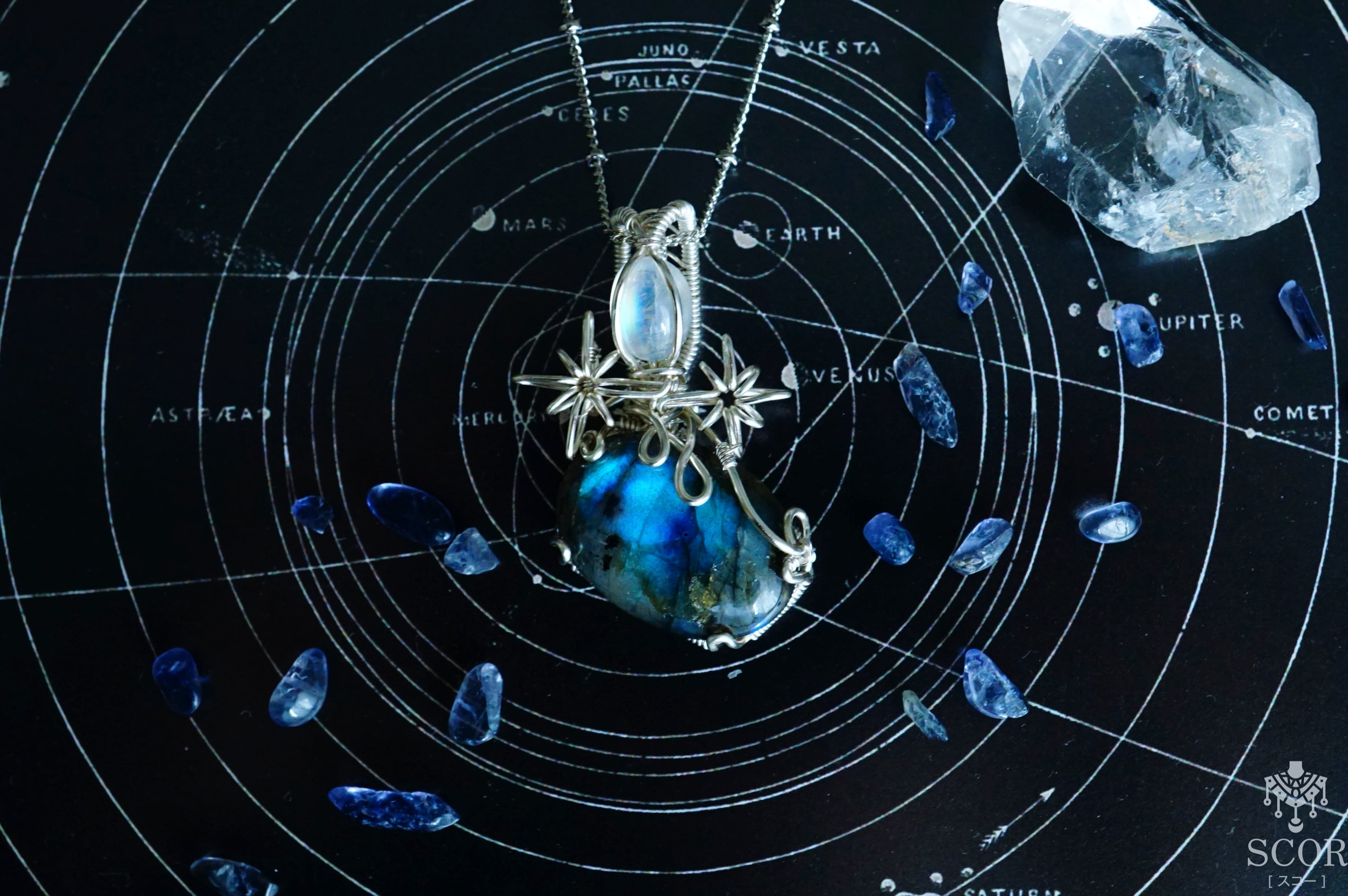 ラブラドライトとレインボームーンストーンを使ったペンダントトップです。