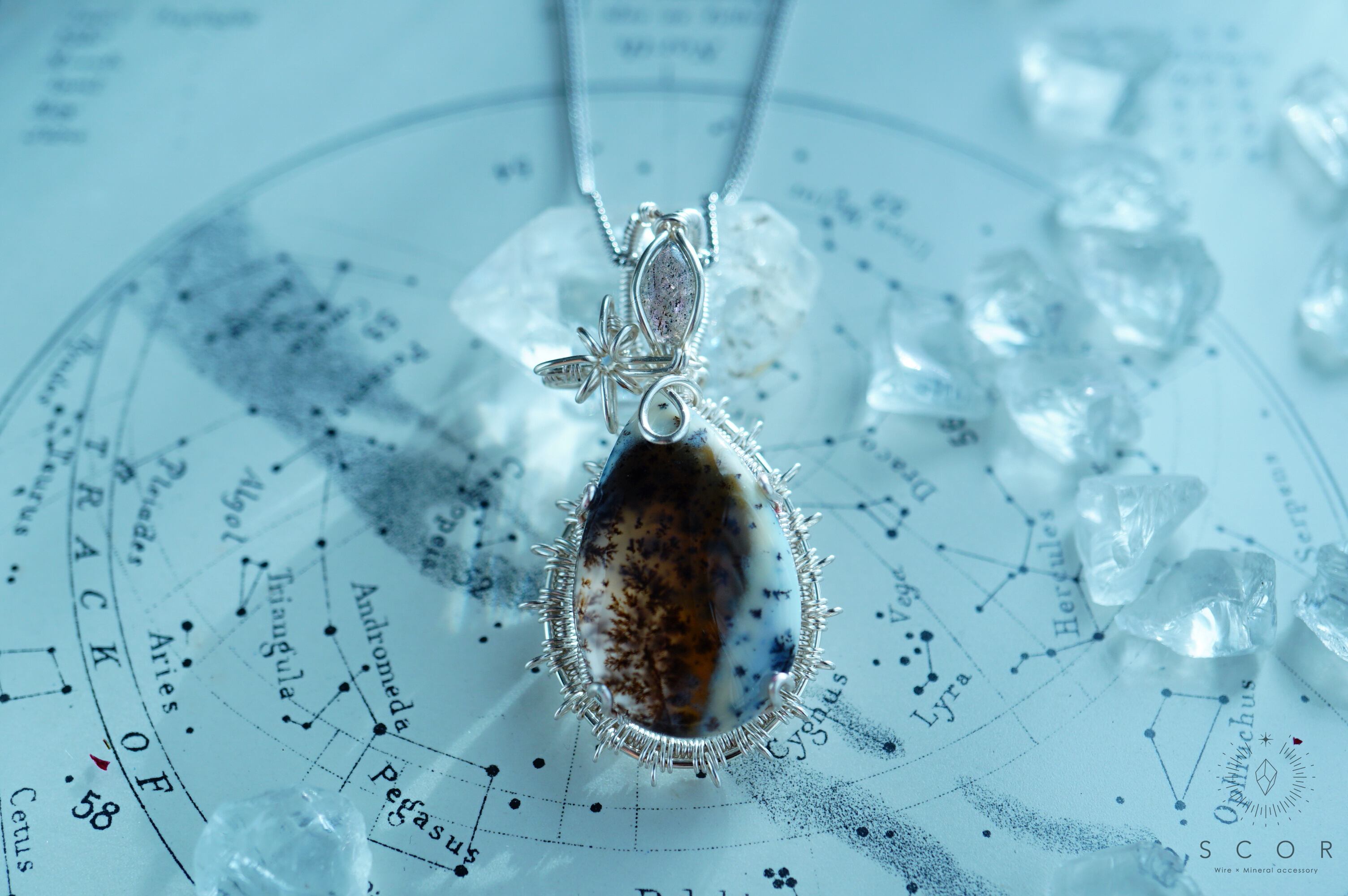 デンドリティックオパールとラブラドライトを使ったペンダントトップです。