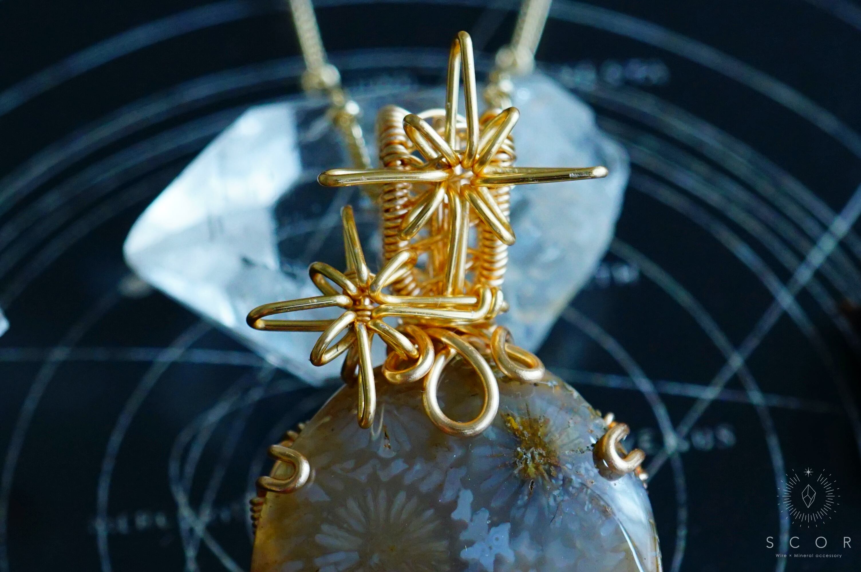 ワイヤー切断面は、なるたけ表に出ないように処理をしていますが、ストール、マフラー、レースなどと共に身につける際は、引っかかりにご注意ください。