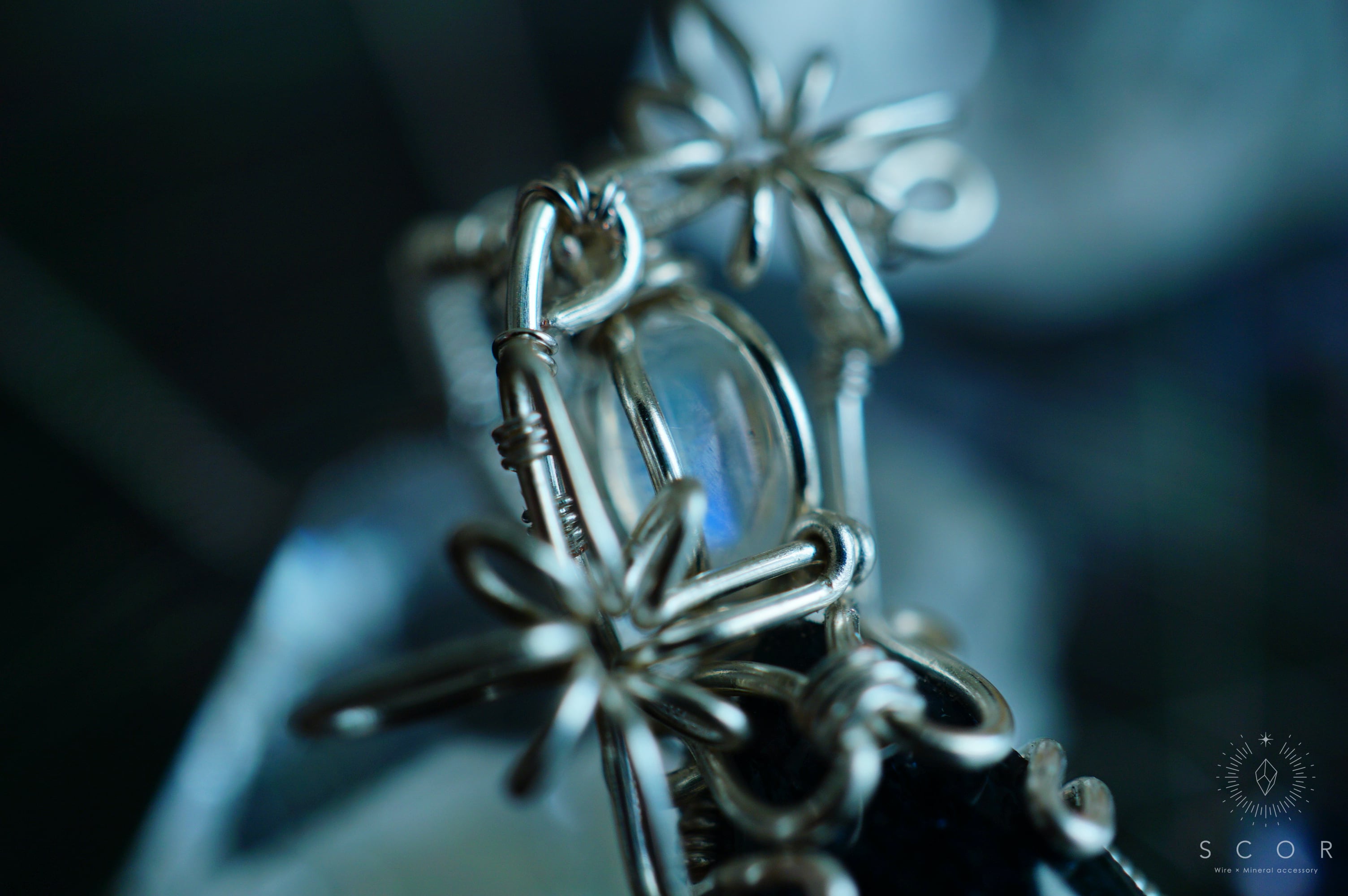 ブルームーンストーンは、鮮やかなブルーのシラー(光沢)が美しいカボションをチョイス。