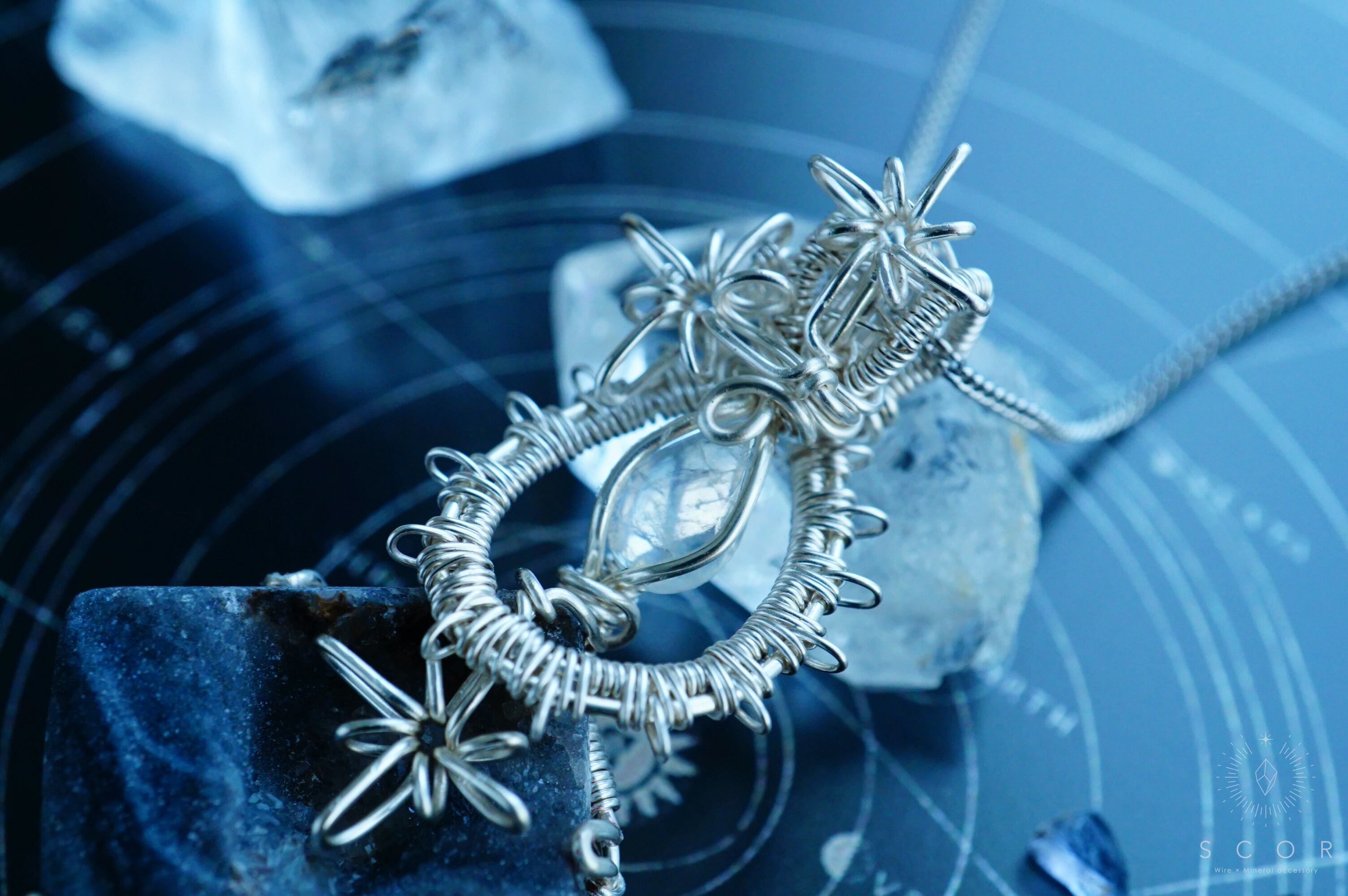 ワイヤー切断面は、なるたけ表に出ないように処理をしていますが、ストール、マフラー、レースなどと共に身につける際は、引っかかりにご注意ください。