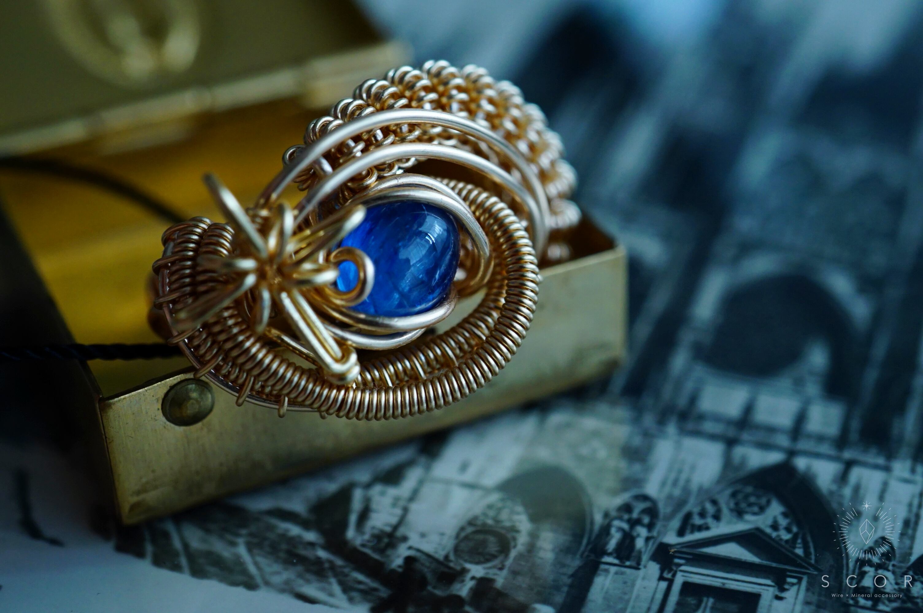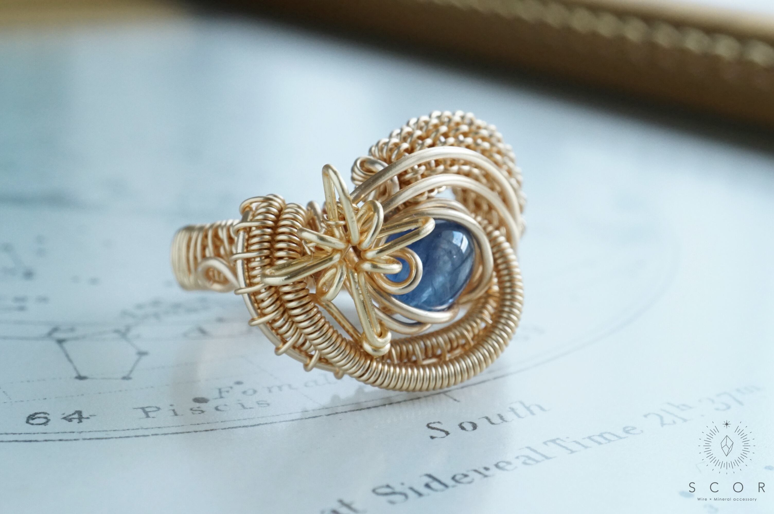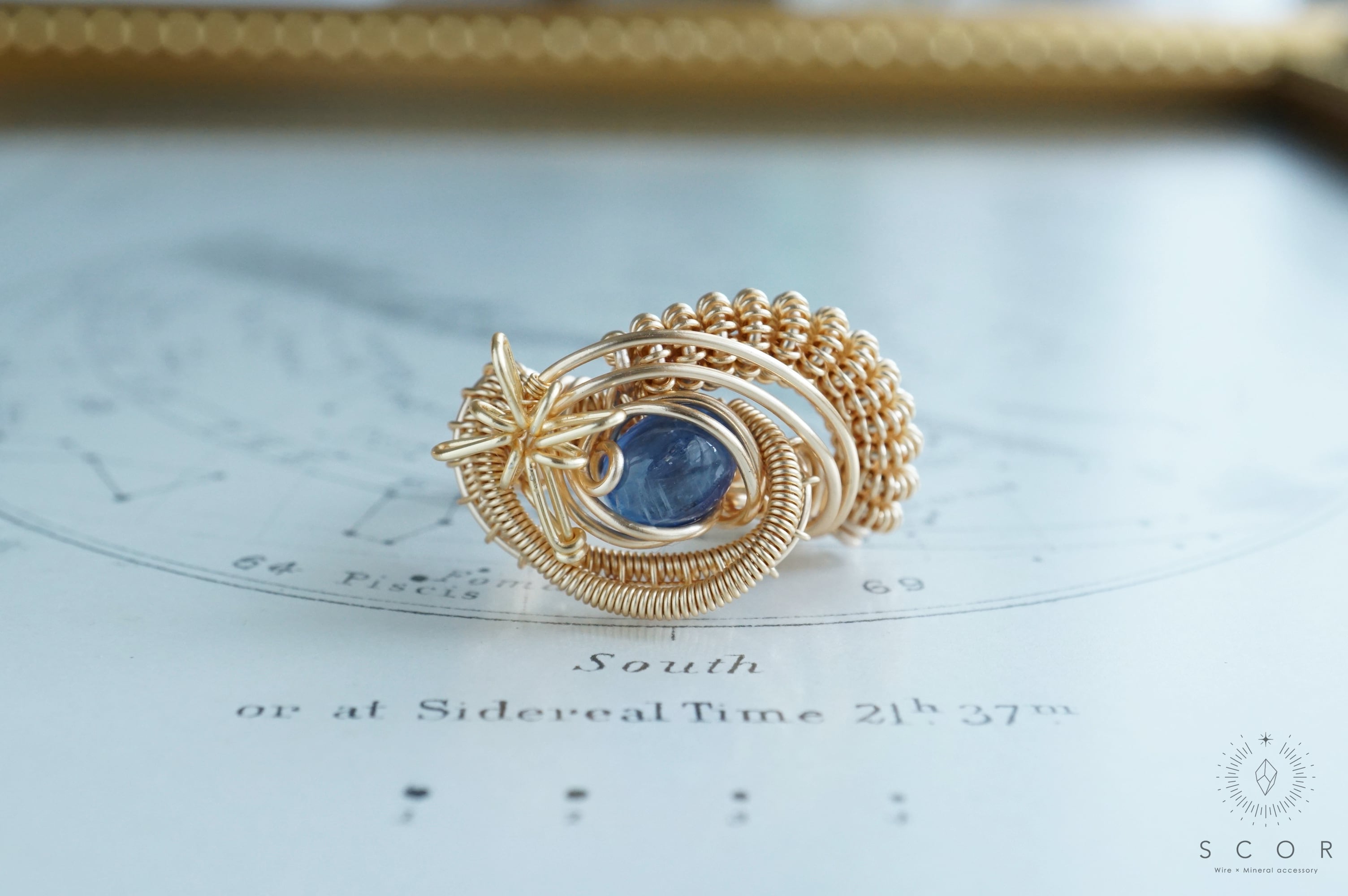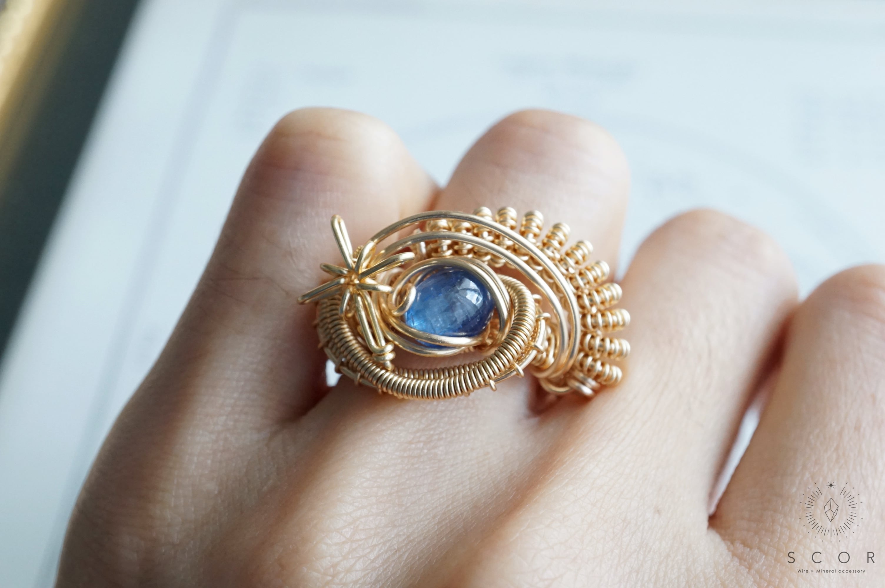 ゴールド色とブルーの華やかさが印象的なリングです。