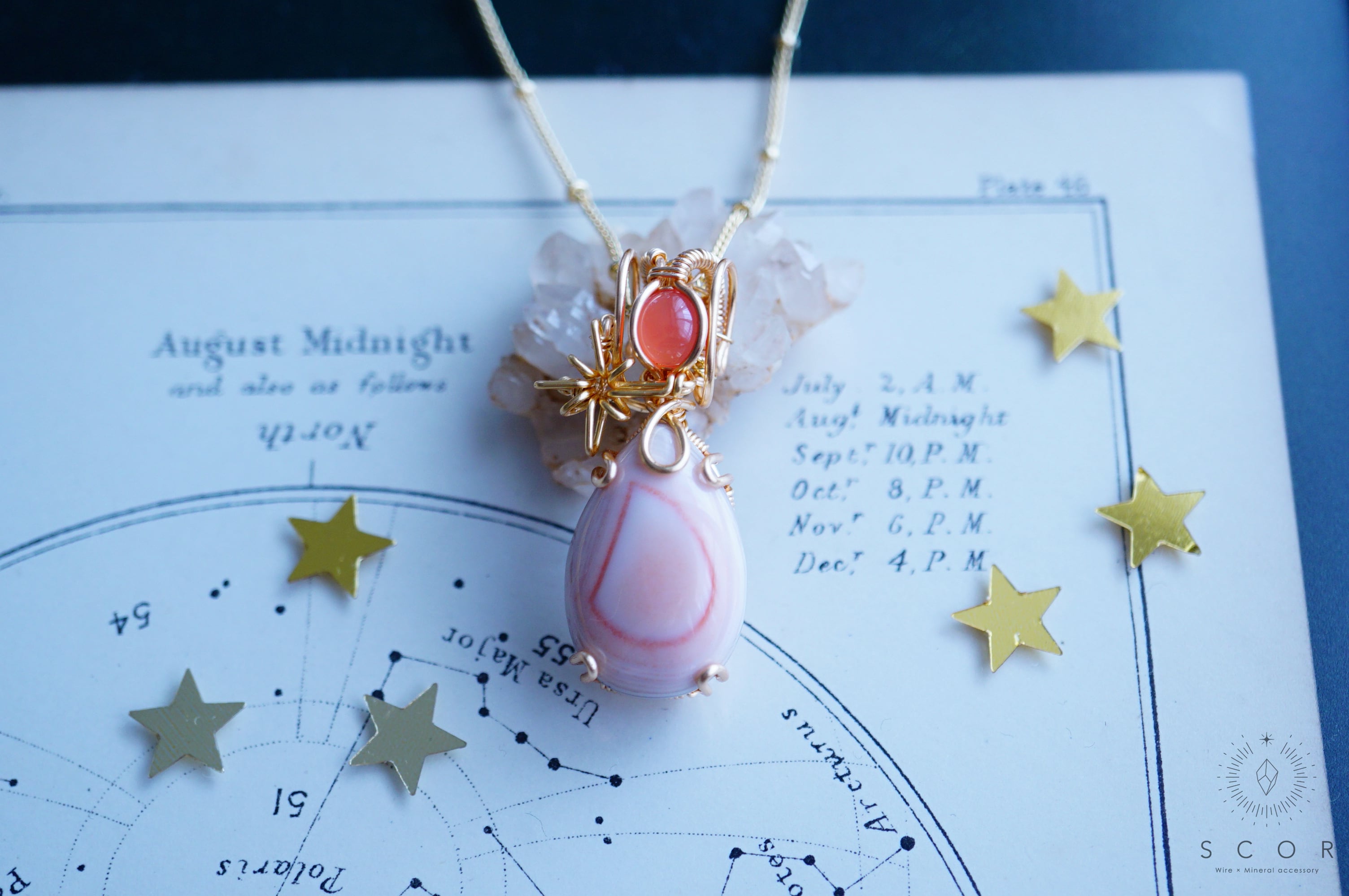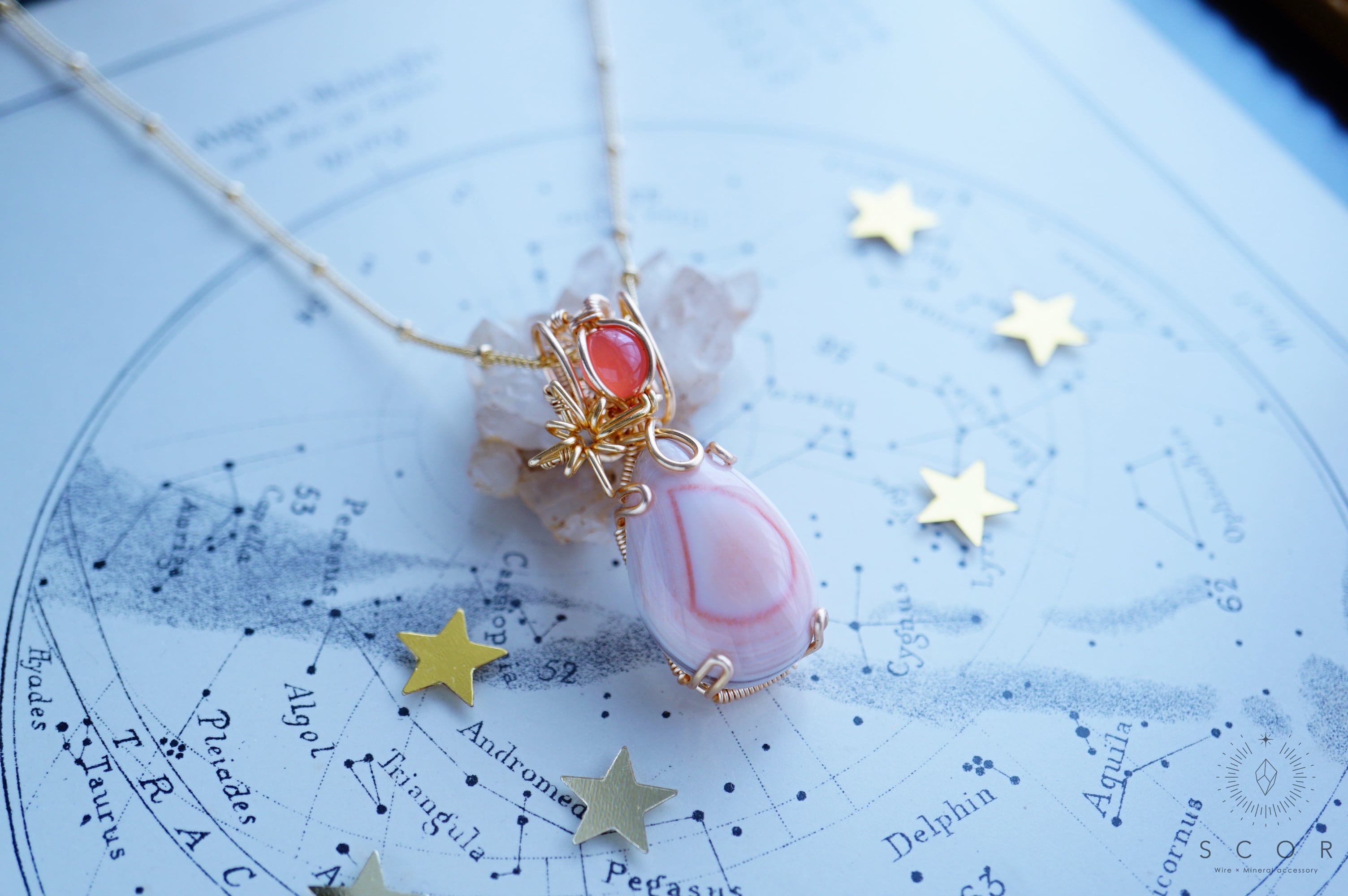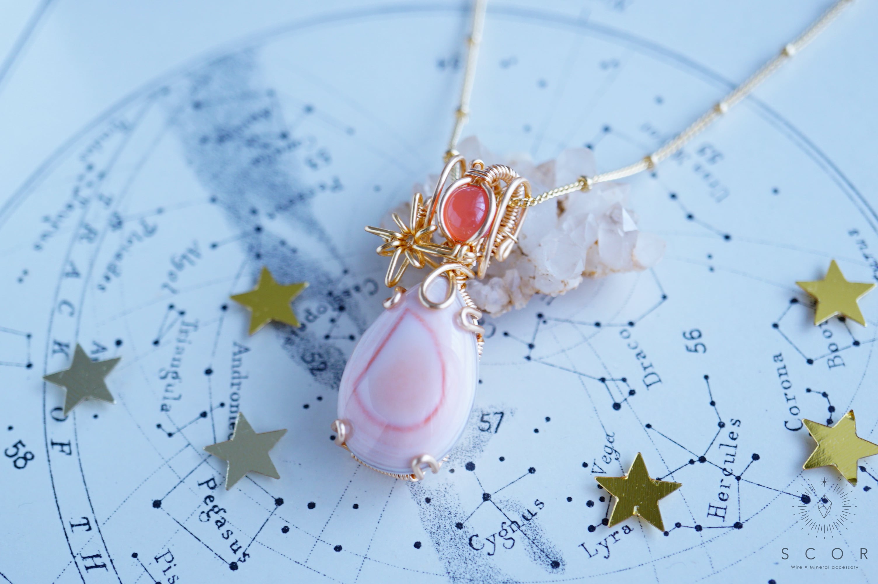 Two stars - 薔薇色の衛星と波紋の惑星(pt210-br-g)(マダガスカルアゲート・ロードクロサイト ペンダントトップ)