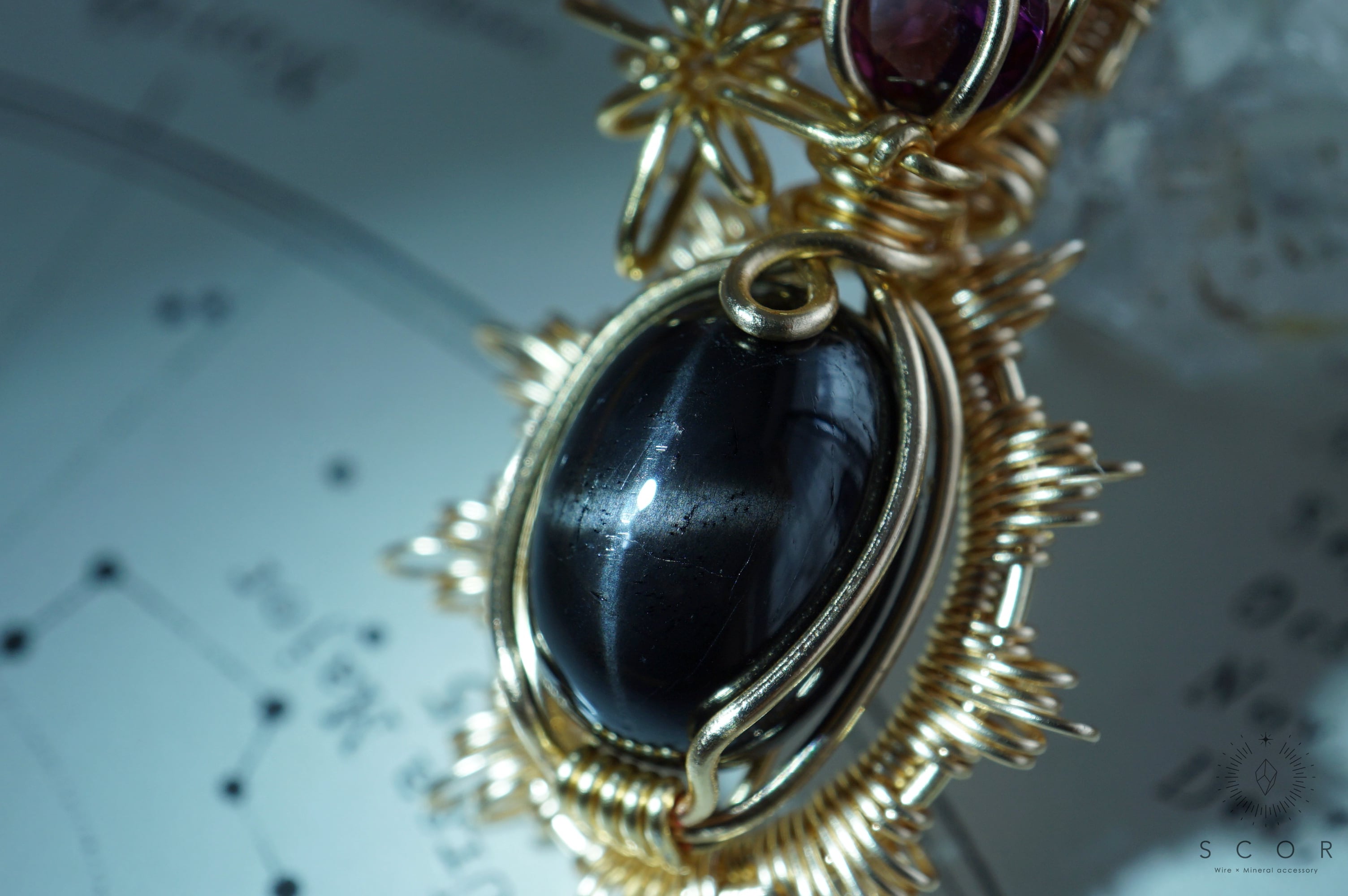 ブラックスターと、ロードライトガーネットを使ったペンダントトップです。