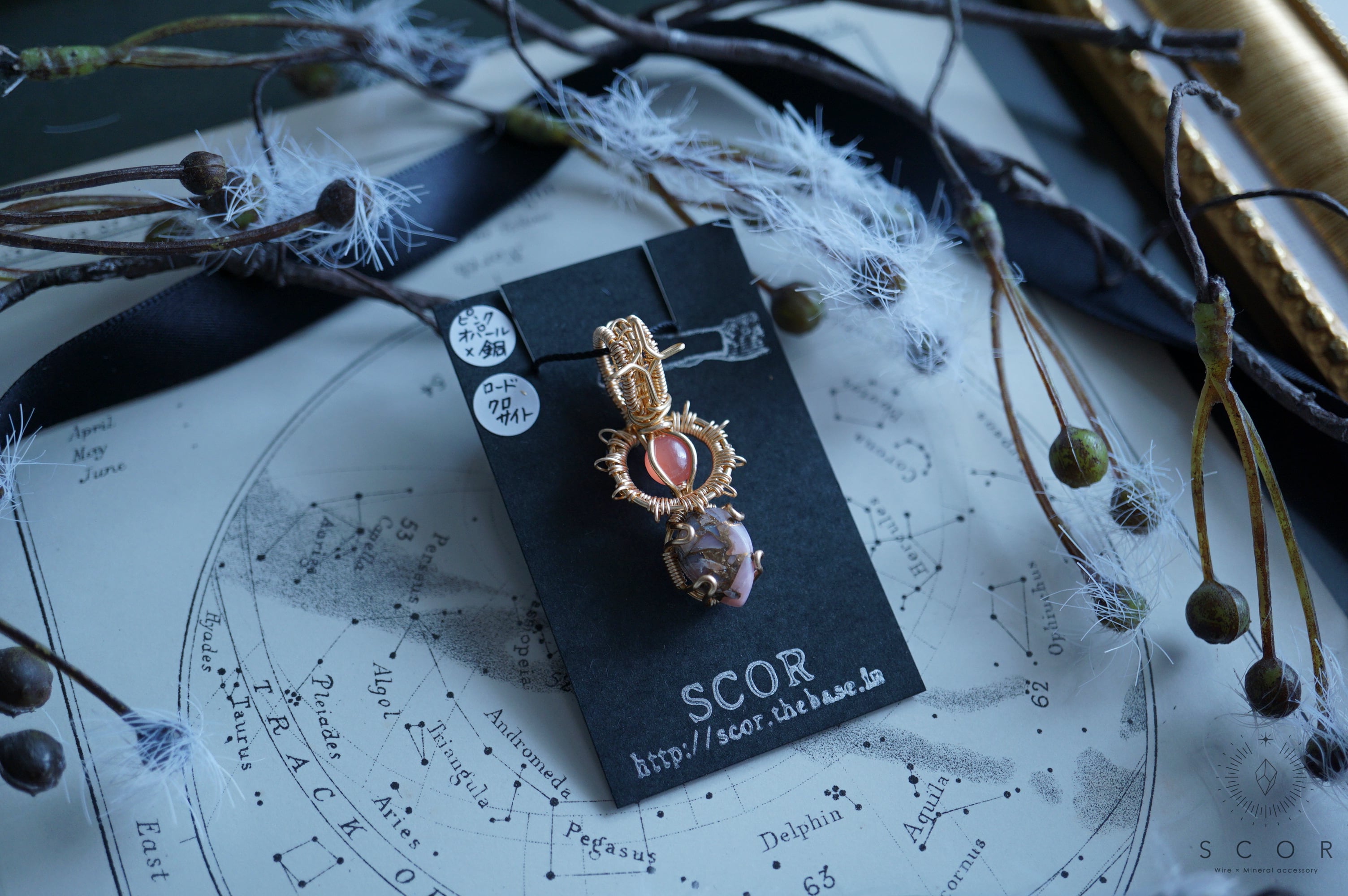 【5/14限定販売】ppt14 ピンクオパール × 銅 ロードクロサイトプチペンダントトップ(ppt14-pr-g)