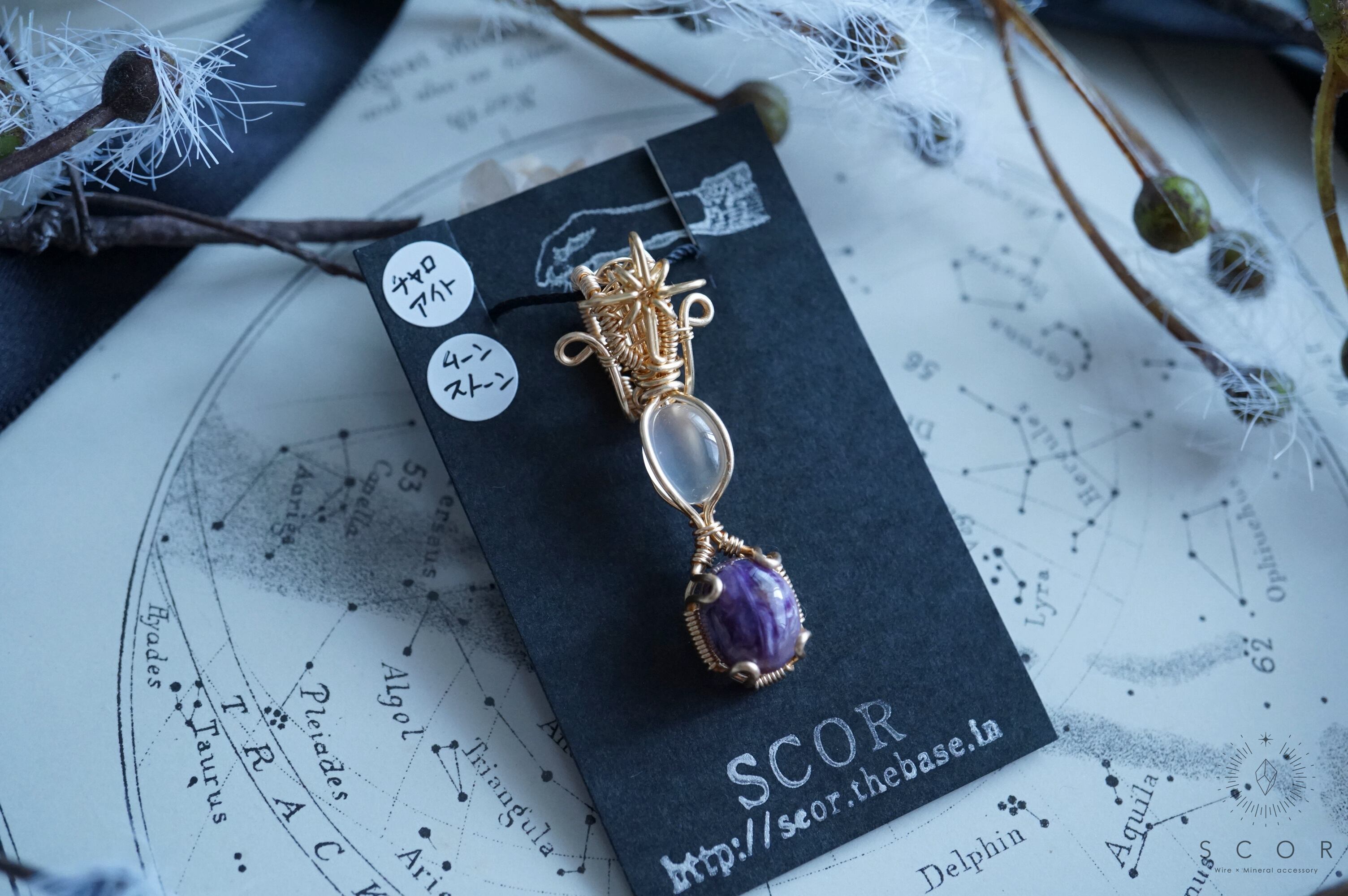 チャロアイトとムーンストーンを使ったプチペンダントトップです。