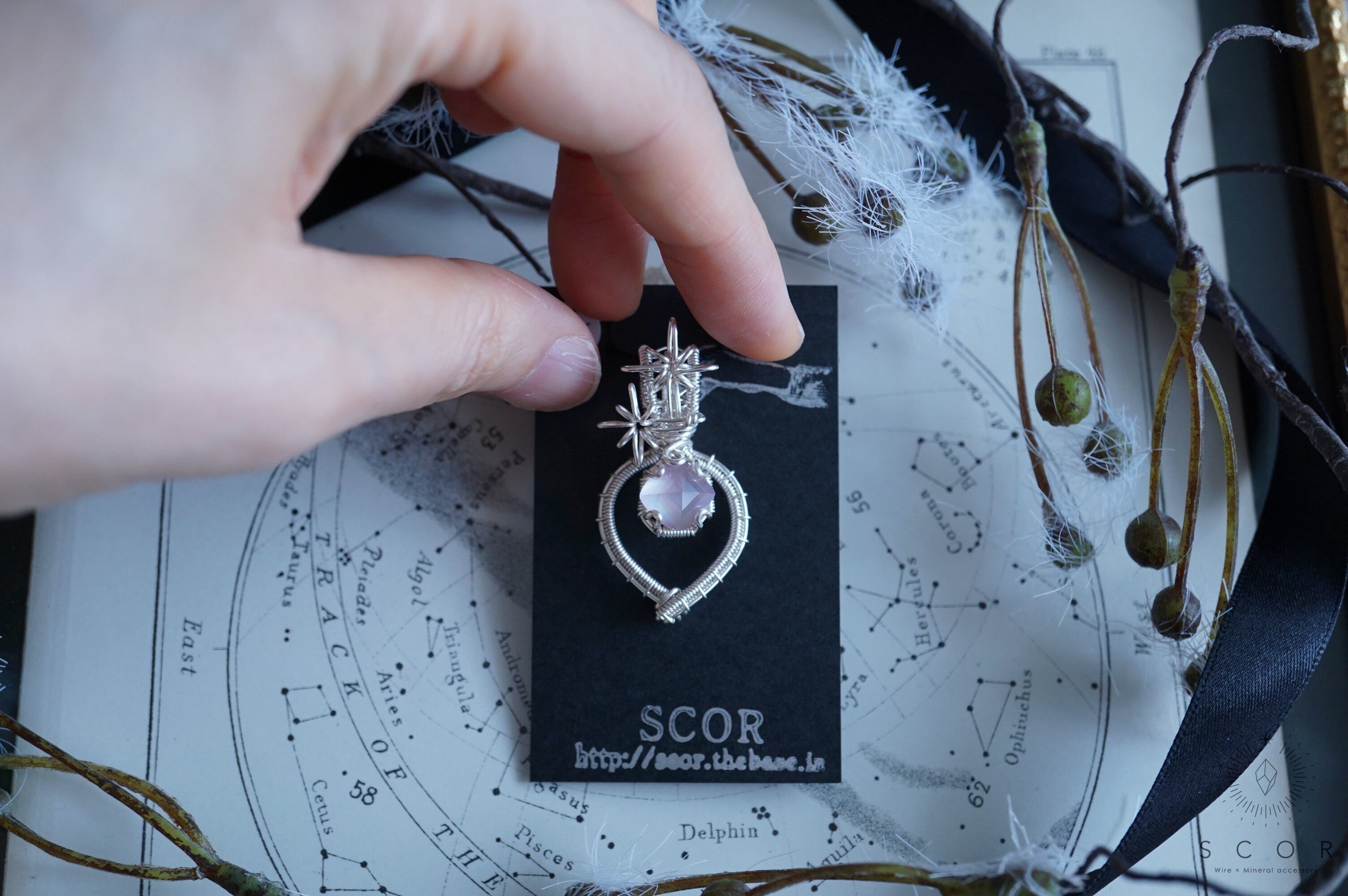 石を星に見立て、その放射光をワイヤー装飾で表現。