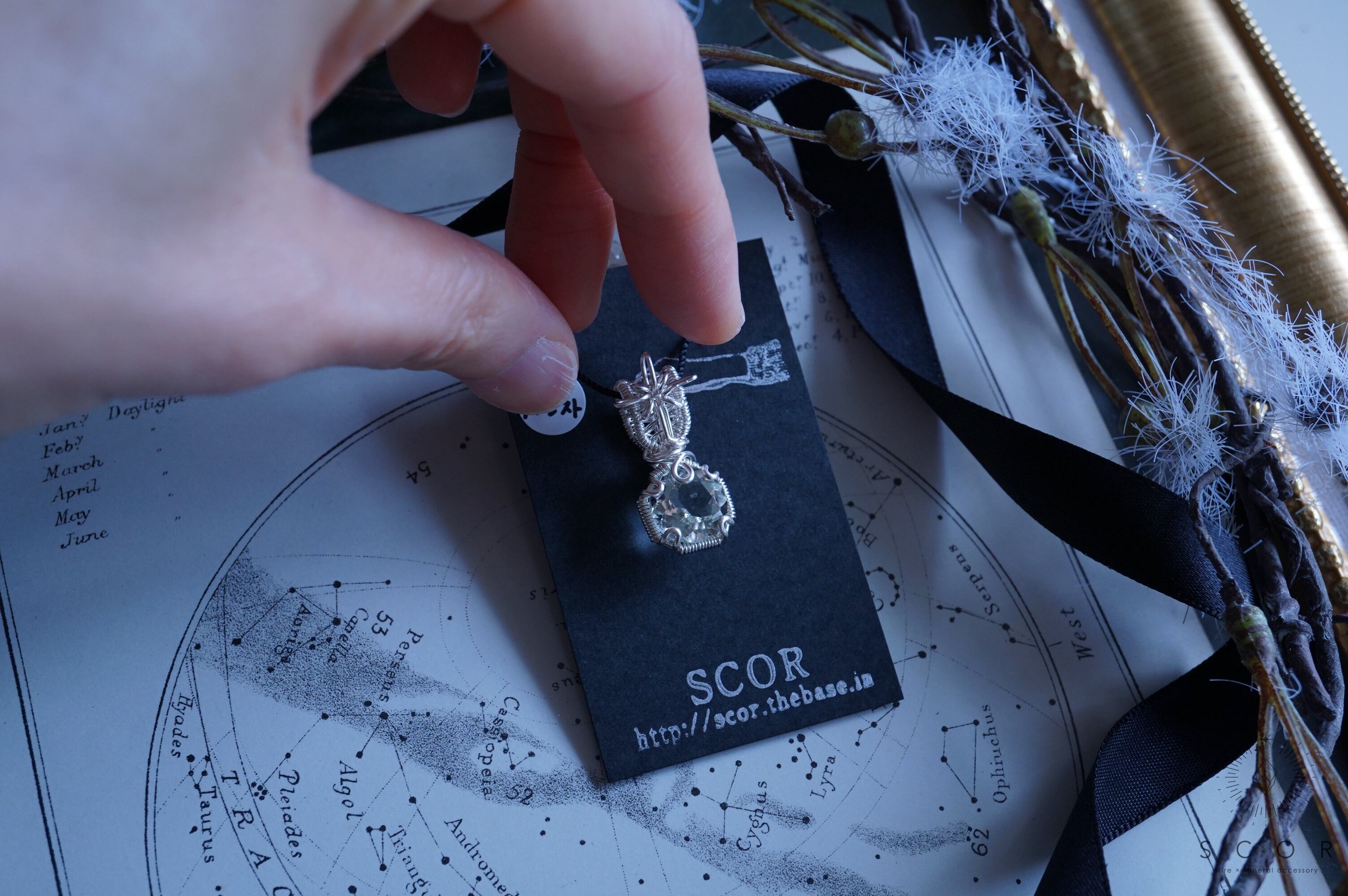 ワイヤー切断面は、なるたけ表に出ないように処理をしていますが、ストール、マフラー、レースなどと共に身につける際は、引っかかりにご注意ください。