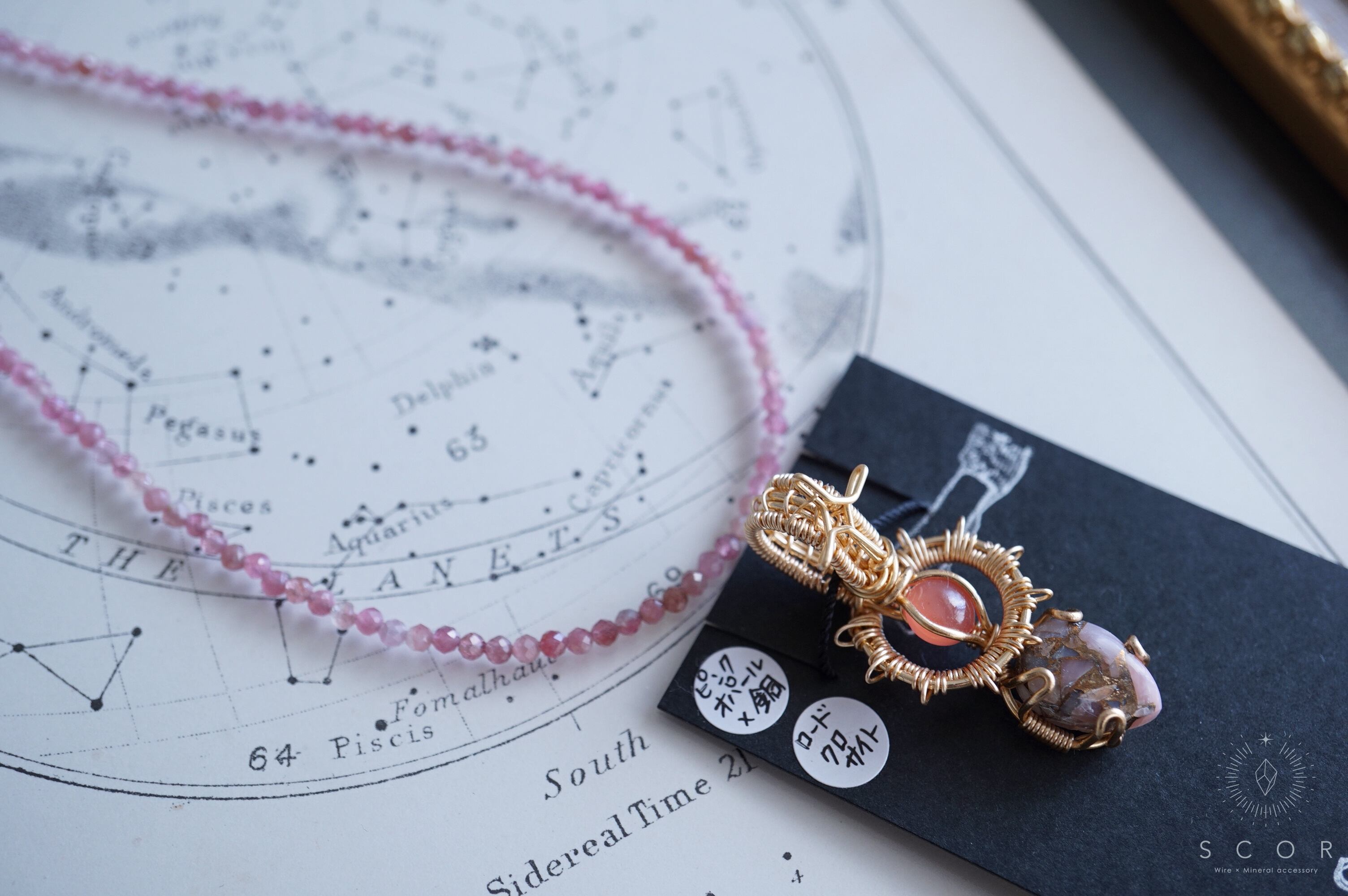 ピンク色の石・オレンジ色の石・華やかな雰囲気のペンダントトップによく合います。