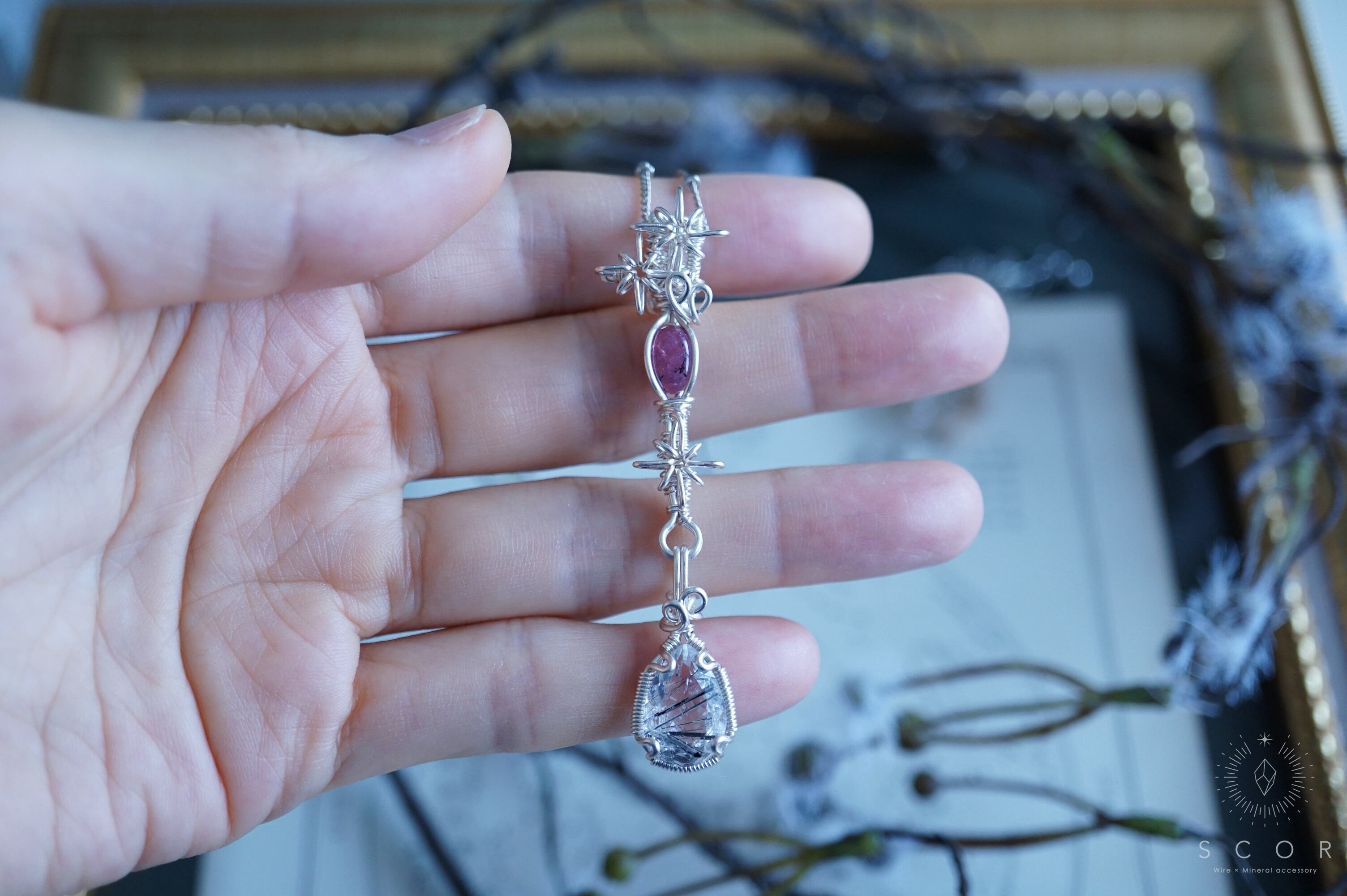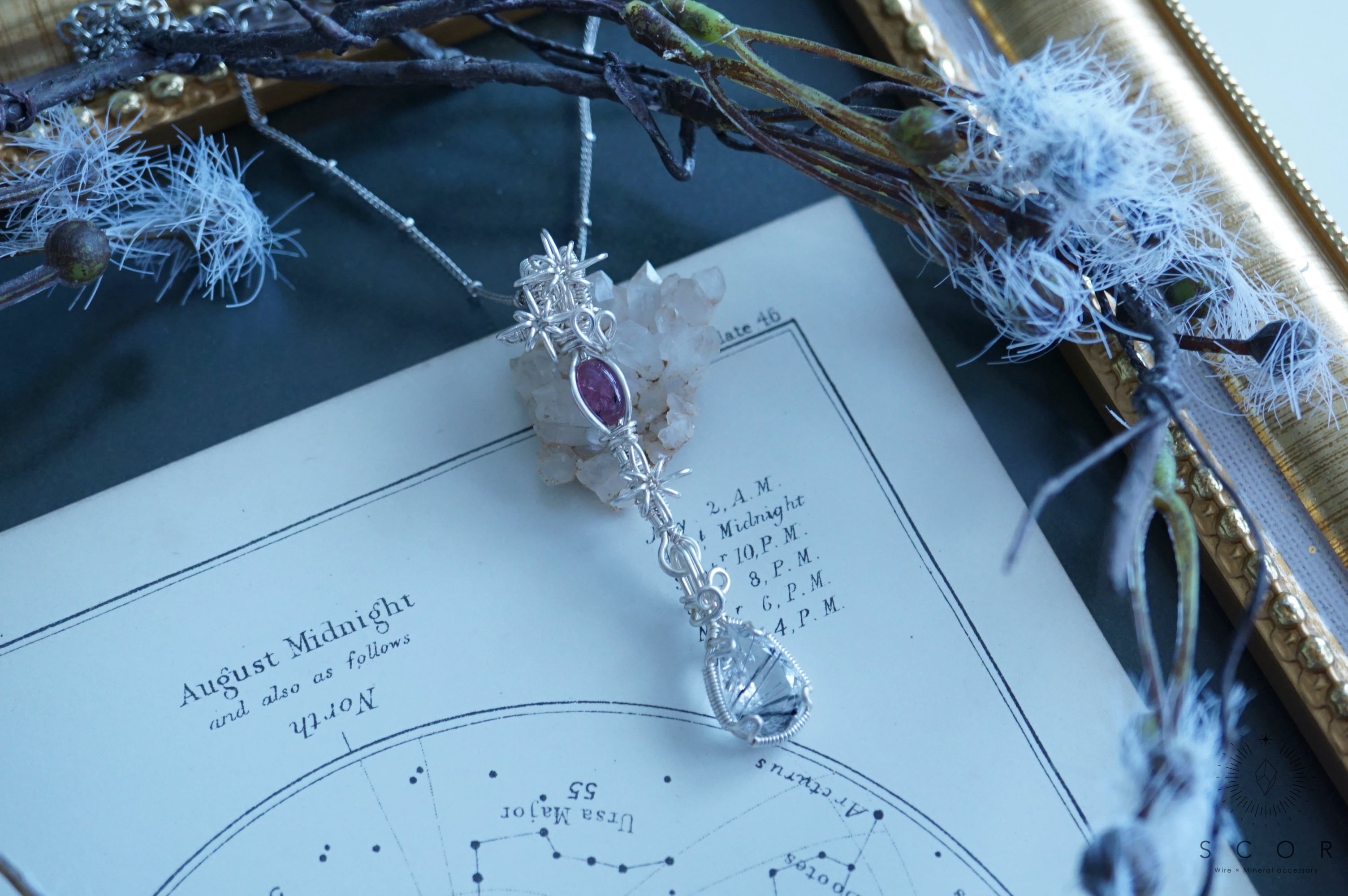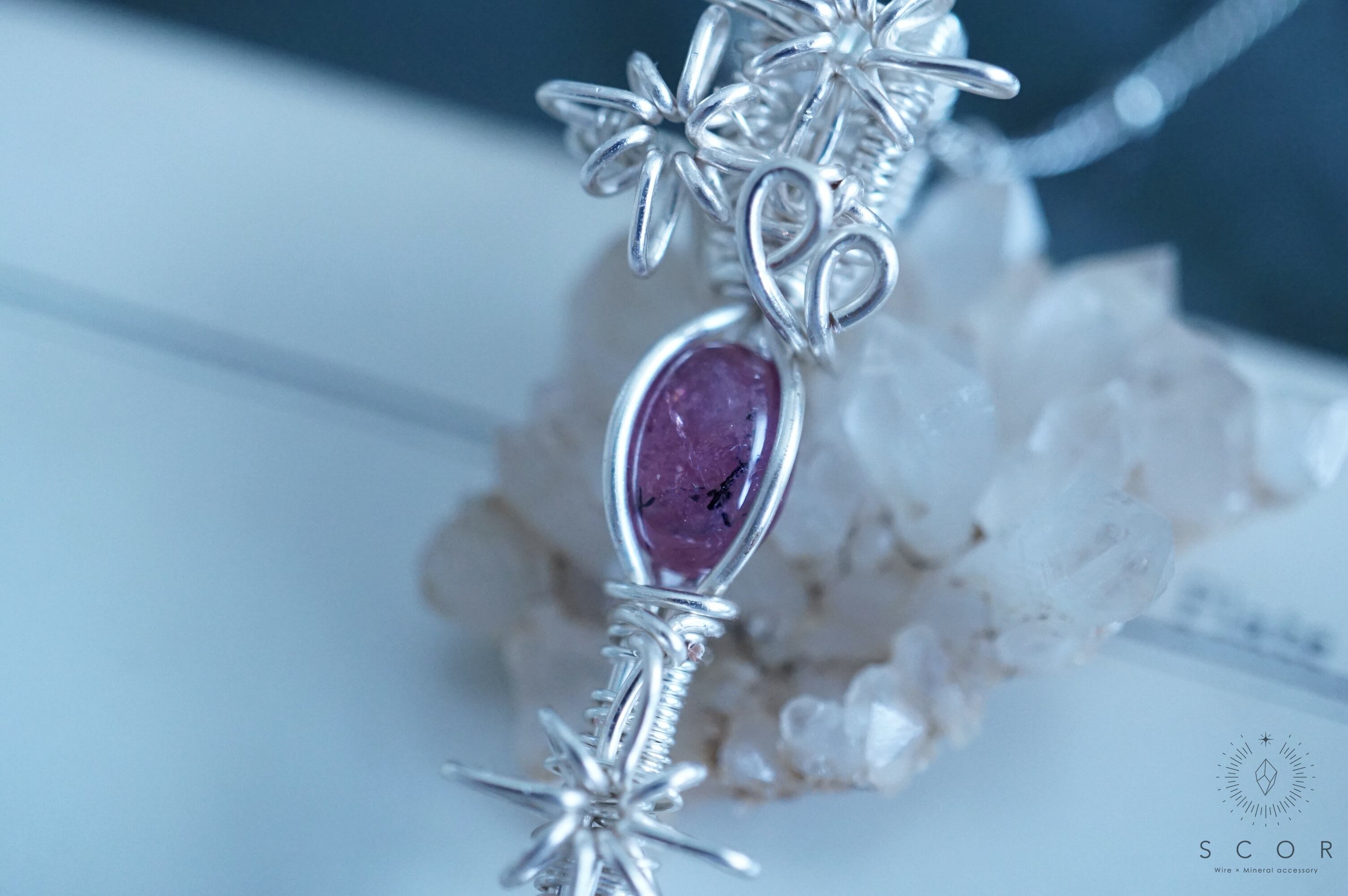 Shooting star - 漆黒の流星・薔薇色の星 (pt271-h-s)(ブラックトルマリンinクオーツ・トルマリン ペンダントトップ)