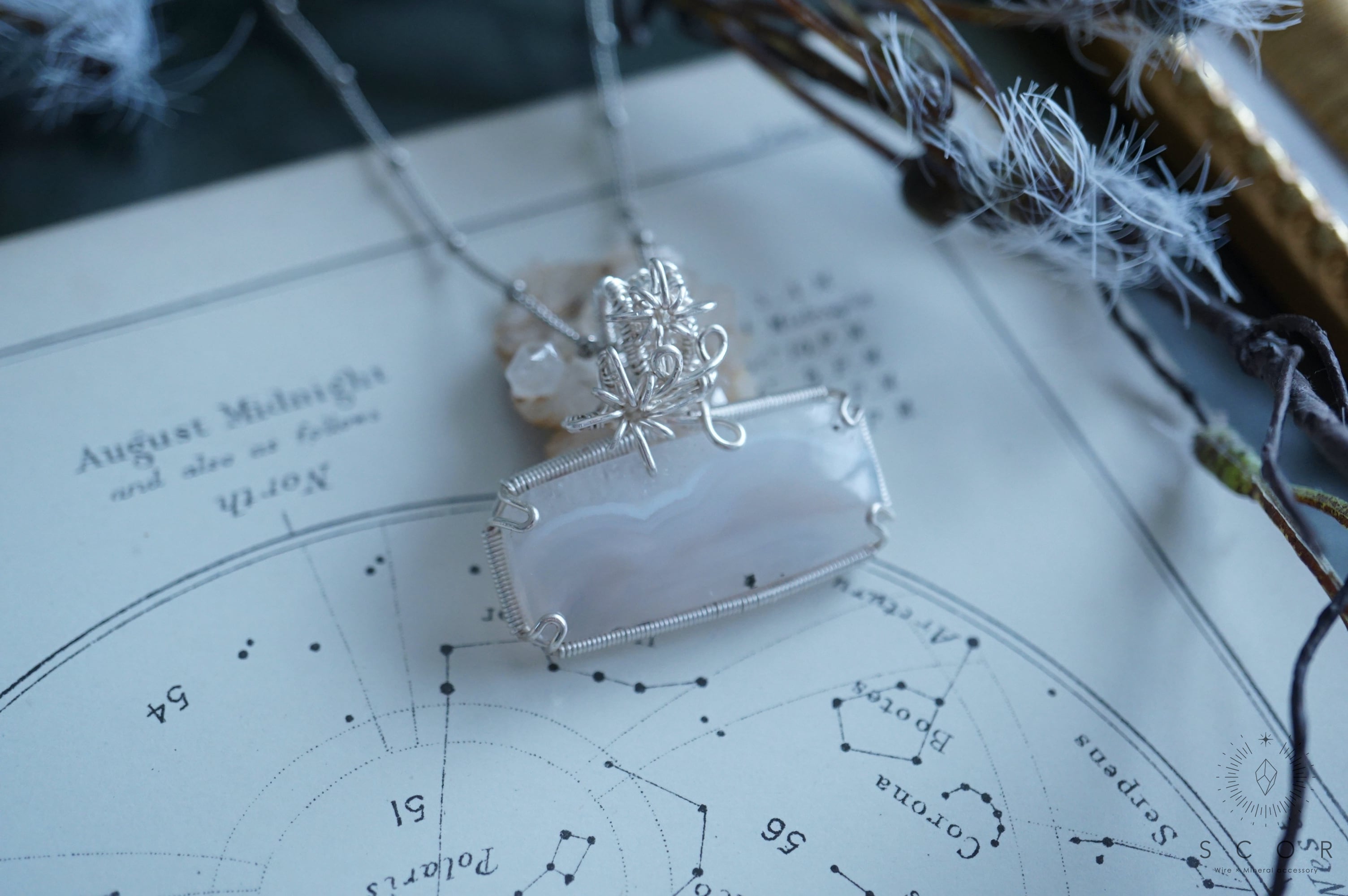白や淡い色の服と合わせると、ガーデンモスアゲートの幻想的な色合いが引き立ちます。