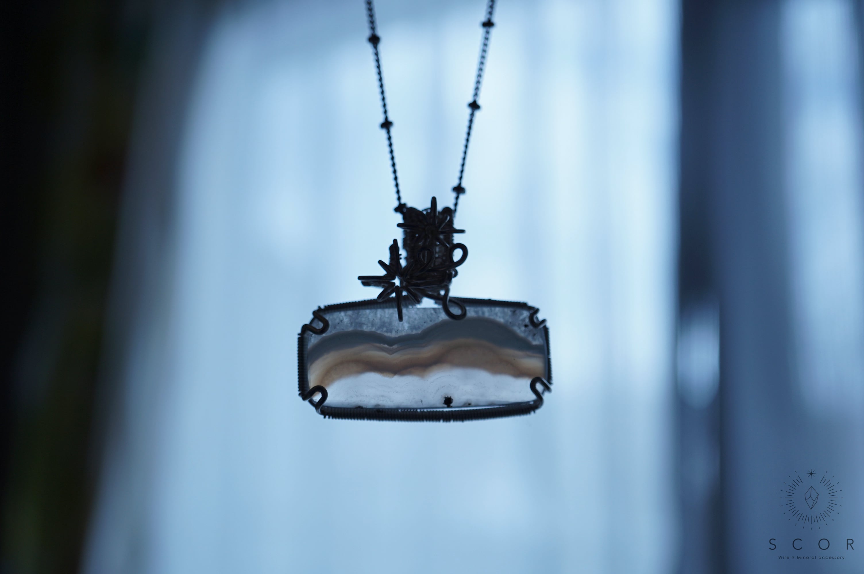 ガーデンモスアゲートは、珍しい横長のカボションを使用。