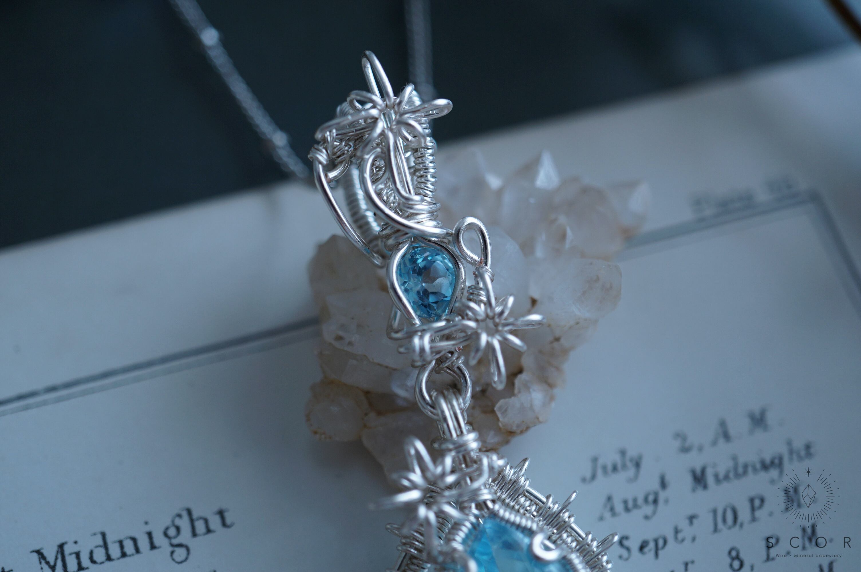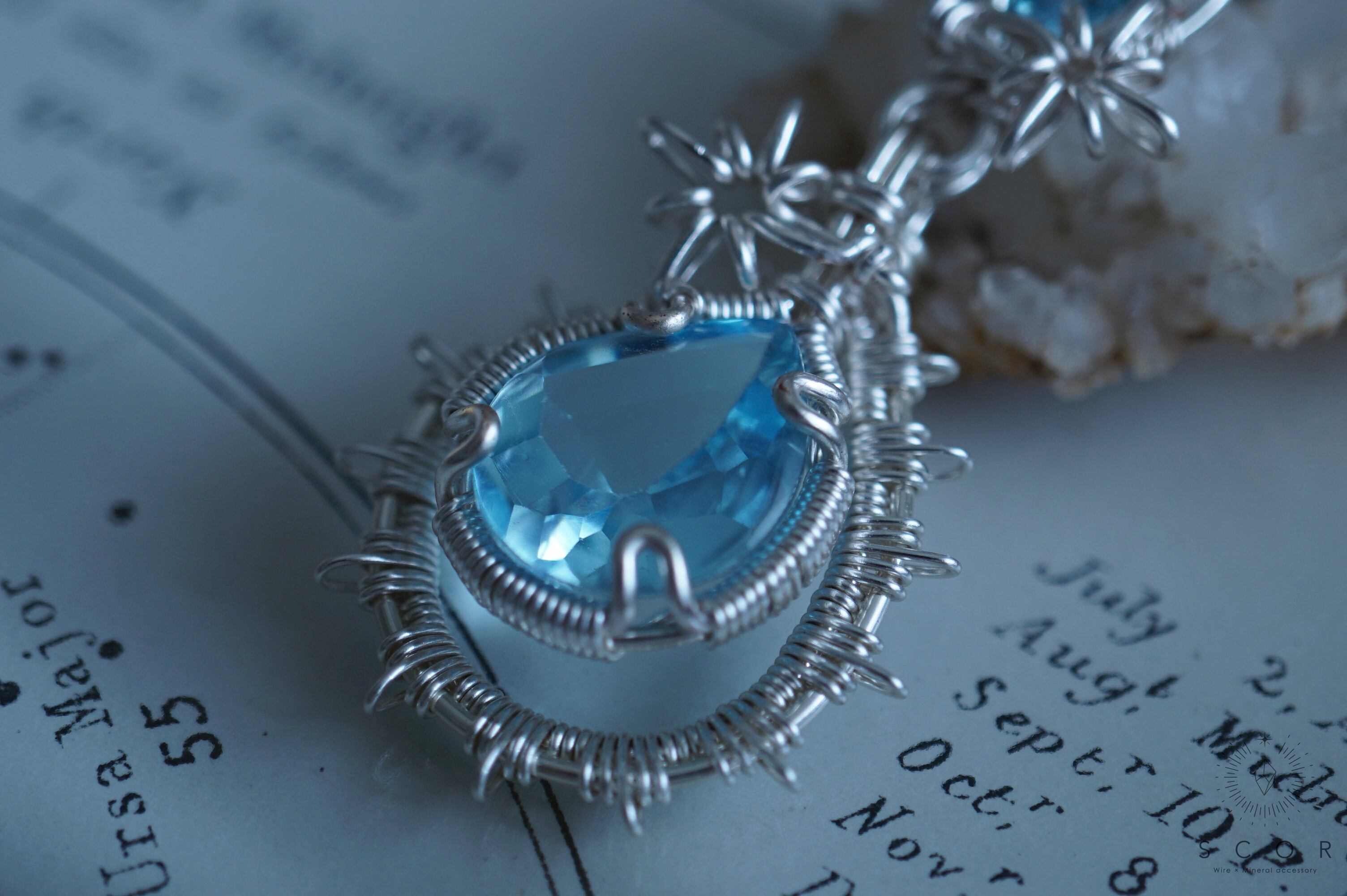 バチカンの下に添えたスカイブルートパーズは、ファセットカットのピースを使用。
