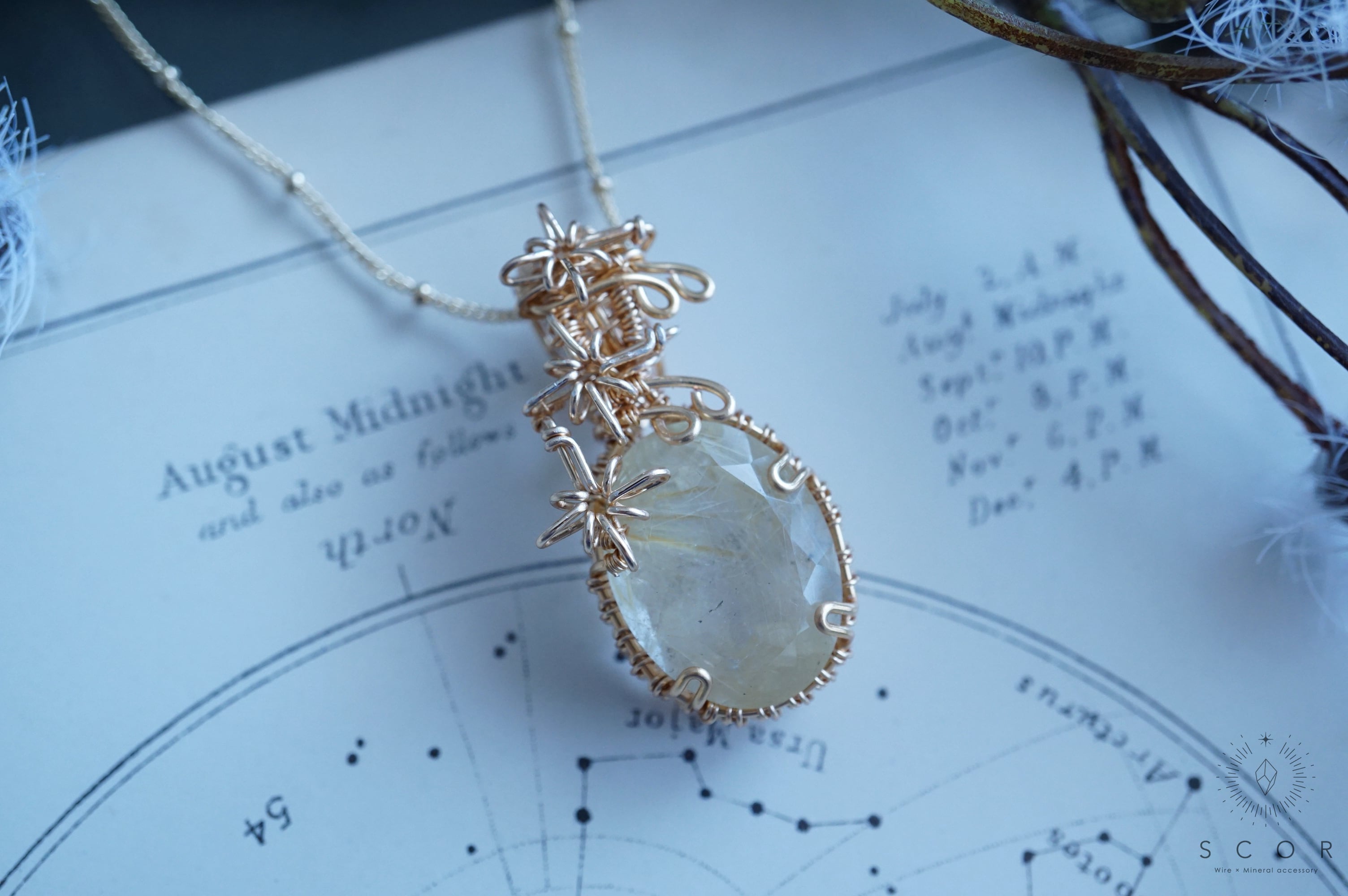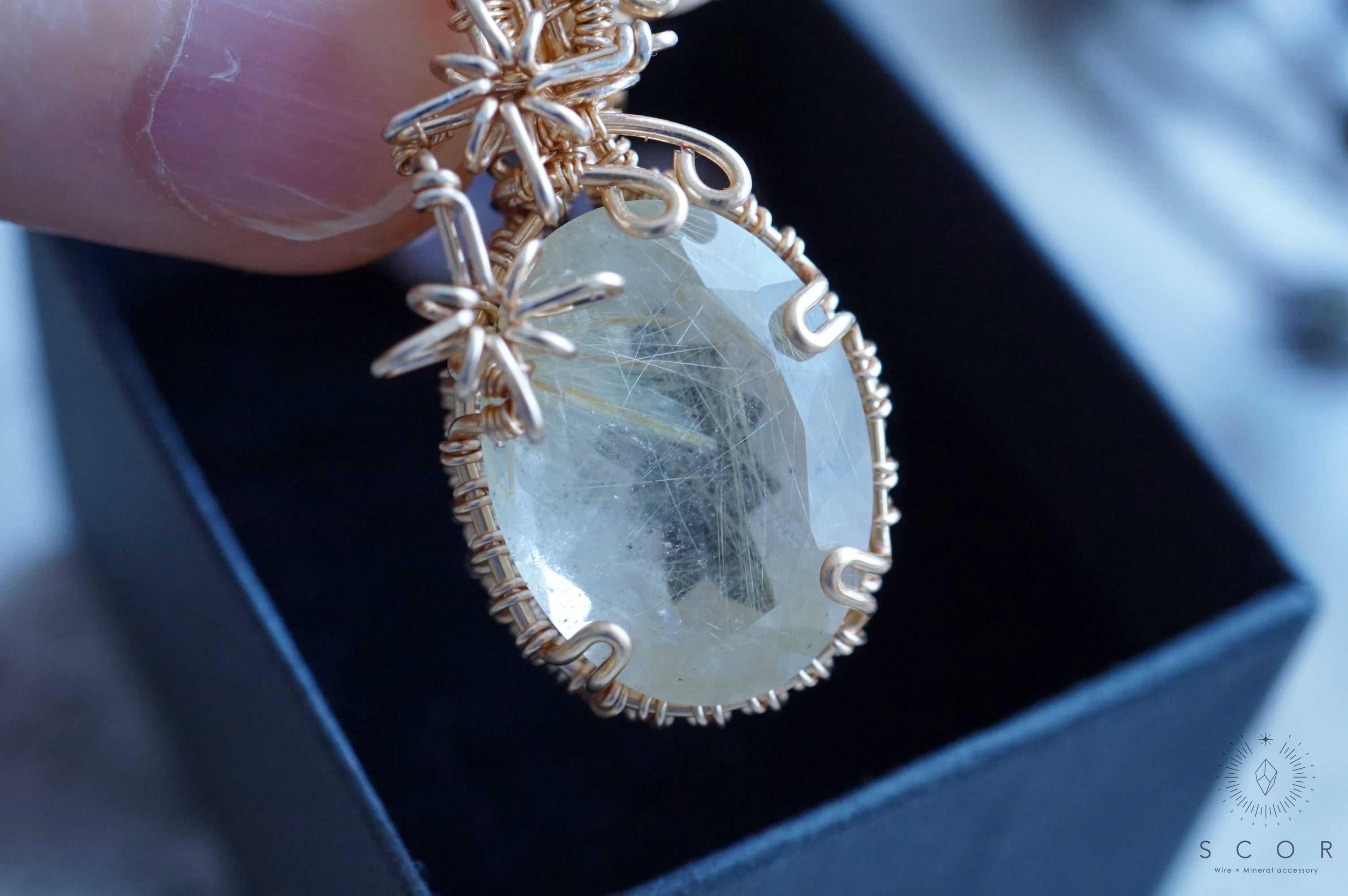 【動画あり】Shooting star - 流星群 #2 (pt289-r-g)(ルチルクオーツ ペンダントトップ)