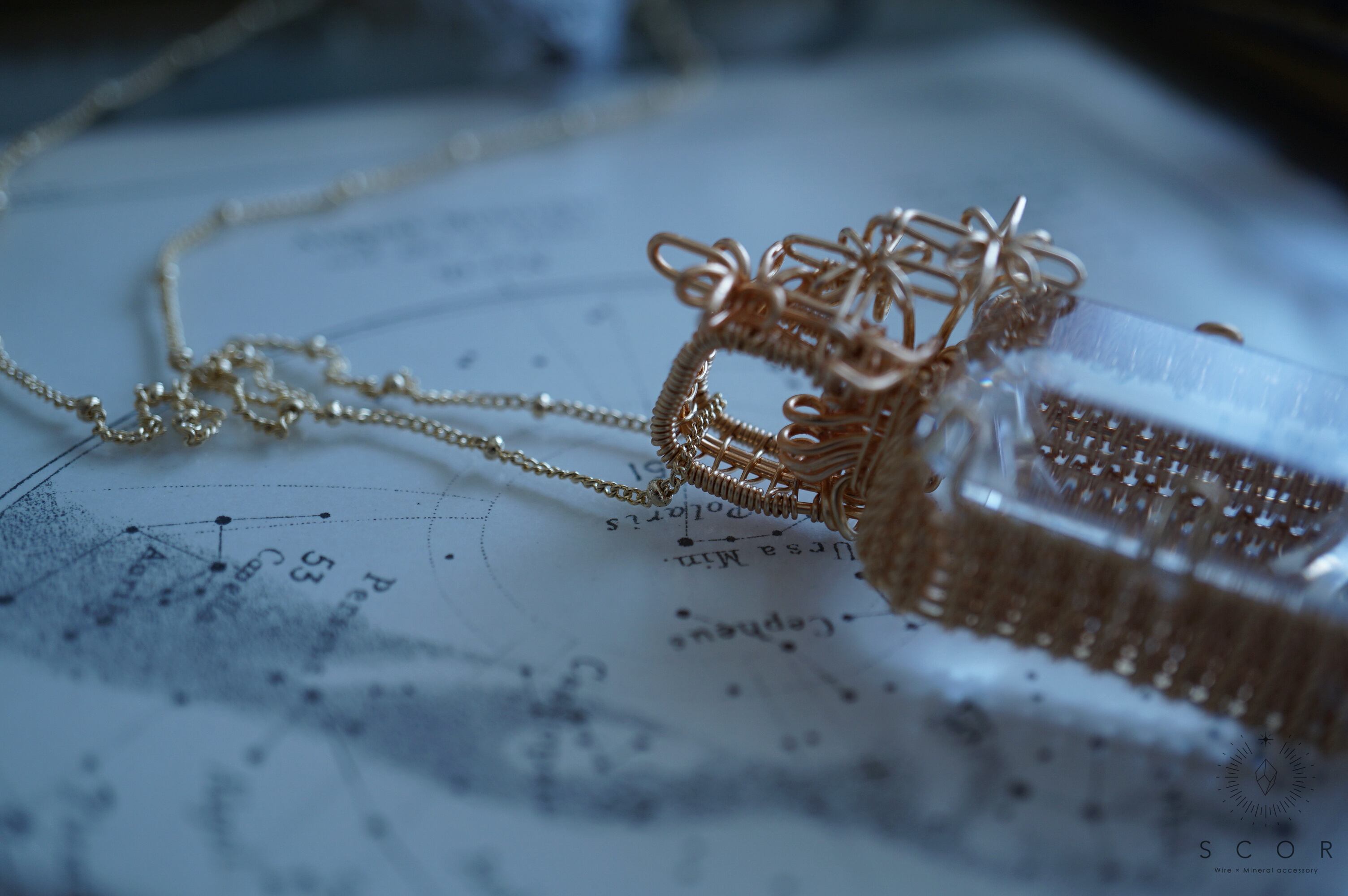 ワイヤー切断面は、なるたけ表に出ないように処理をしていますが、ストール、マフラー、レースなどと共に身につける際は、引っかかりにご注意ください。