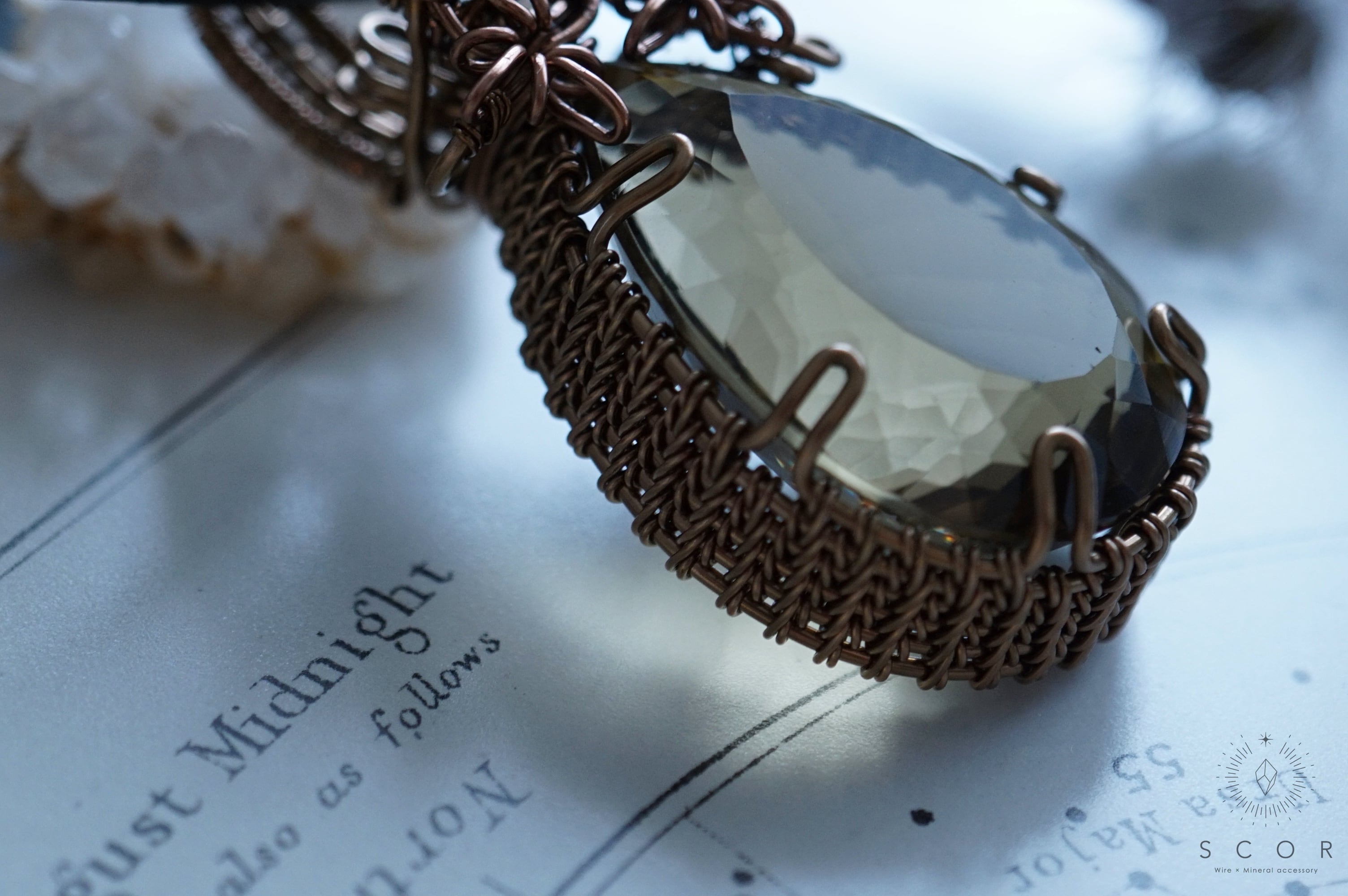 ワイヤー切断面は、なるたけ表に出ないように処理をしていますが、ストール、マフラー、レースなどと共に身につける際は、引っかかりにご注意ください。