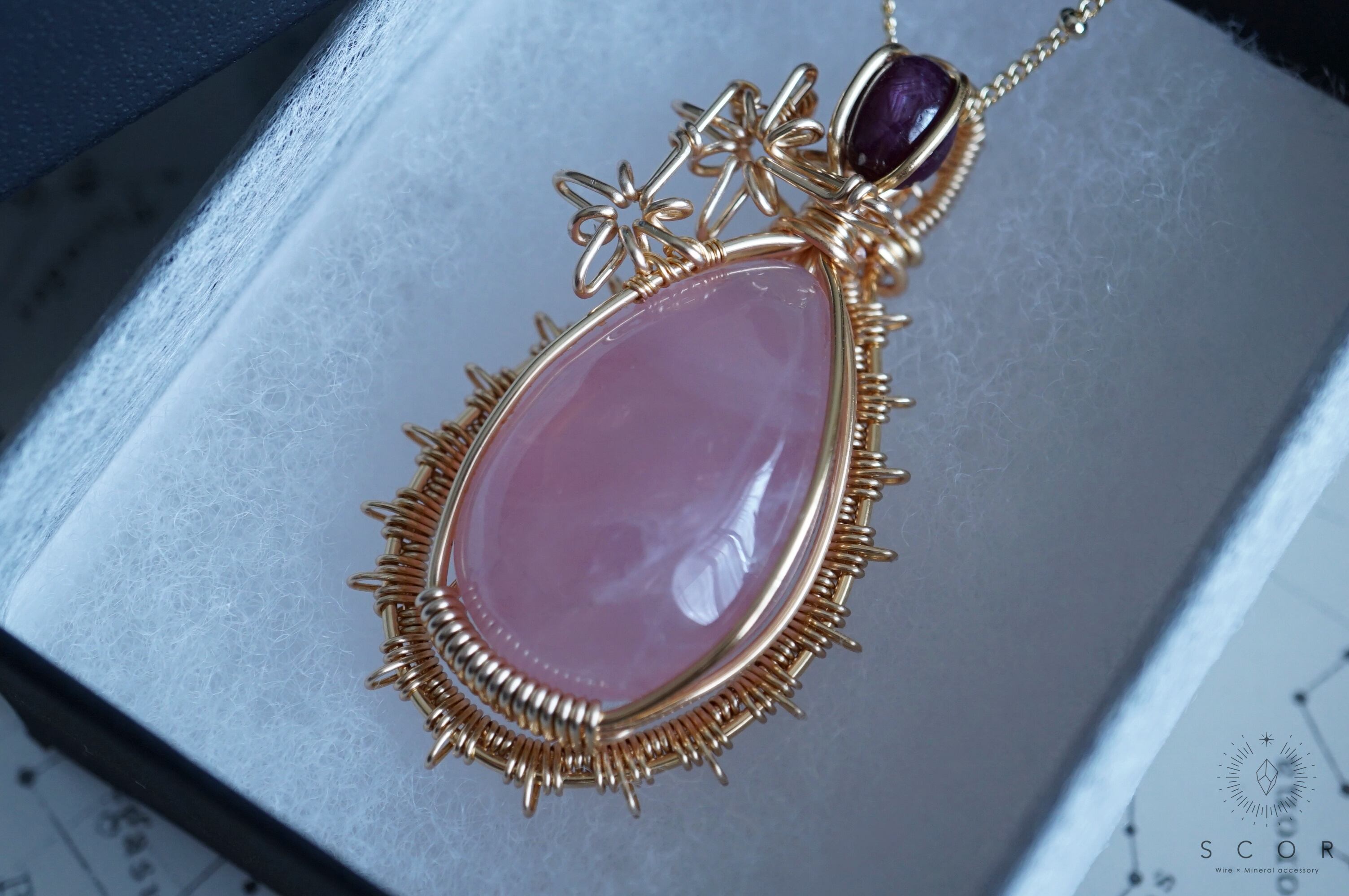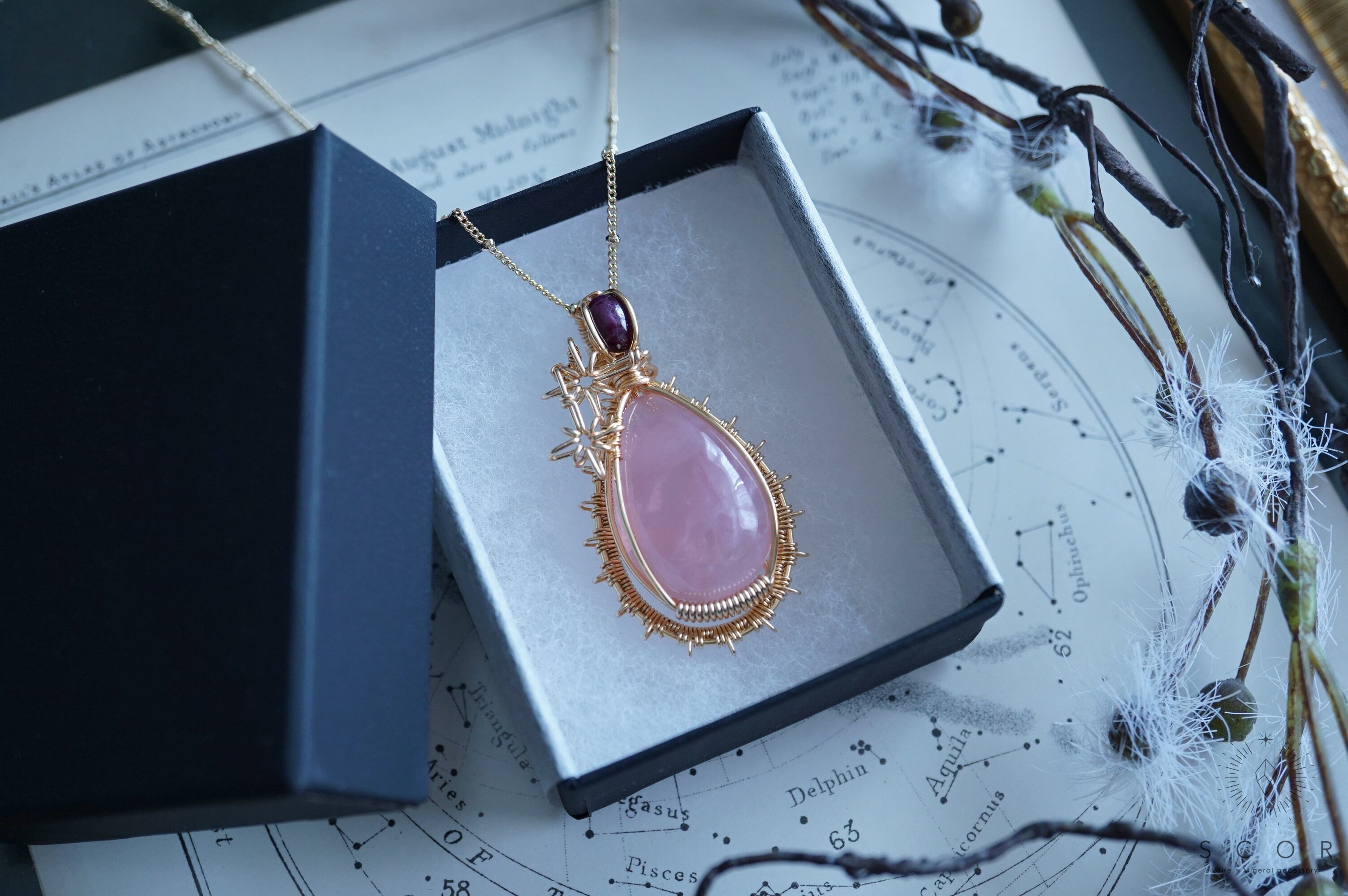 スターディープローズクオーツとスタールビーを使ったペンダントトップです。