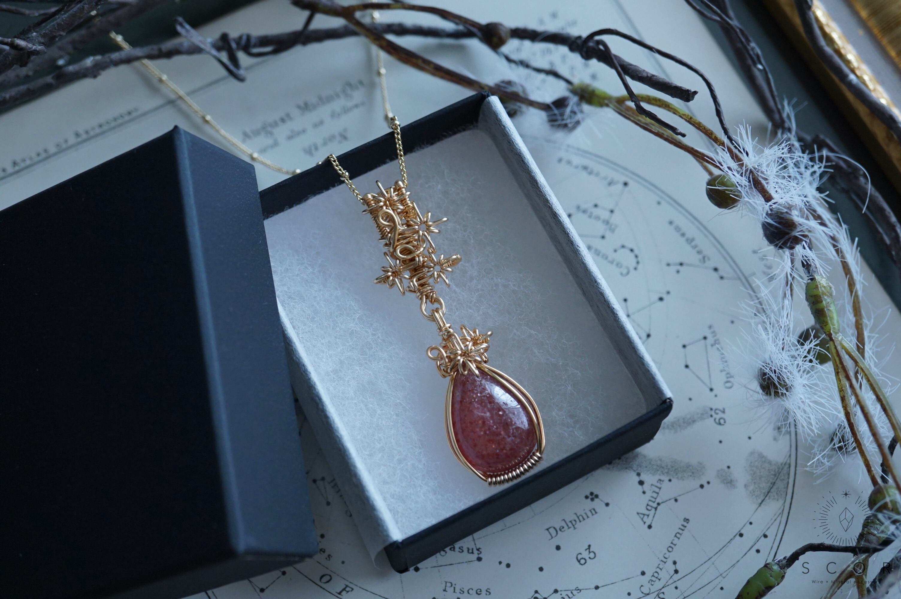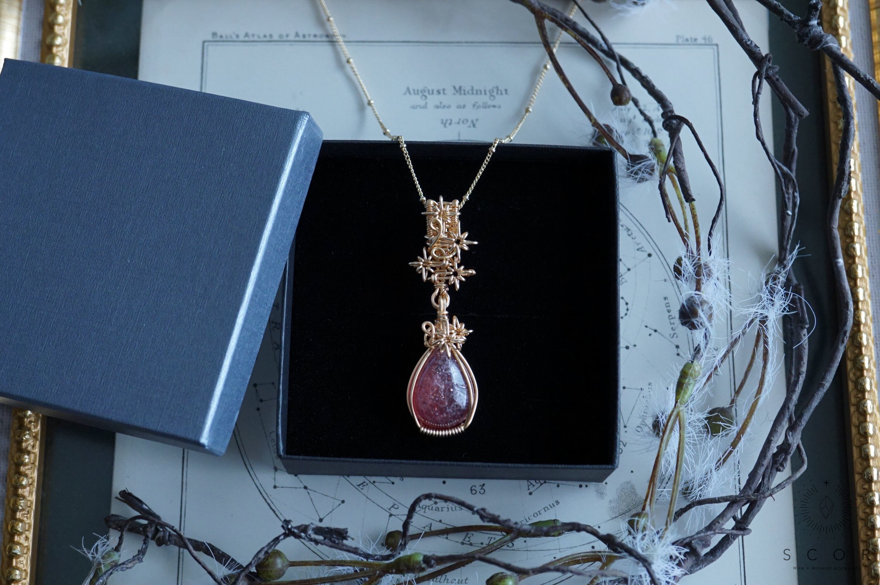 【動画あり】Ray of light - 踊る星群(pt302-r-g)(レッドアベンチュリンクオーツシスト ペンダントトップ)