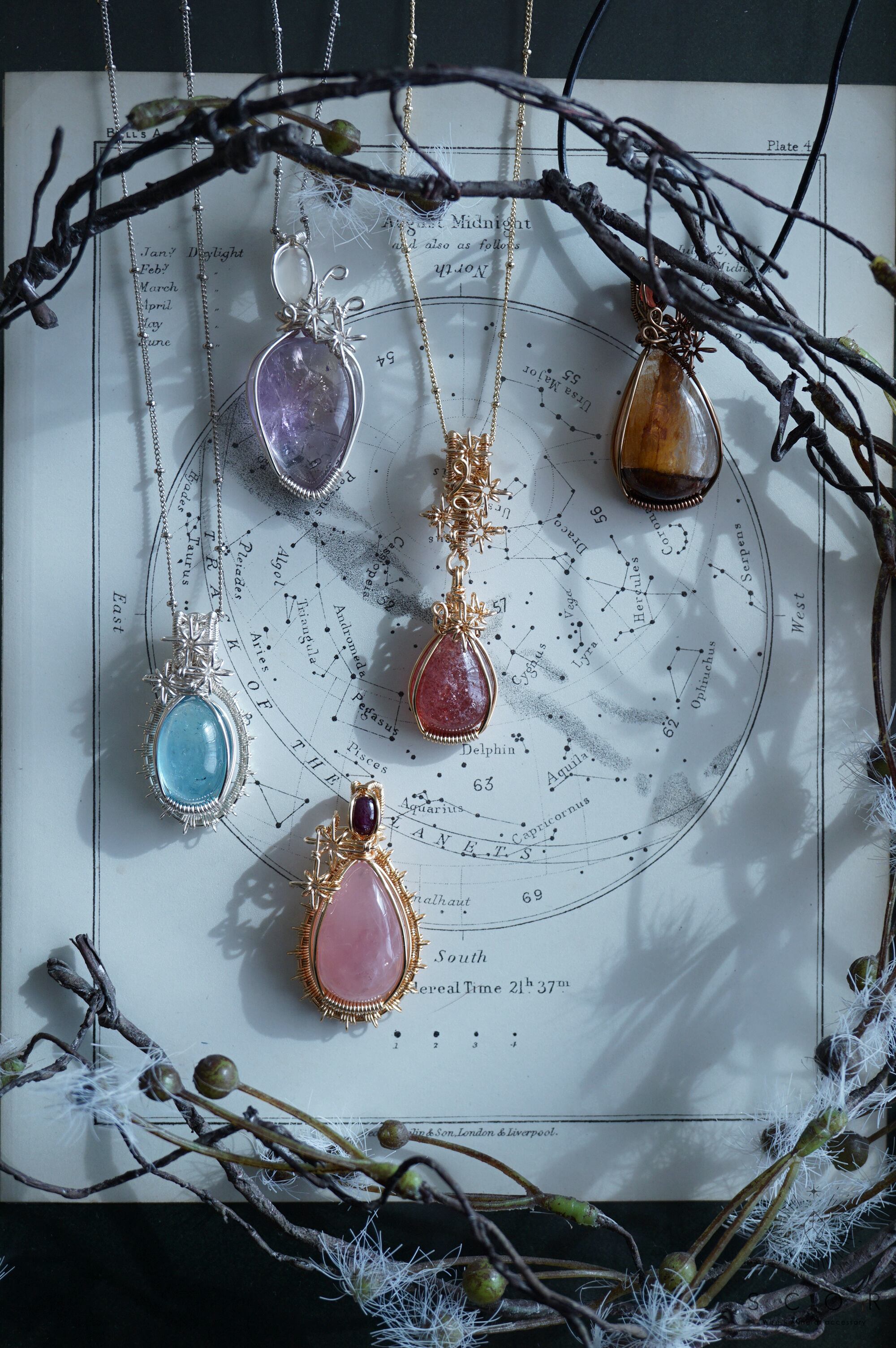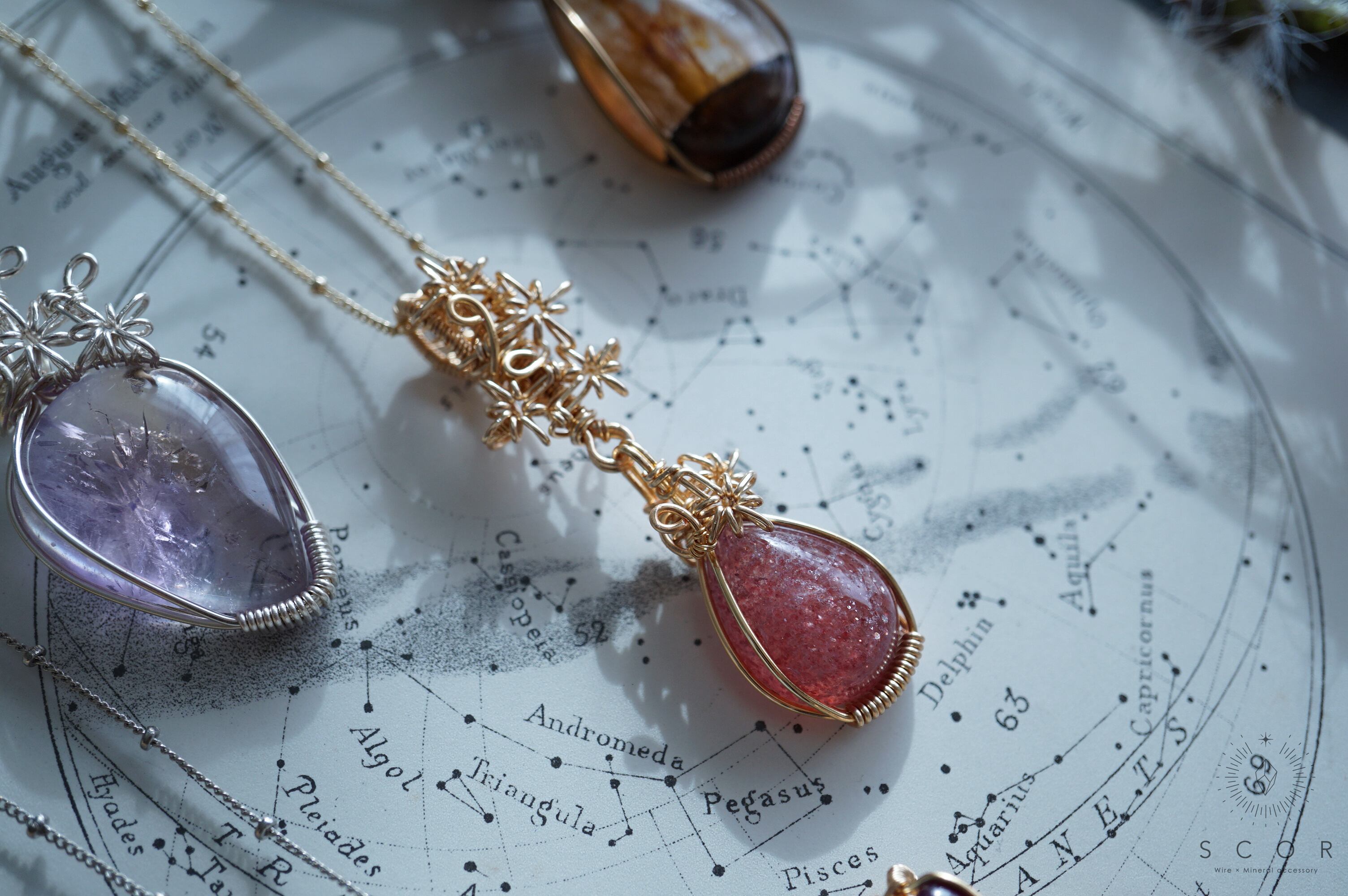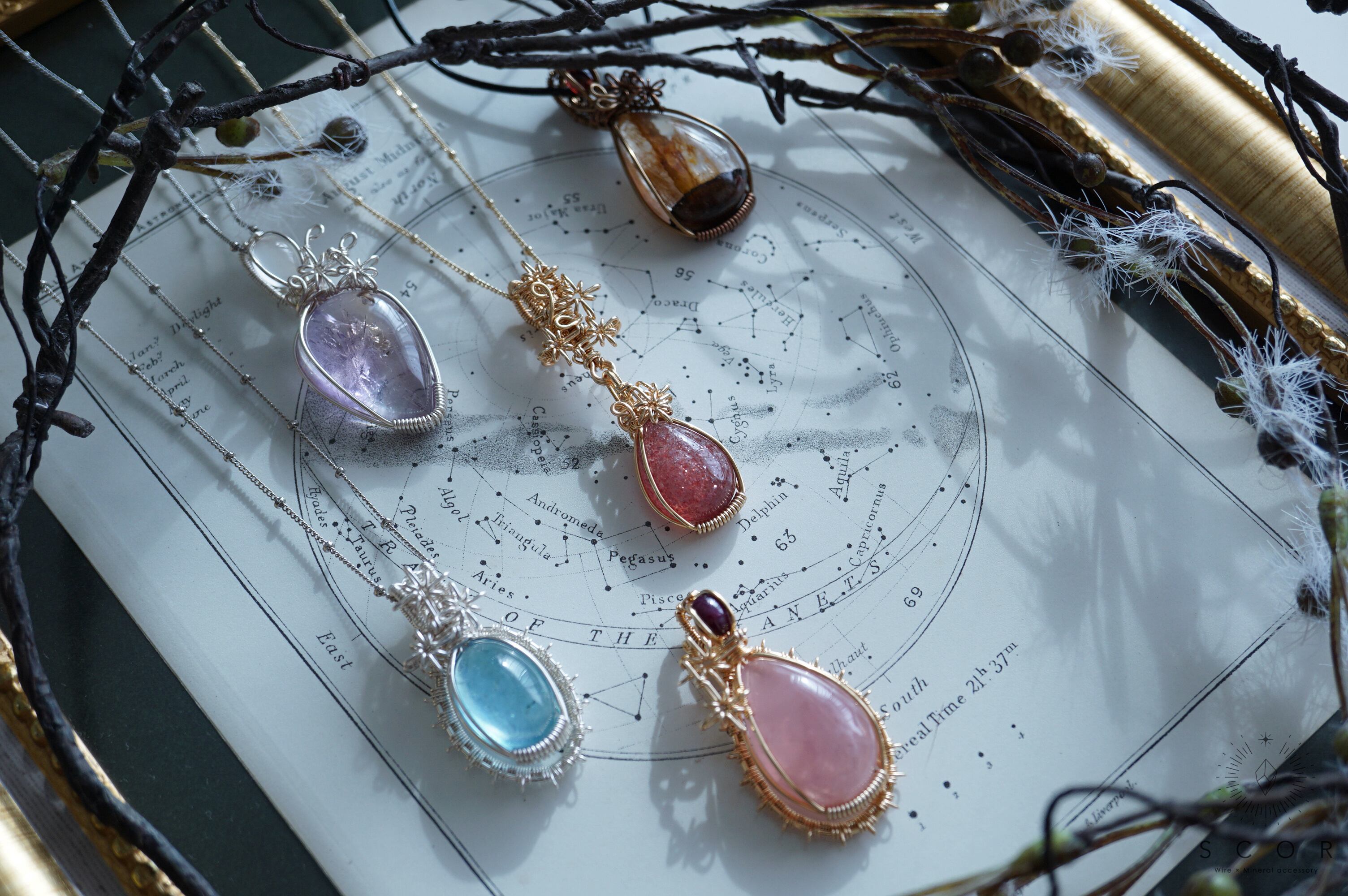 石を星に見立て、その瞬きを光芒のワイヤーモチーフで表現したRay of lightシリーズ。