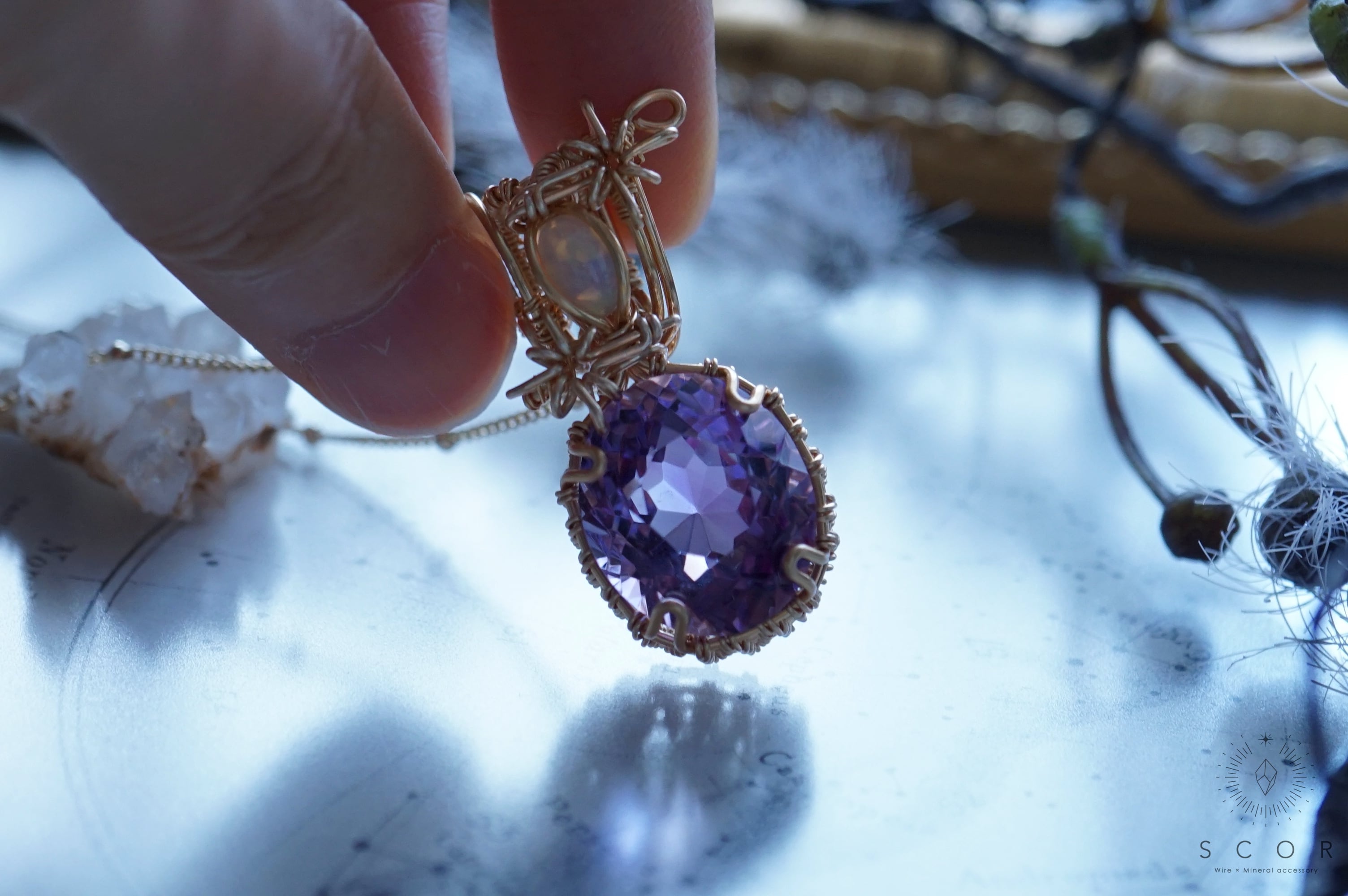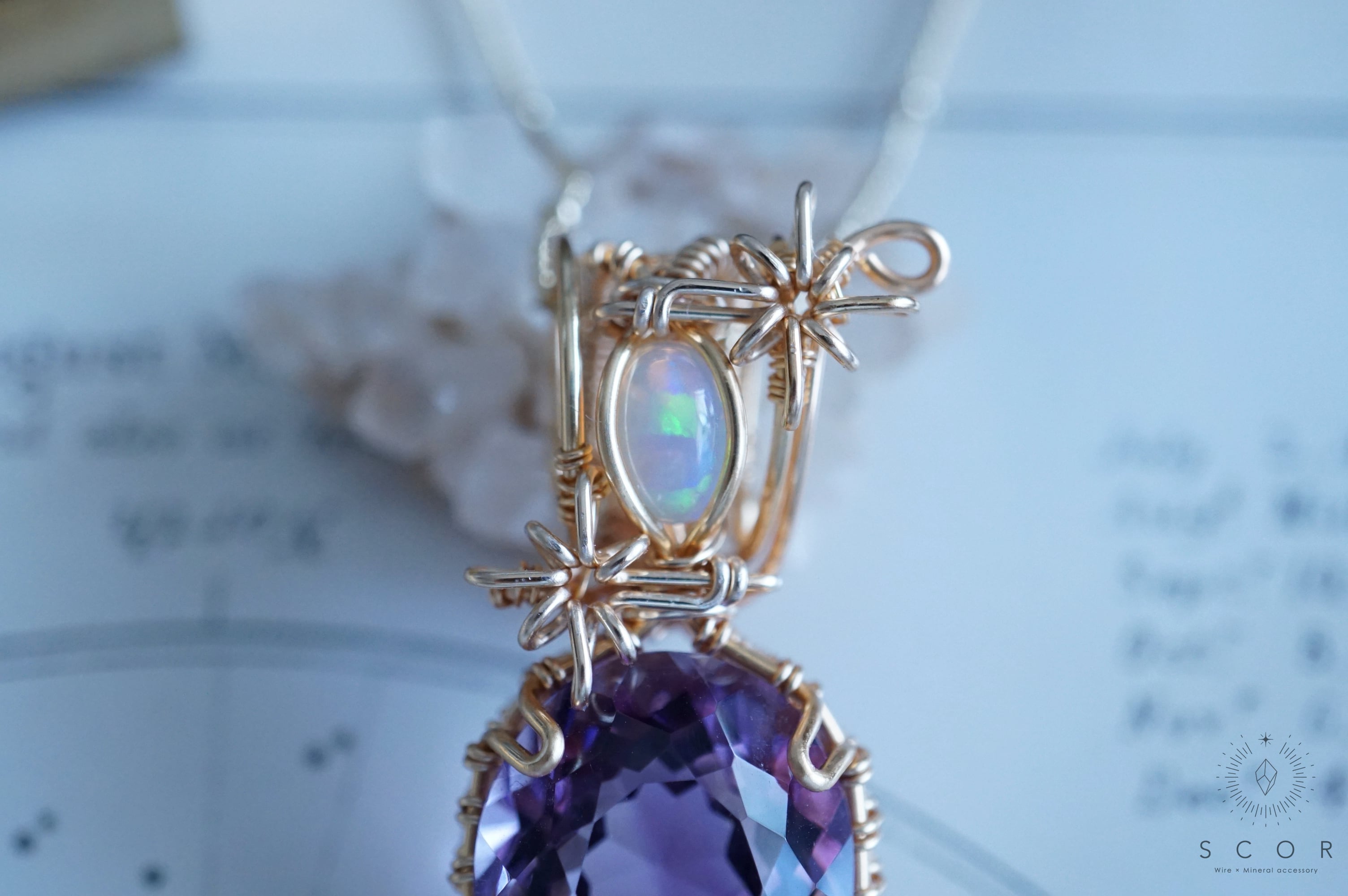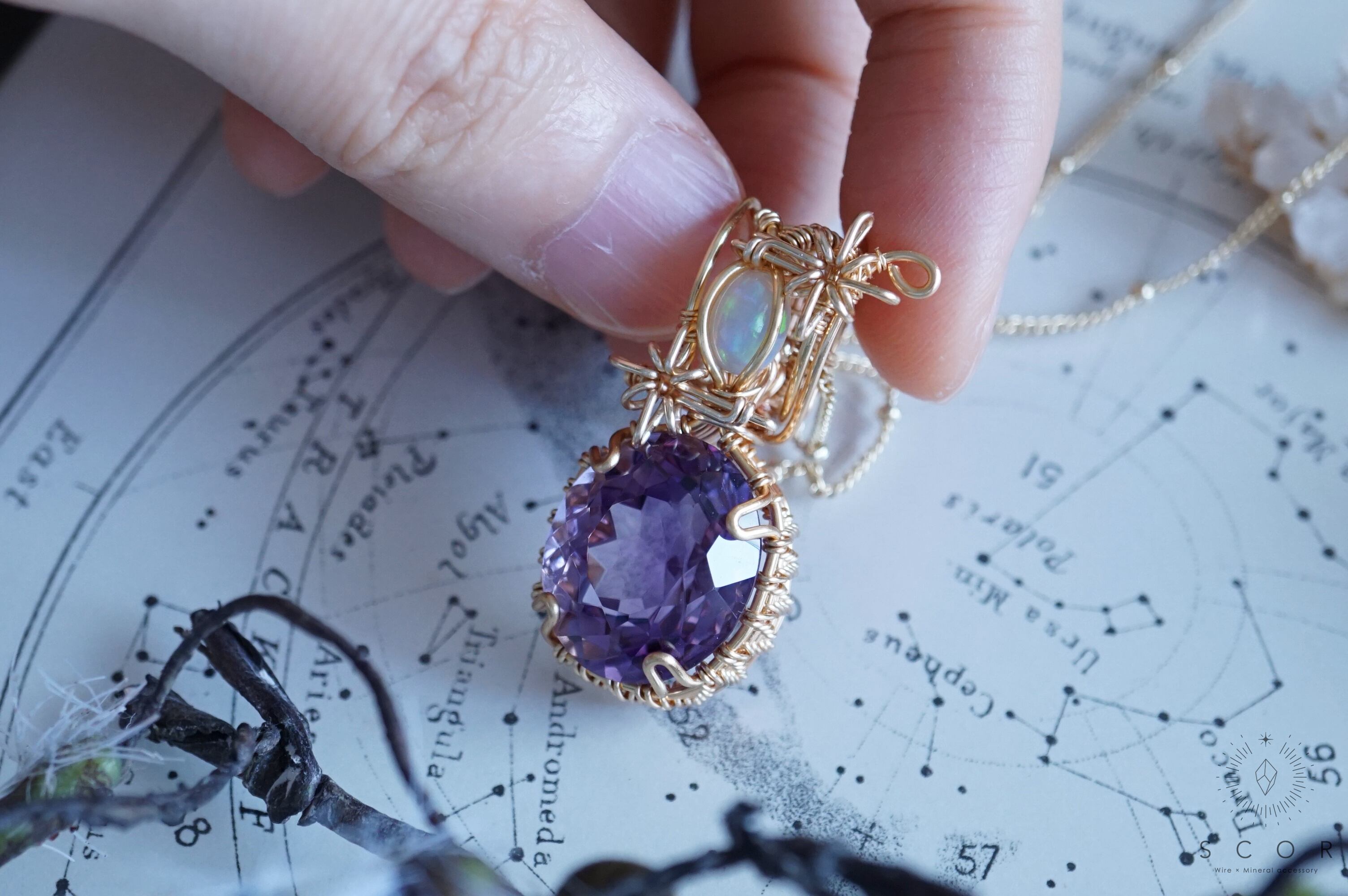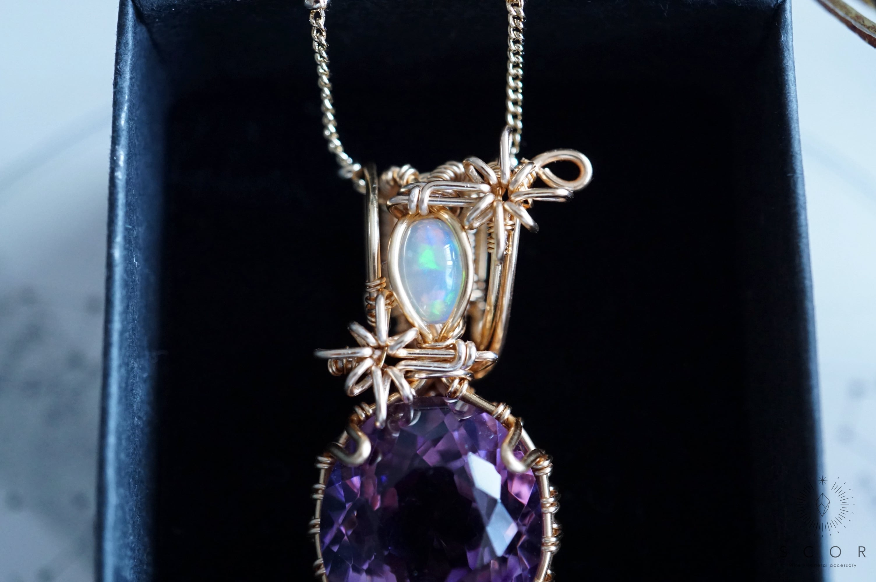 【動画あり】Two stars - 光踊る星々(pt305-ao-g)(アメジスト・オパール ペンダントトップ)