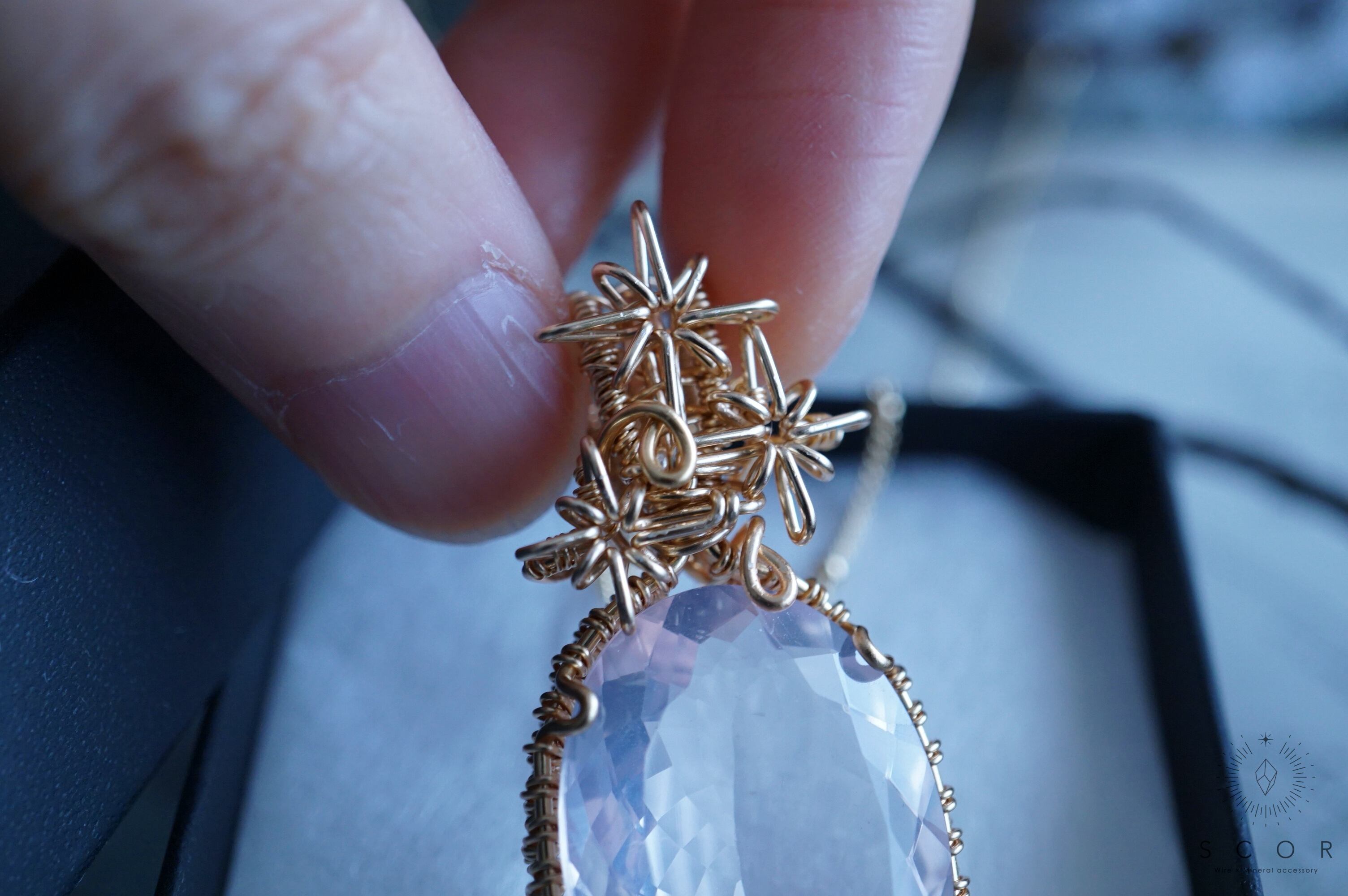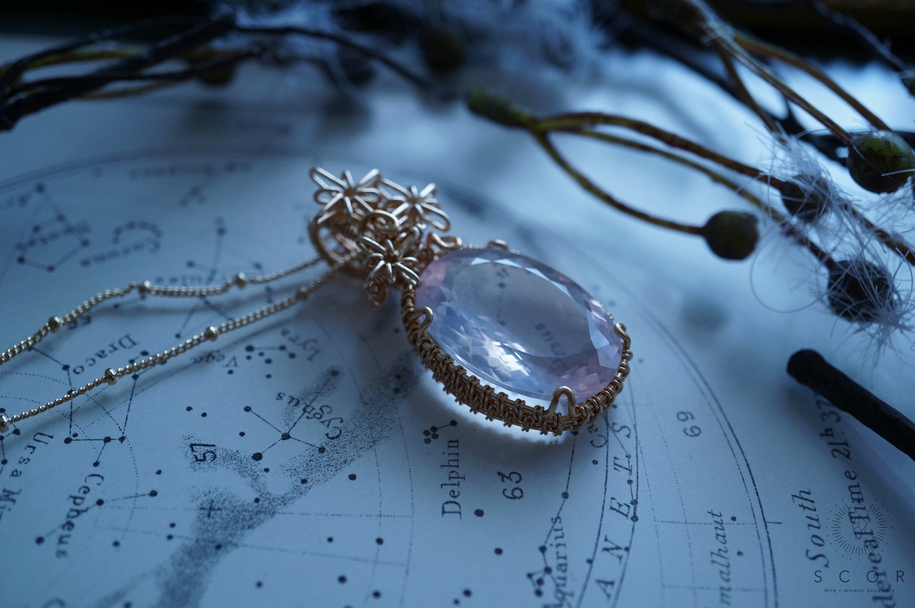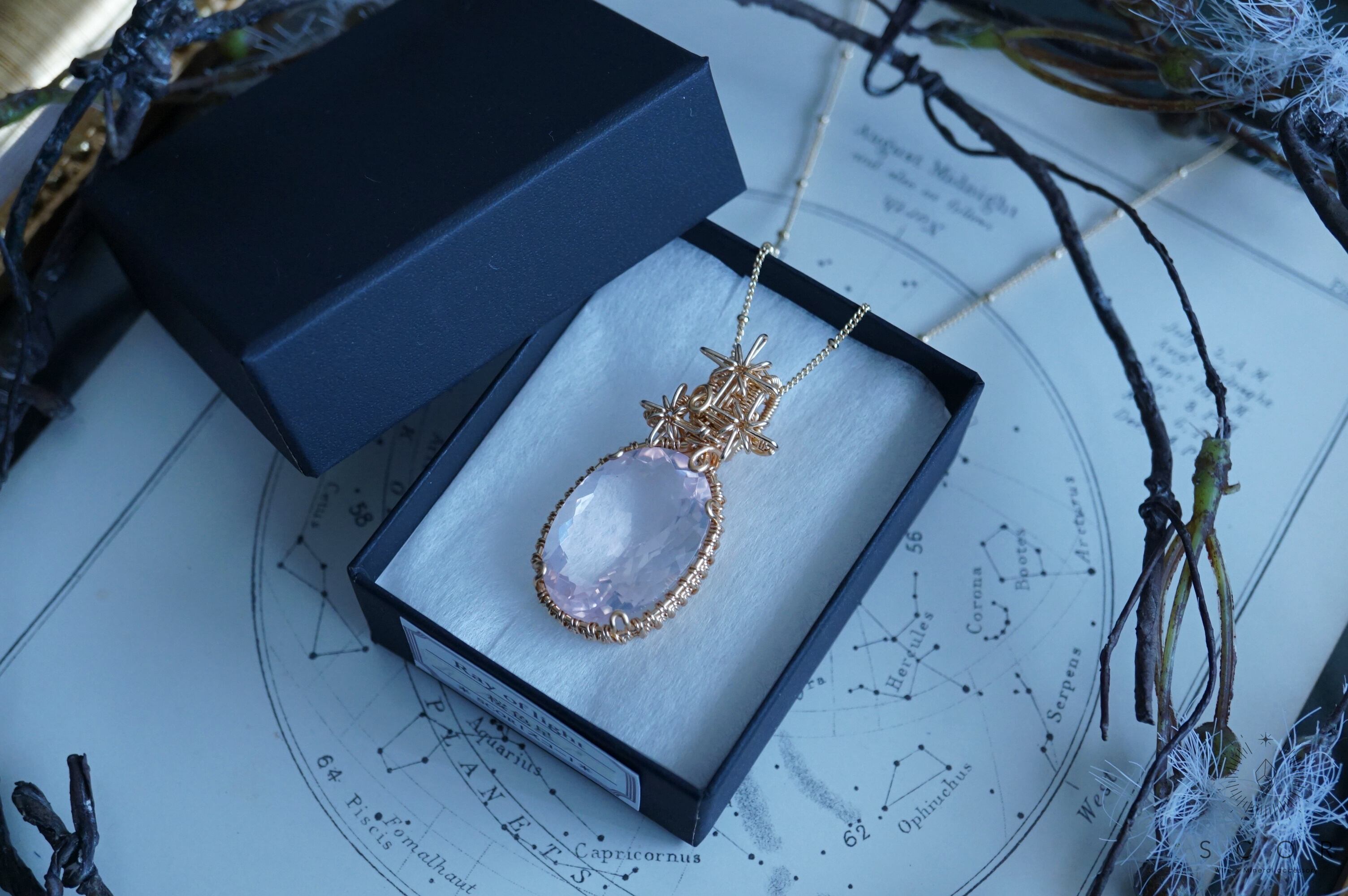 ローズクオーツは、たて25mm × よこ18mm(25.24ct)の特大サイズのファセットカットのピースを使用。