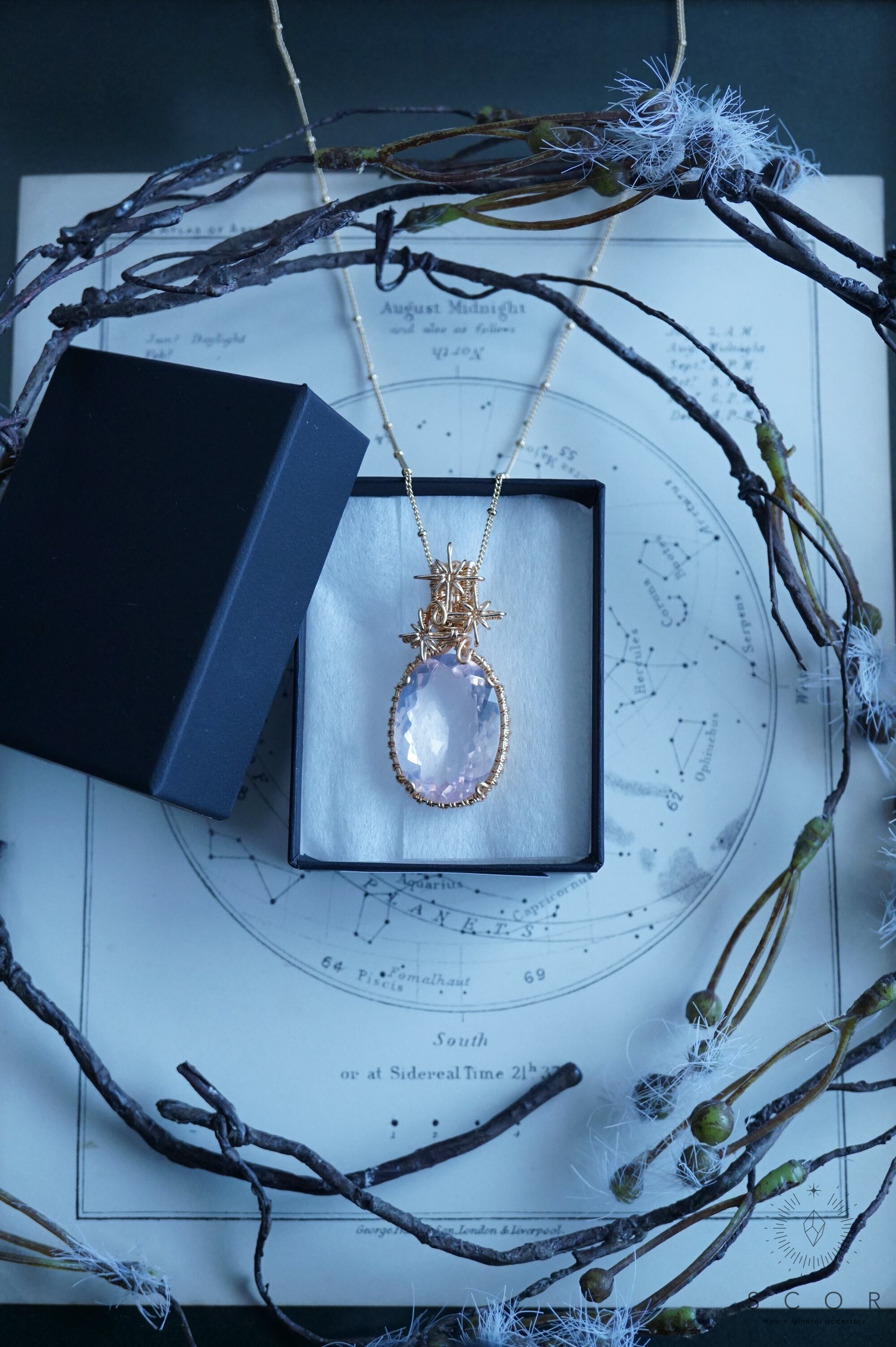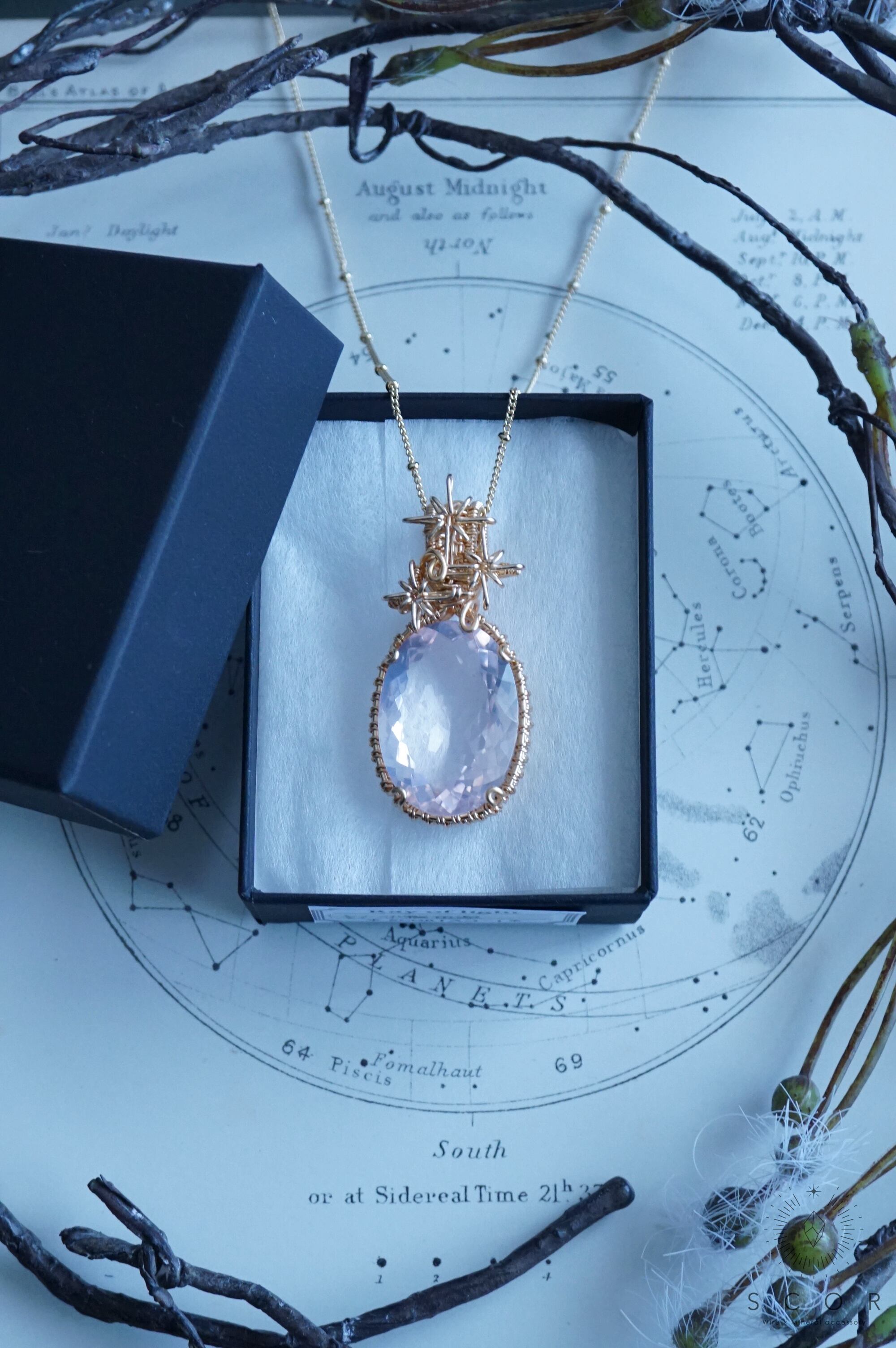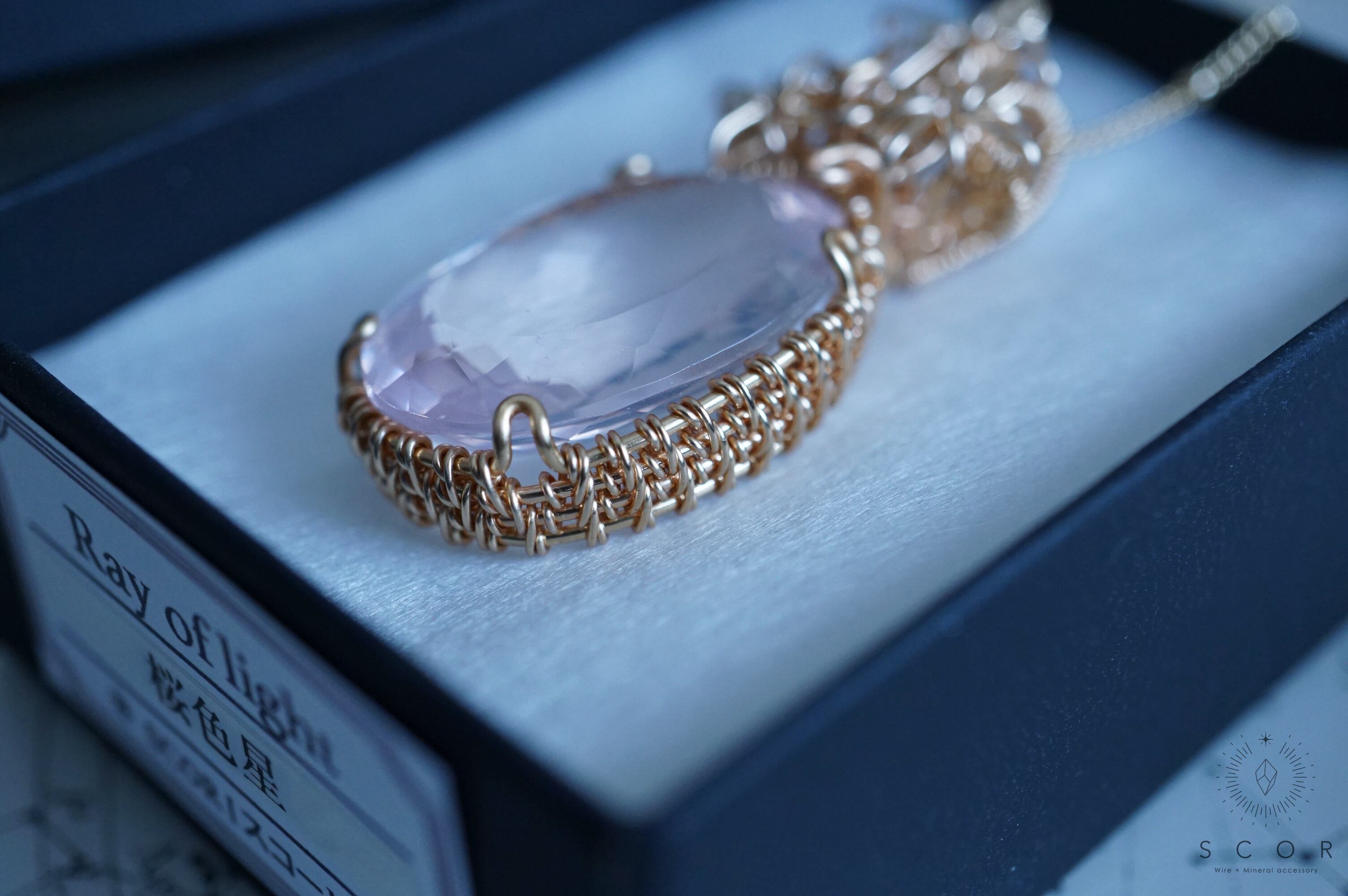 【動画あり】Ray of light - 桜色星(pt343-r-g)(ローズクオーツ ペンダントトップ)