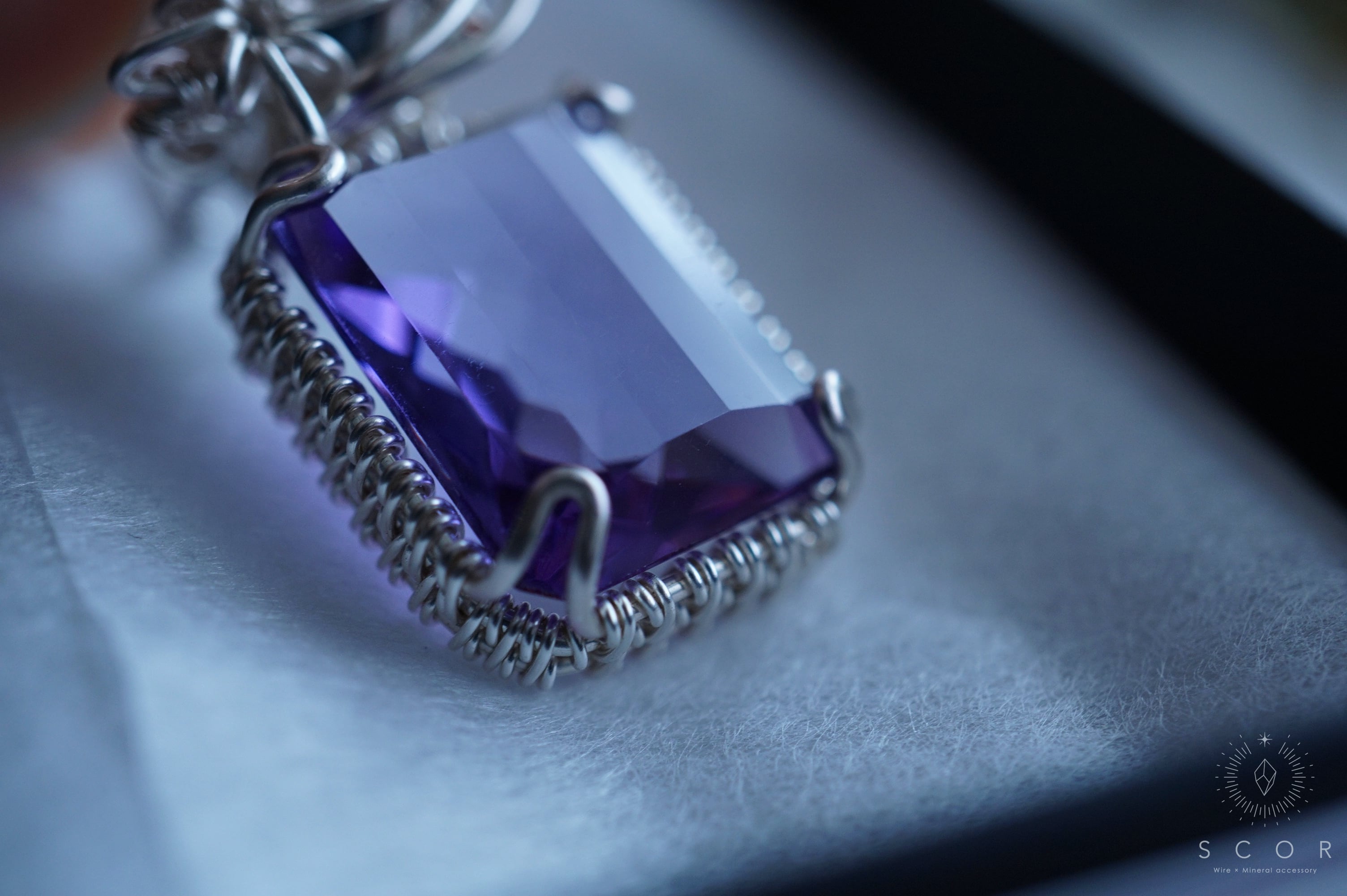 アメジストは、長方形のファセットカットのピースを使用。