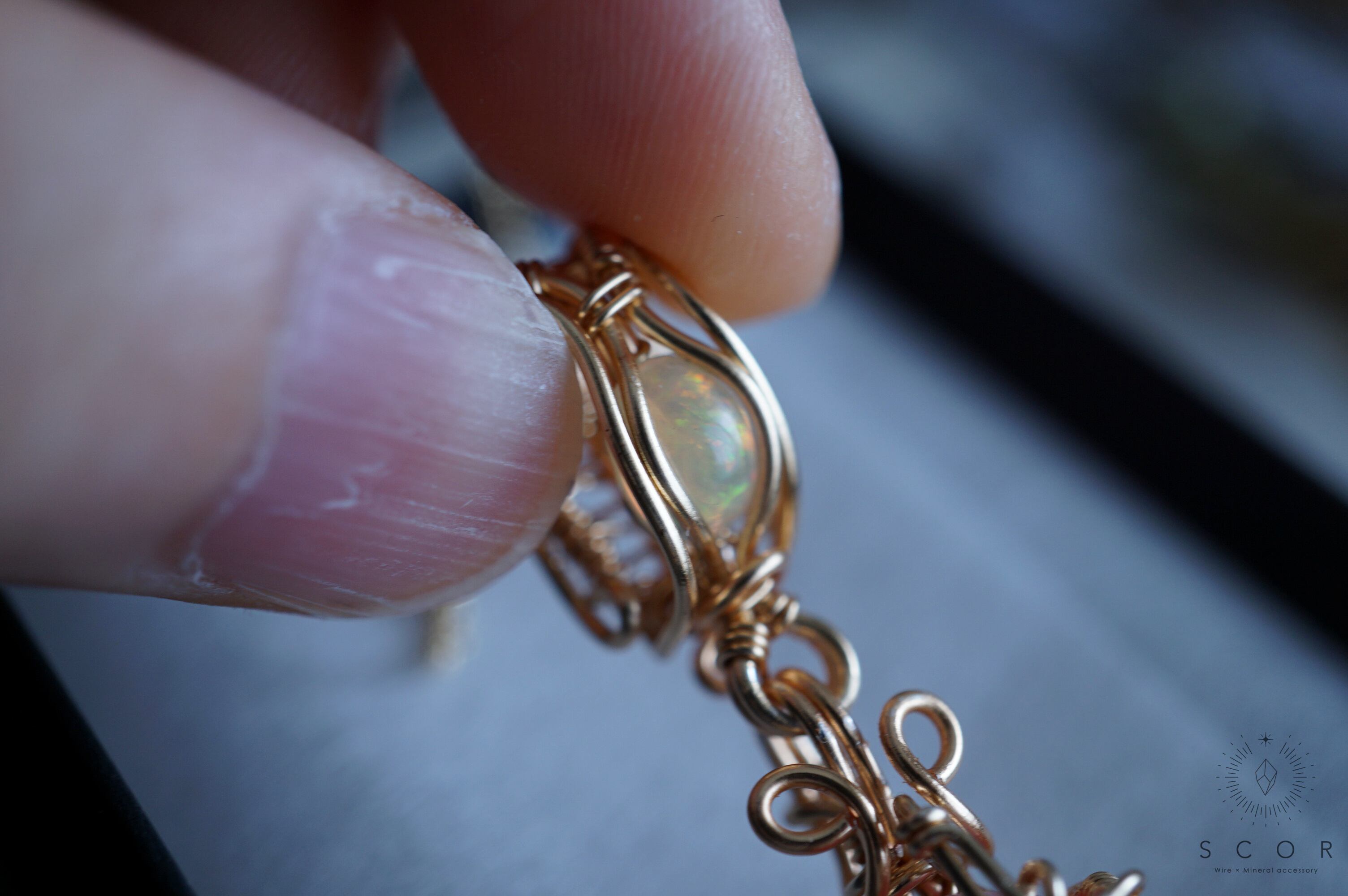 ワイヤー切断面は、なるたけ表に出ないように処理をしていますが、ストール、マフラー、レースなどと共に身につける際は、引っかかりにご注意ください。