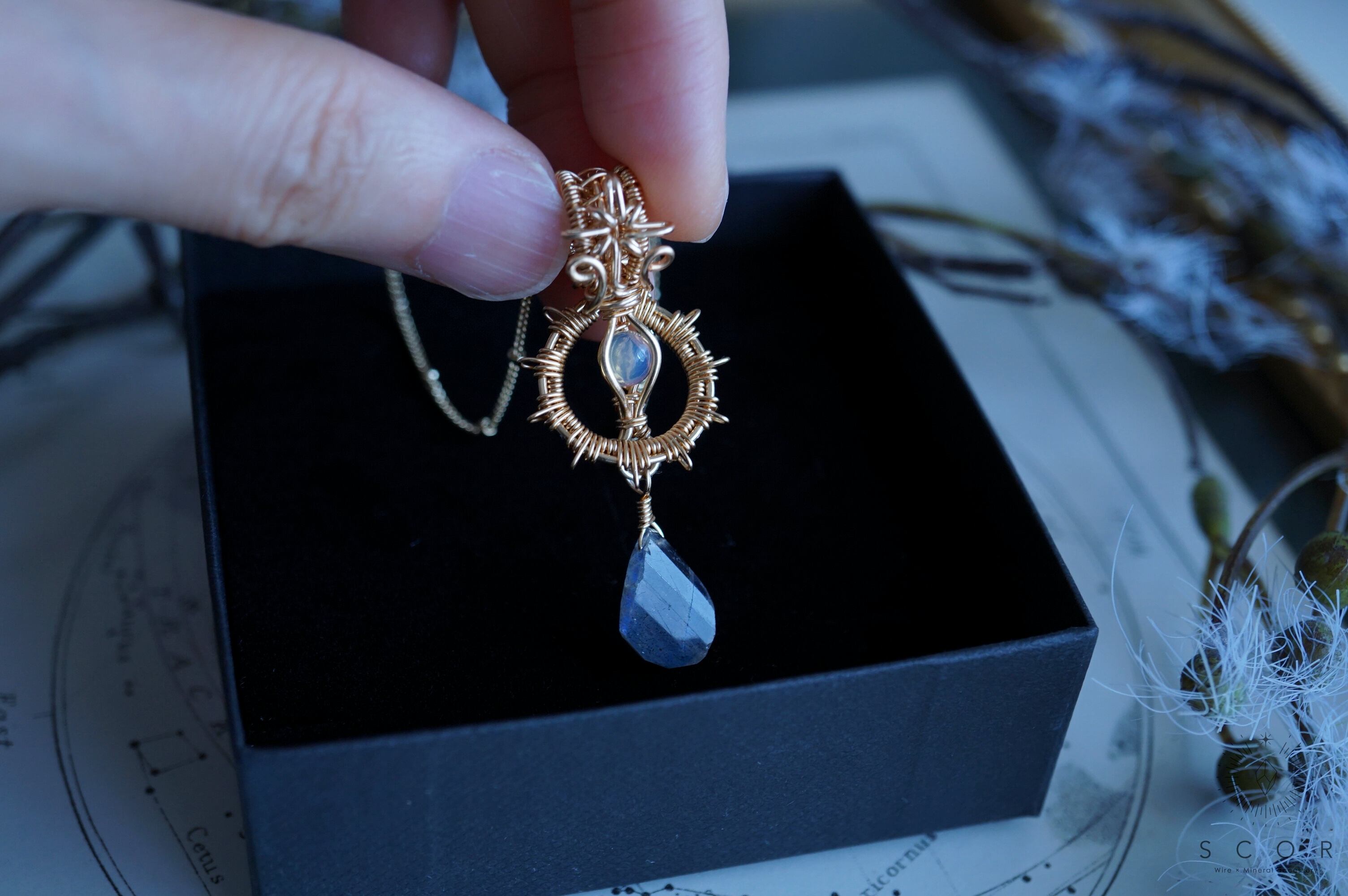 【動画あり】Two stars - 青影星と一等星 #1 (pt375-ro-g) (ラブラドライト・オパール ペンダントトップ)
