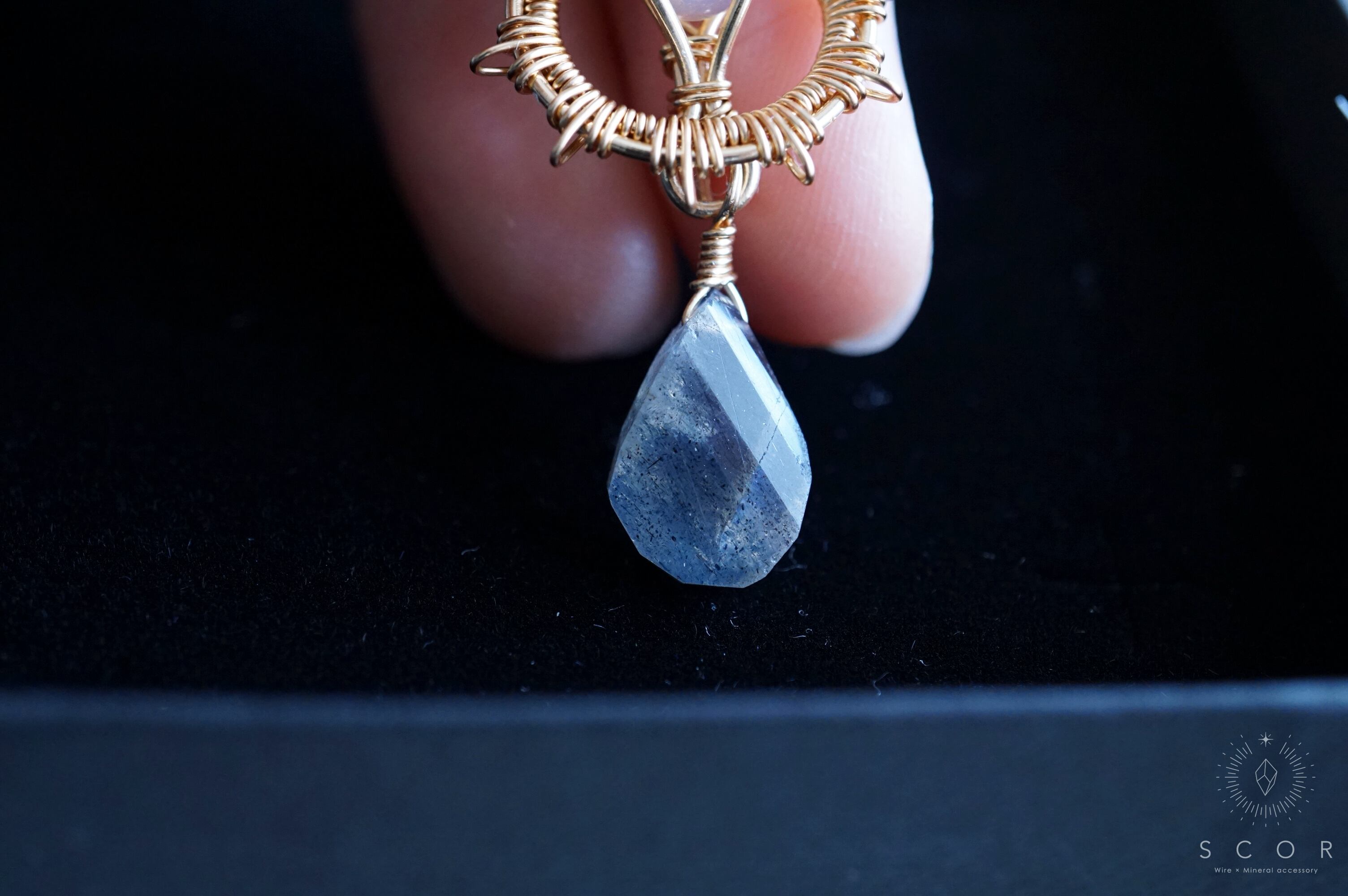 ラブラドライトは、厚みのあるペアシェイプのビーズを使用。