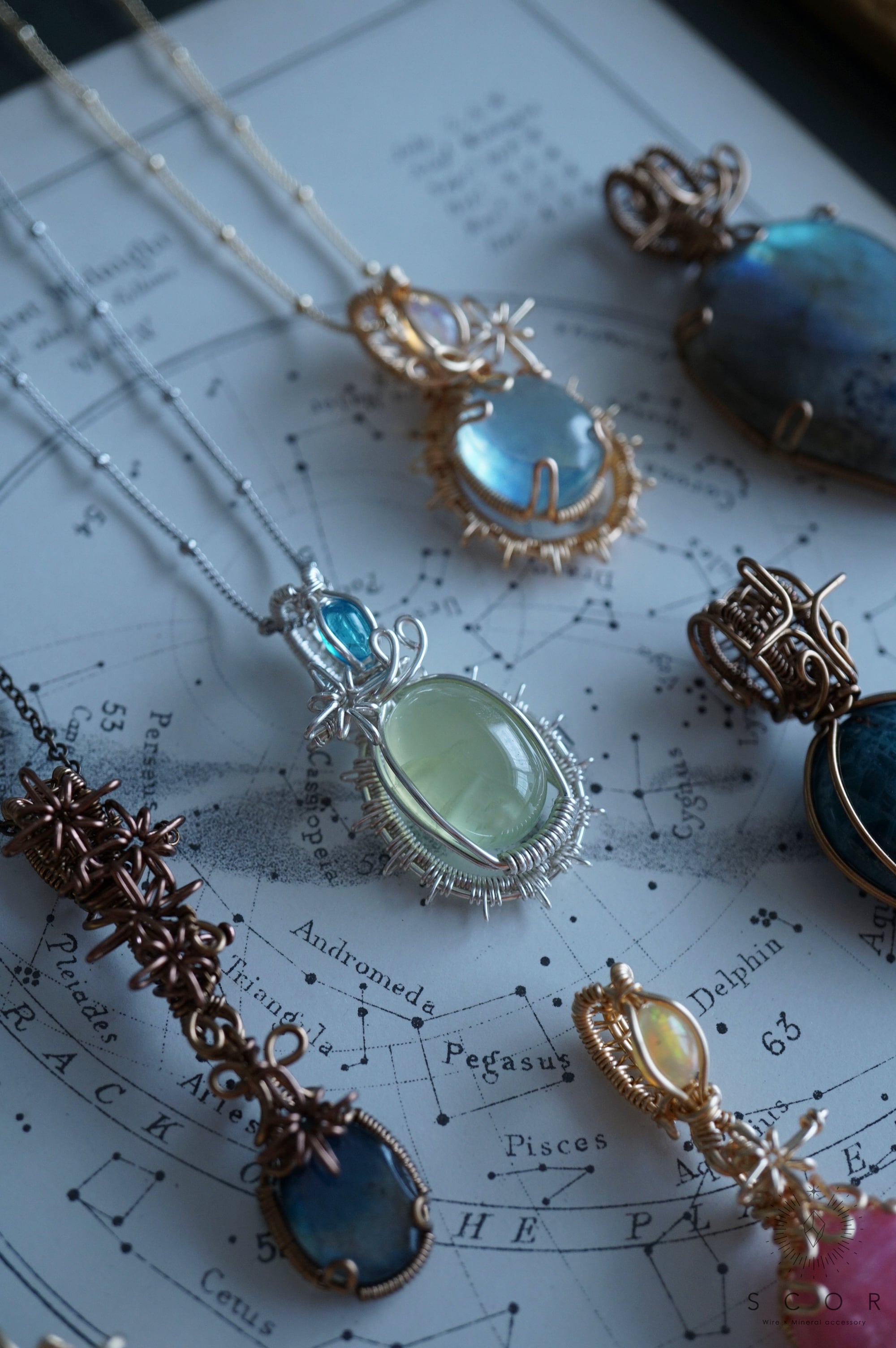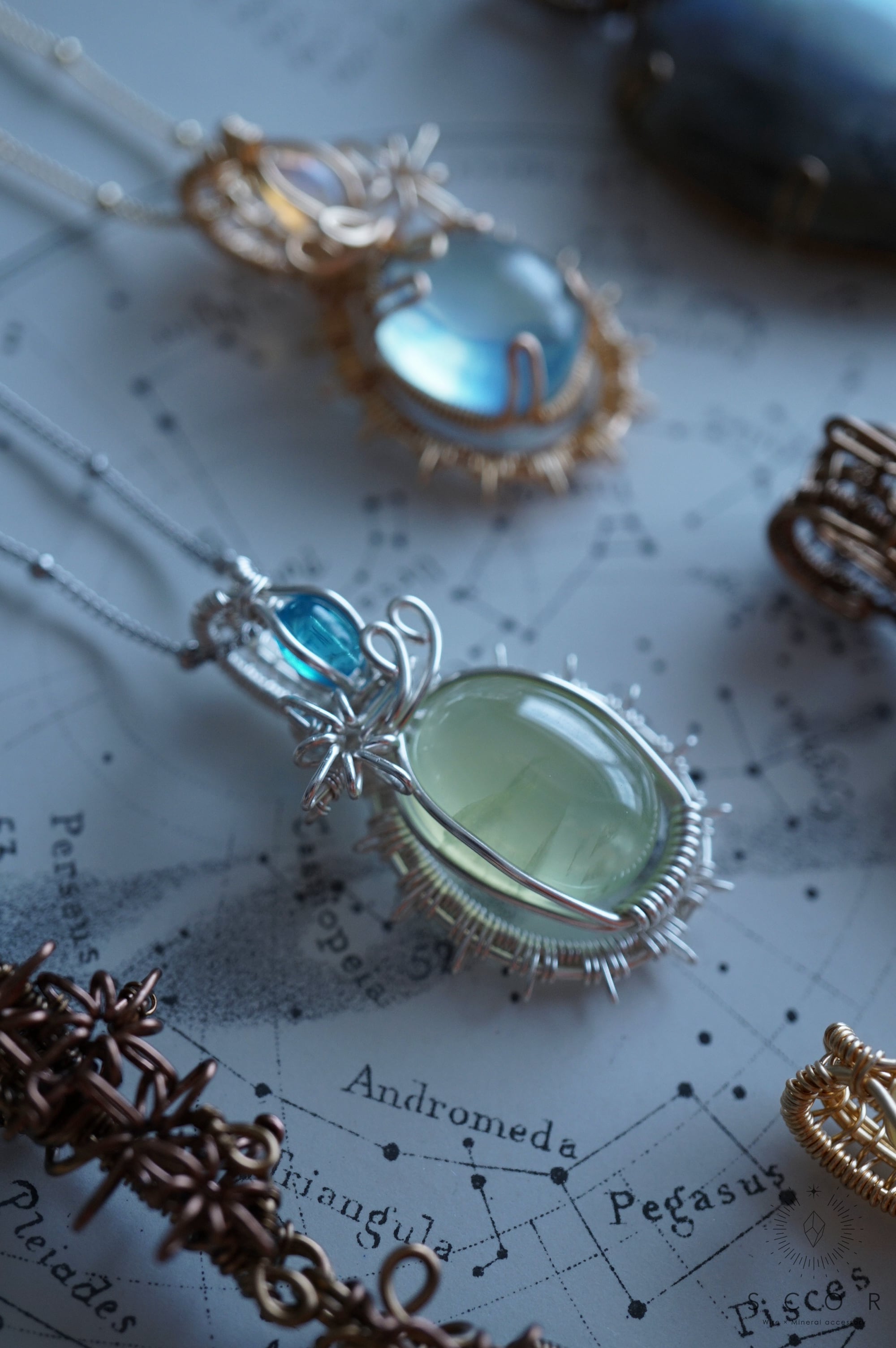 プレナイトの周囲に配置したワイヤーのモチーフは、星の放射光をイメージ。