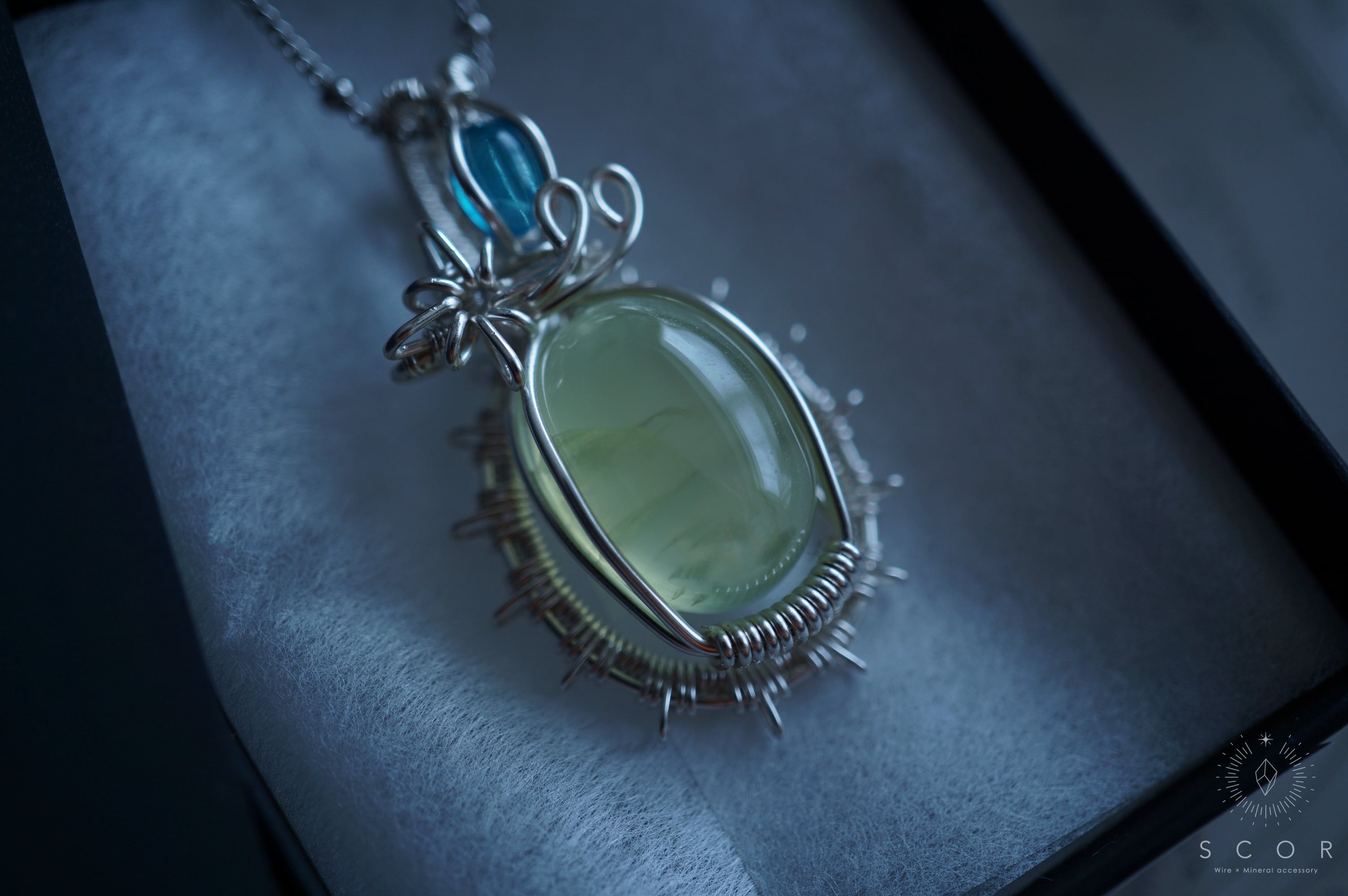 プレナイトとネオンブルーアパタイトを使ったペンダントトップです。