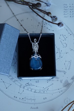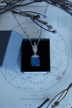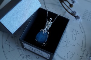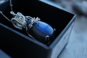 合わせる服の色を問わず、ラブラドライトの青い光沢が際立つコーディネイトが楽しめます。