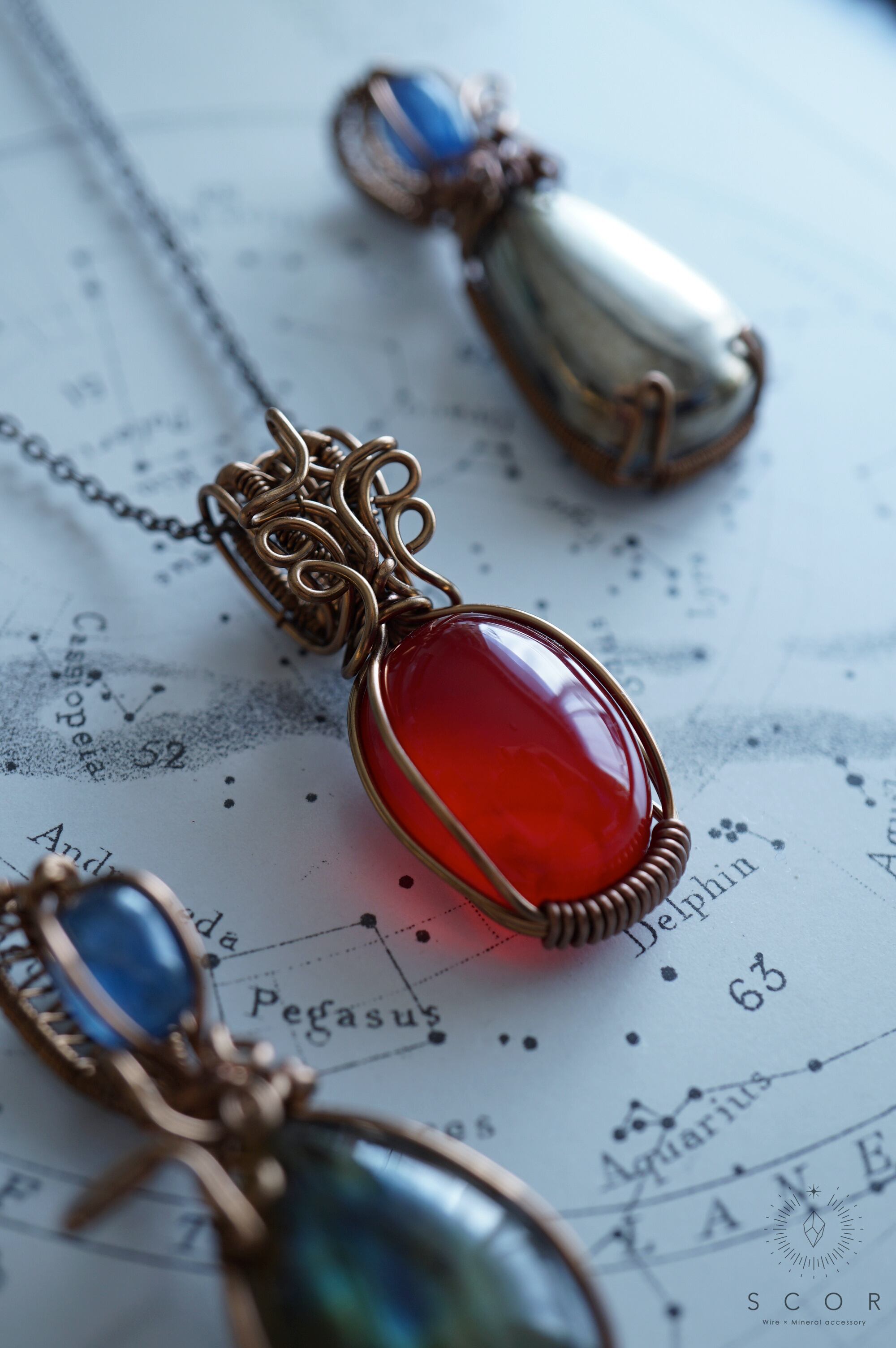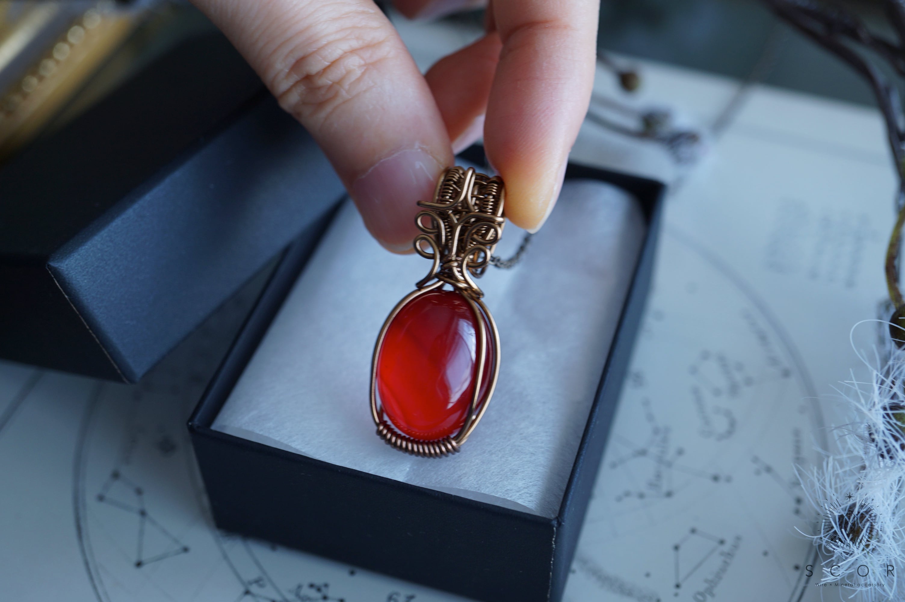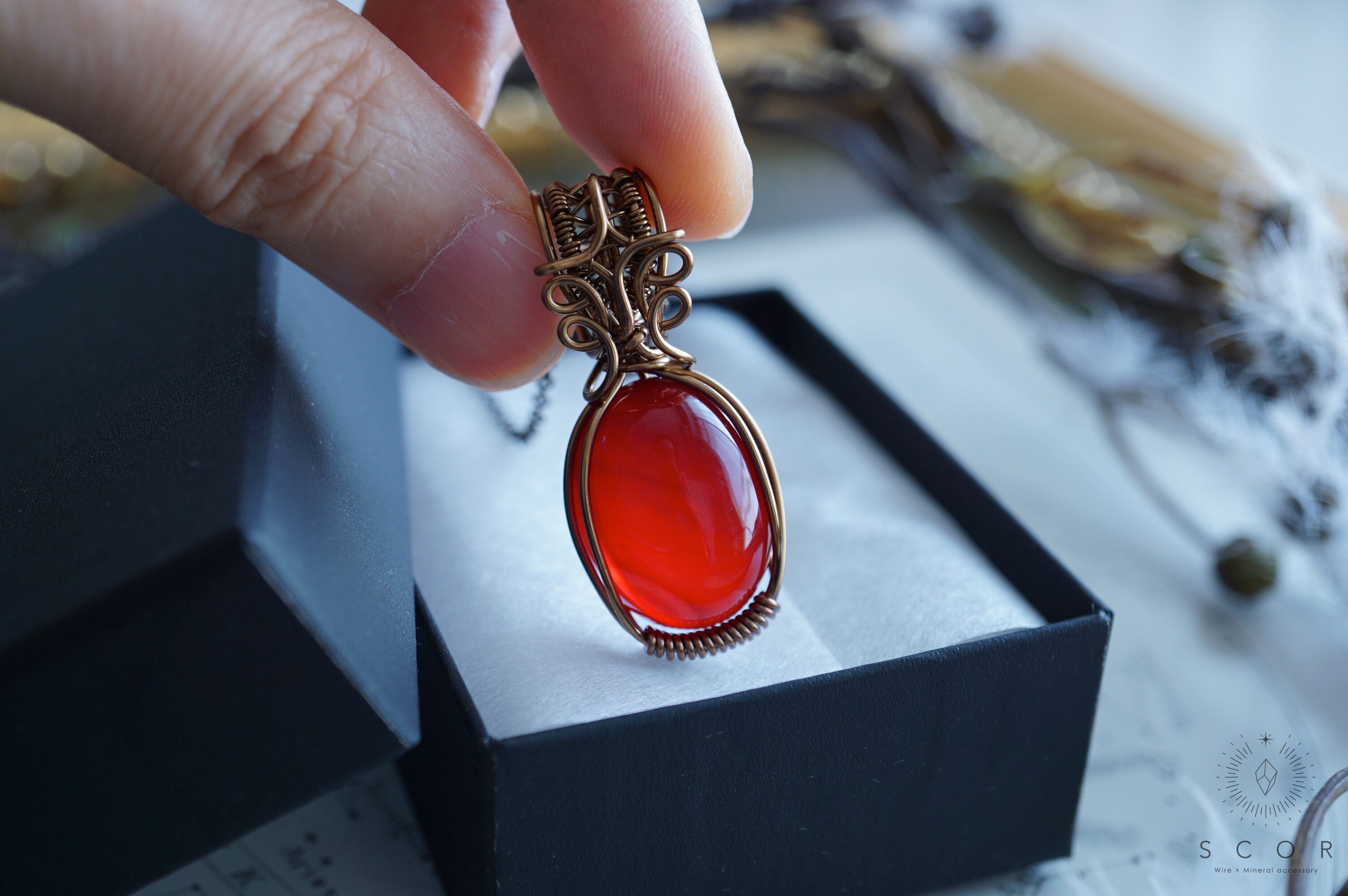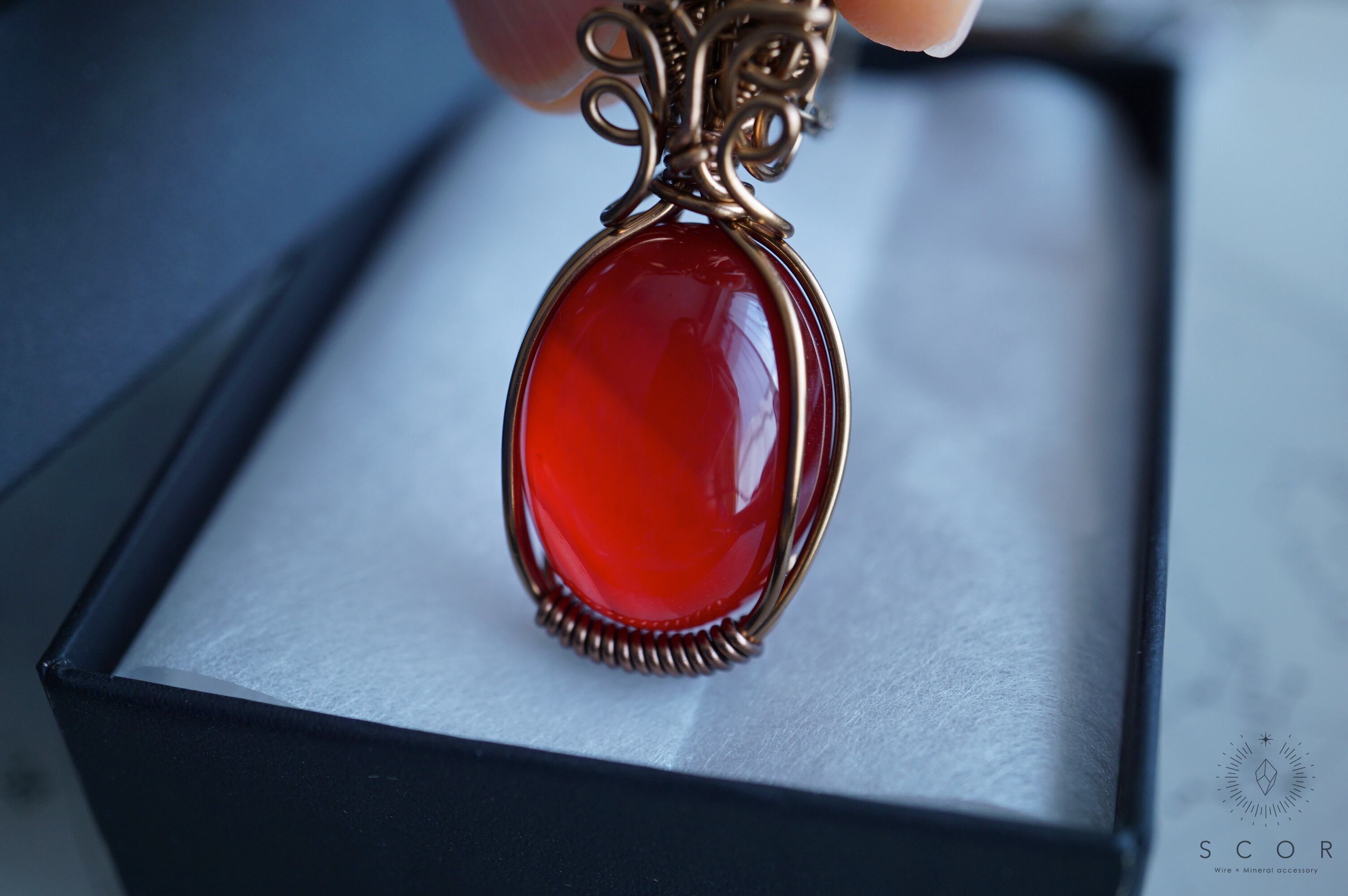 カーネリアンは、厚みのある楕円形のカボションを使用。