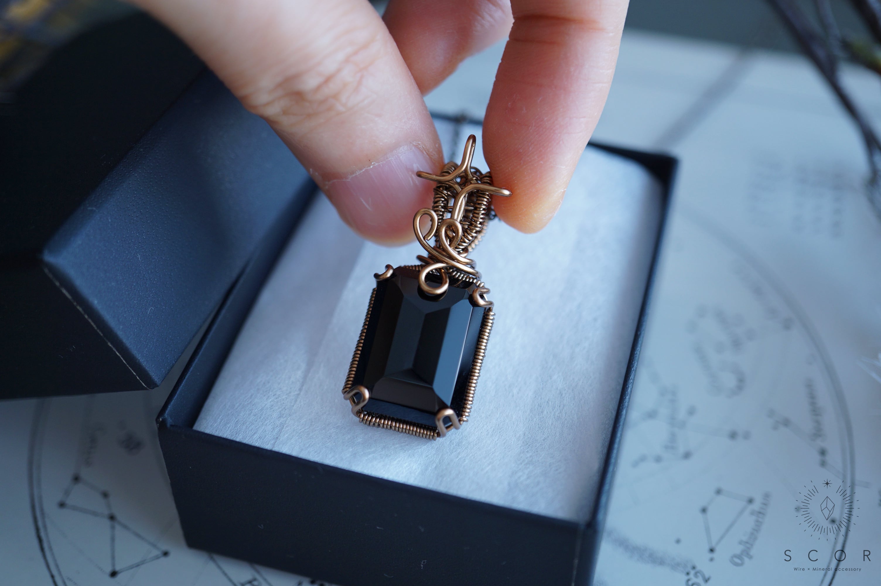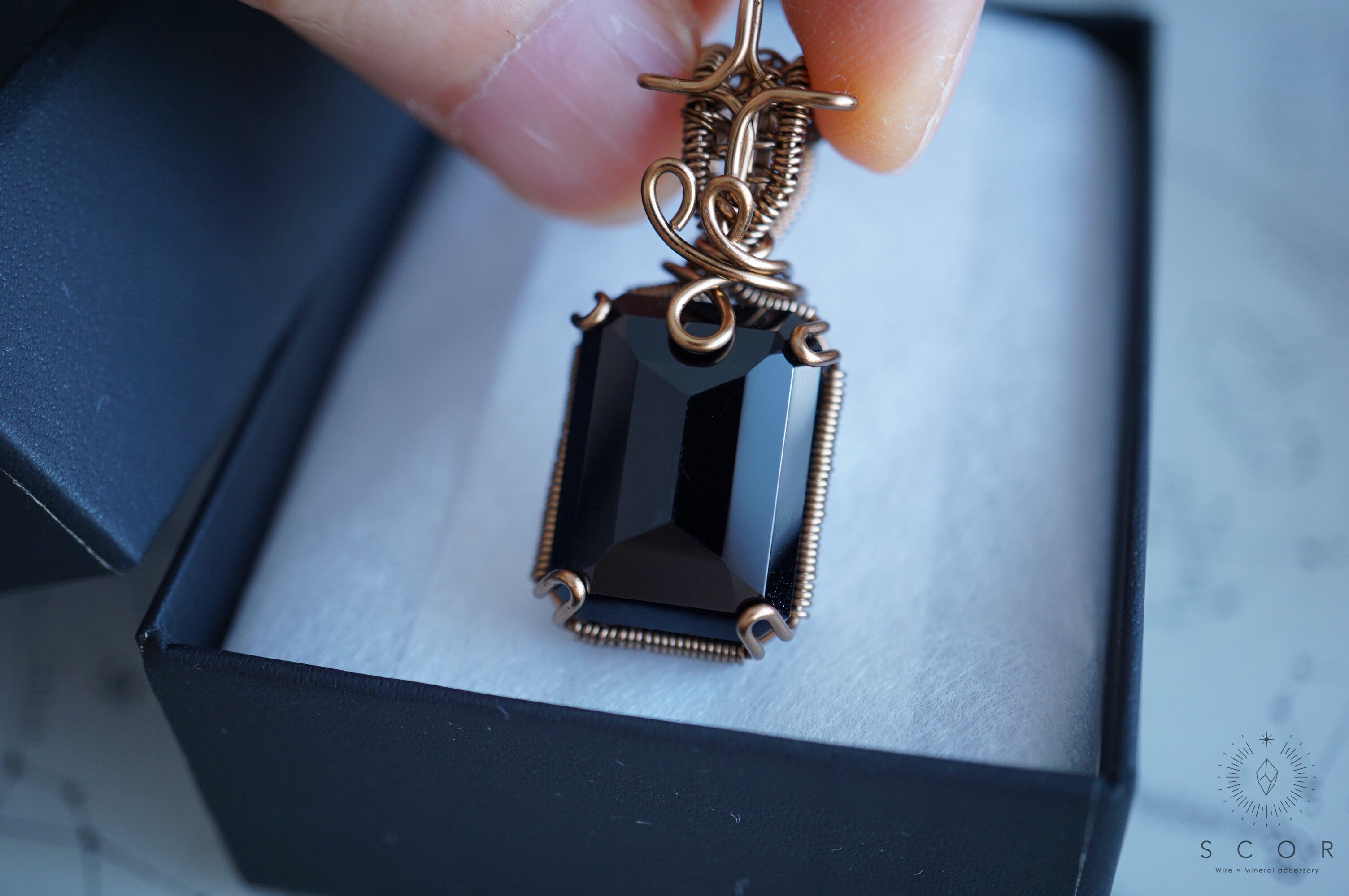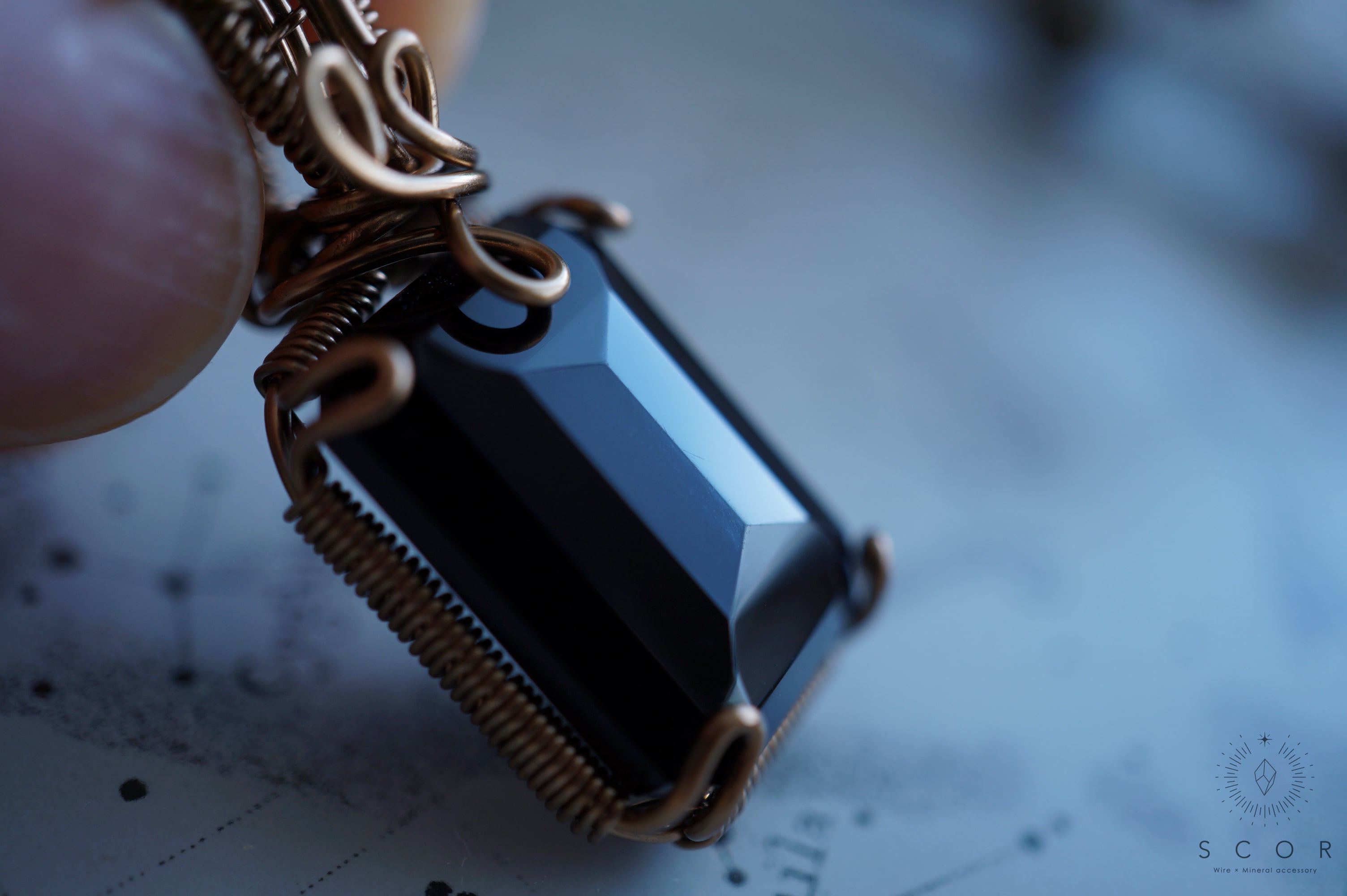 オニキスは、珍しいファセットカットの長方形のピースを使用。