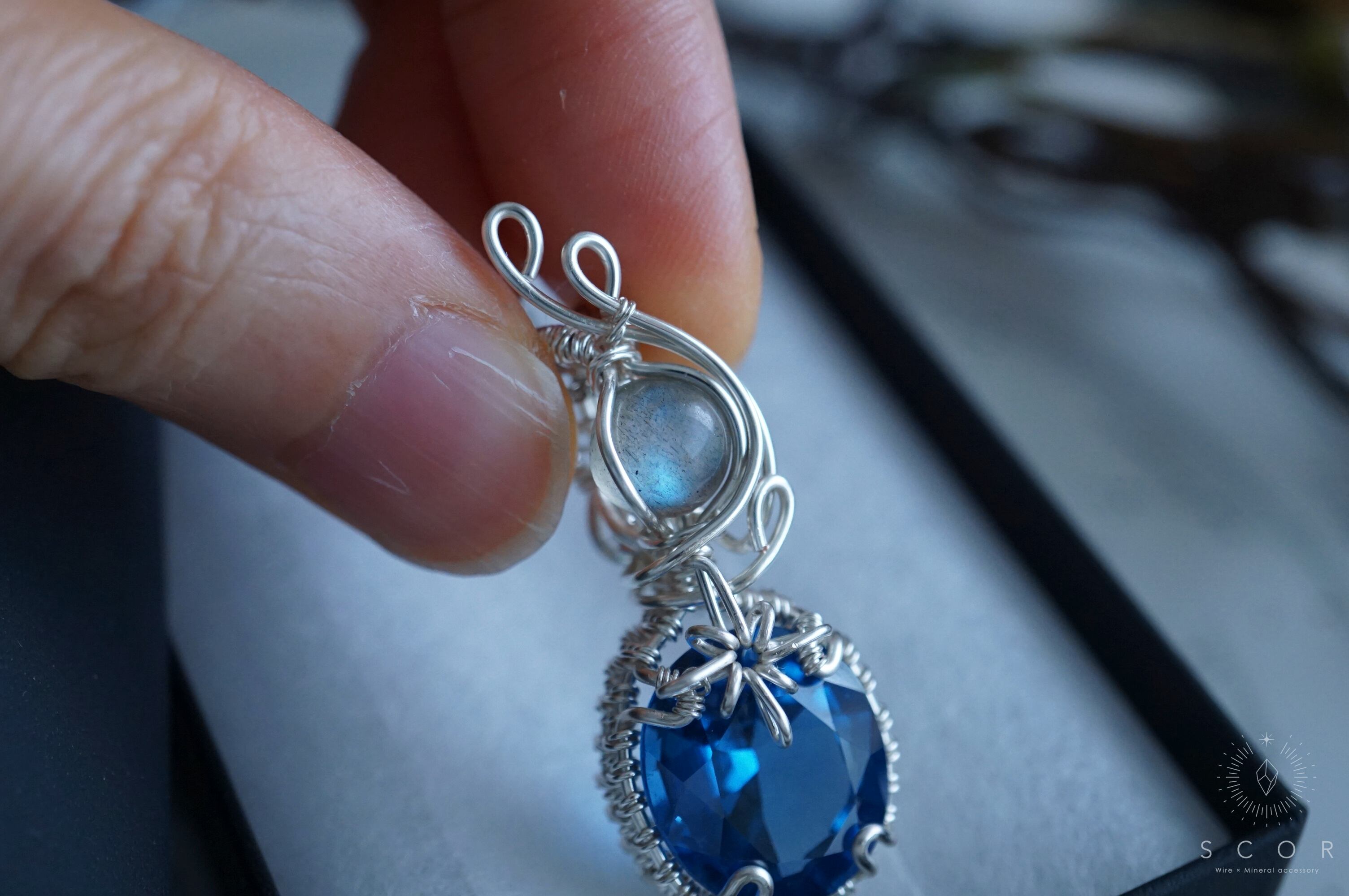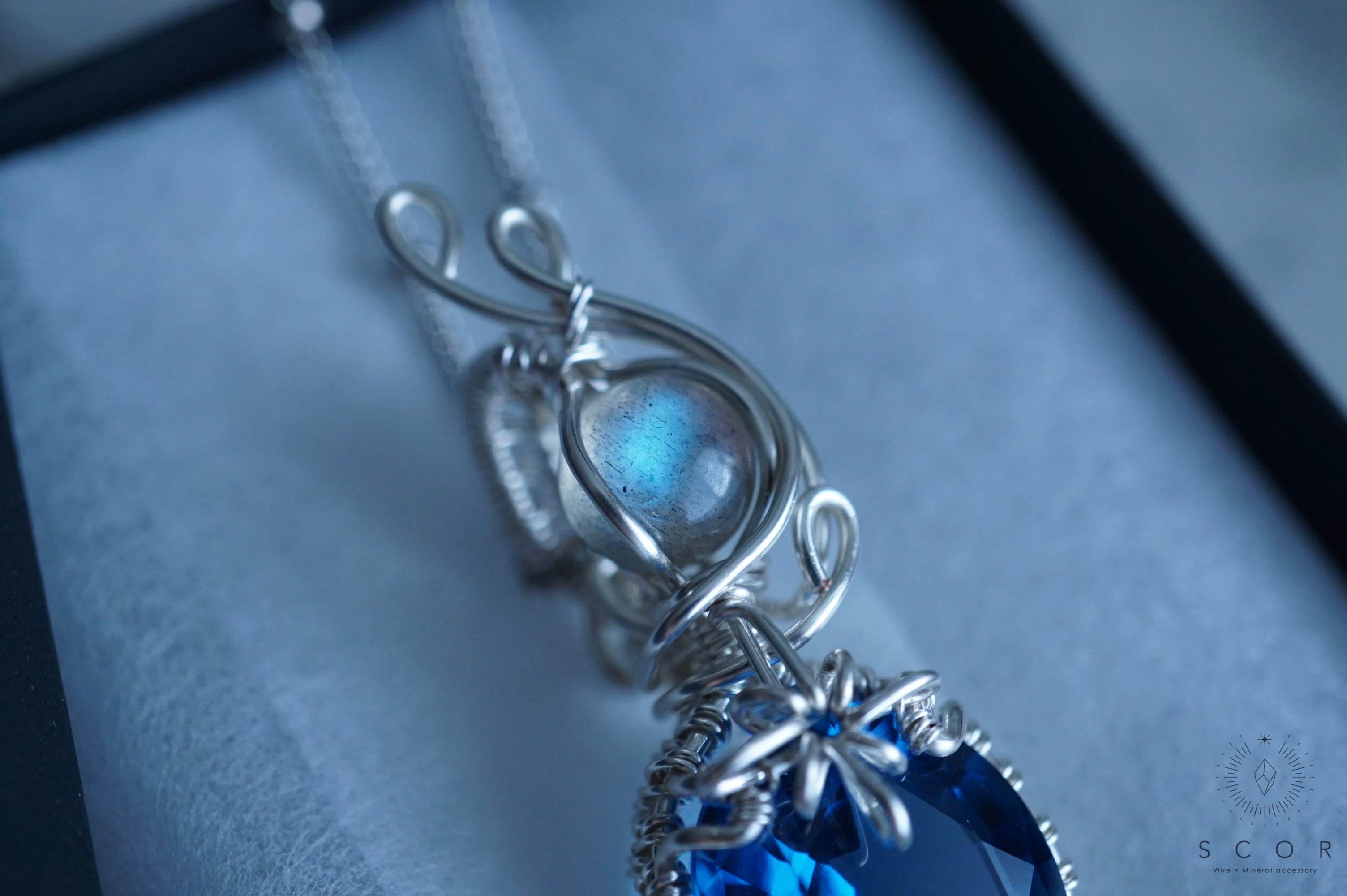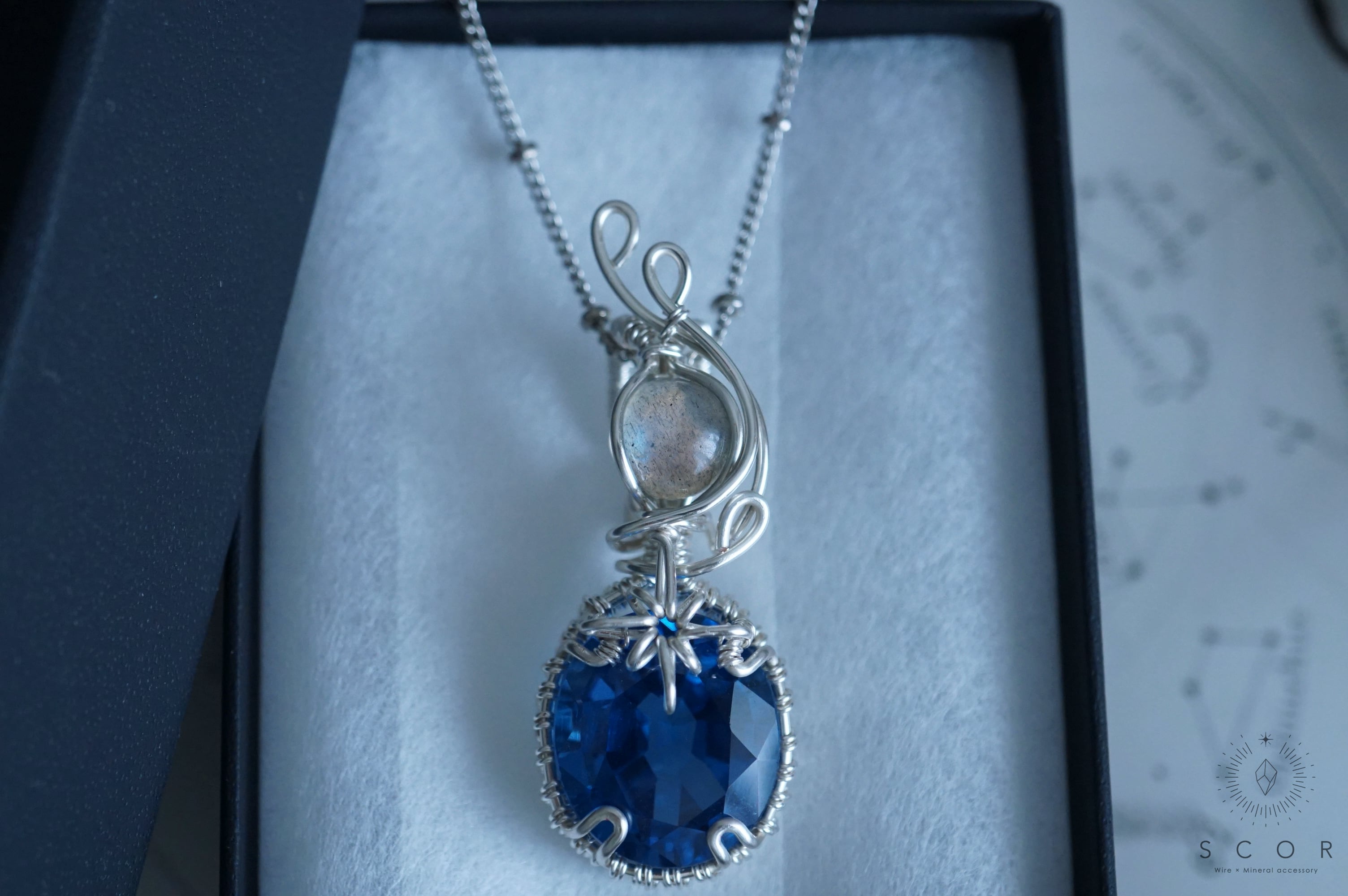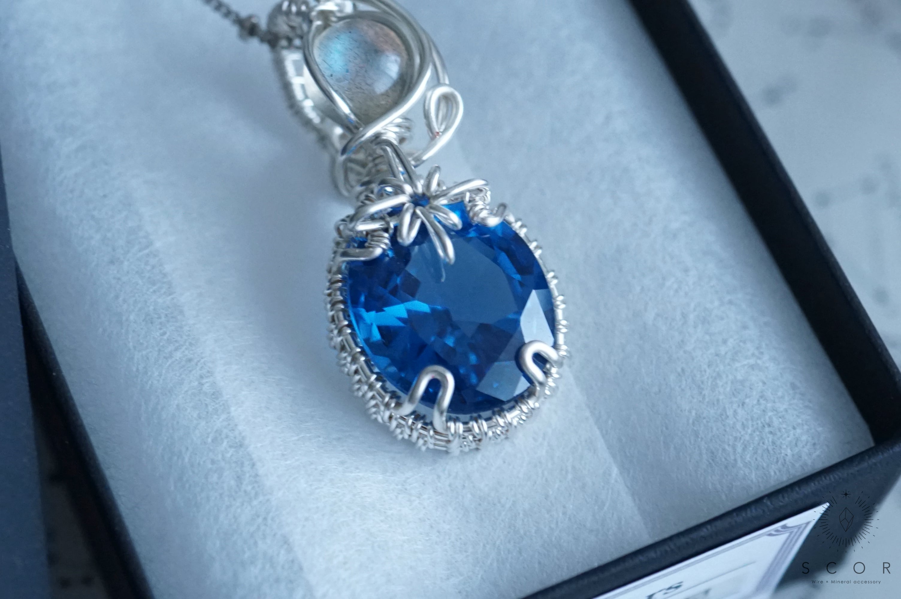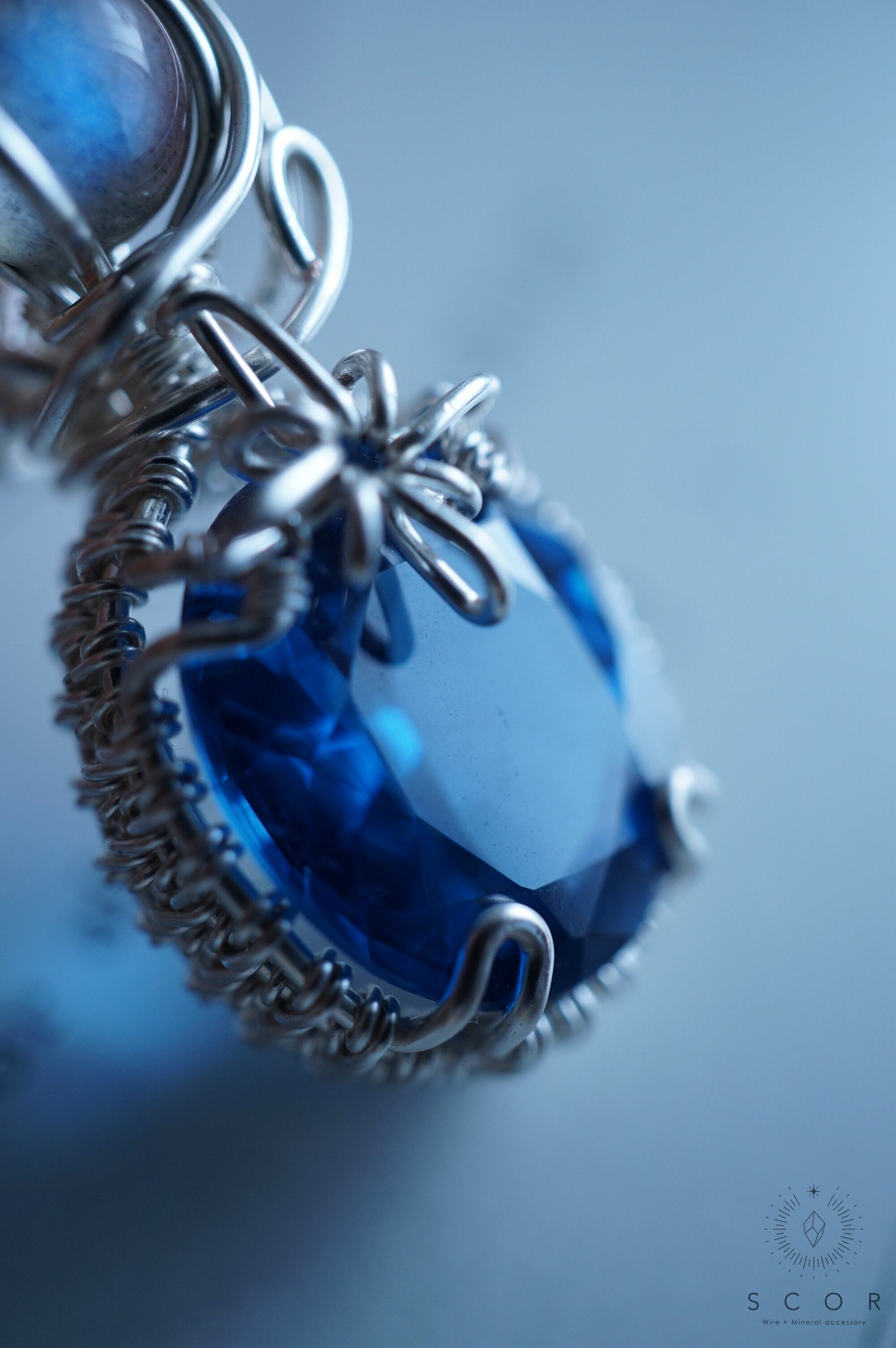 合成ブルースピネルとラブラドライトを使ったペンダントトップです。