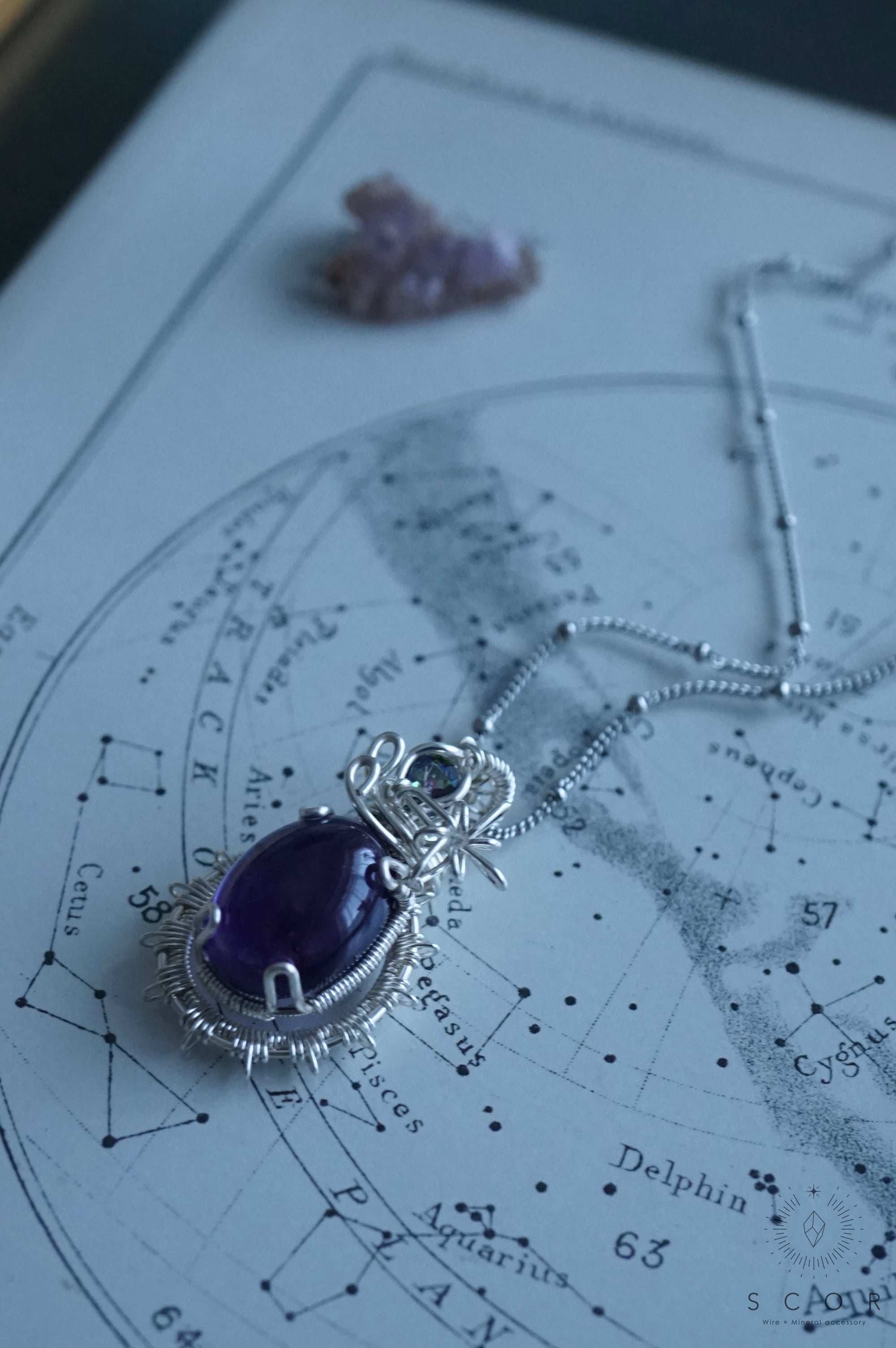【動画あり】Two stars - 紫星・紫緑星 (pt426-am-s)(アメジスト ミスティッククオーツ ペンダントトップ)