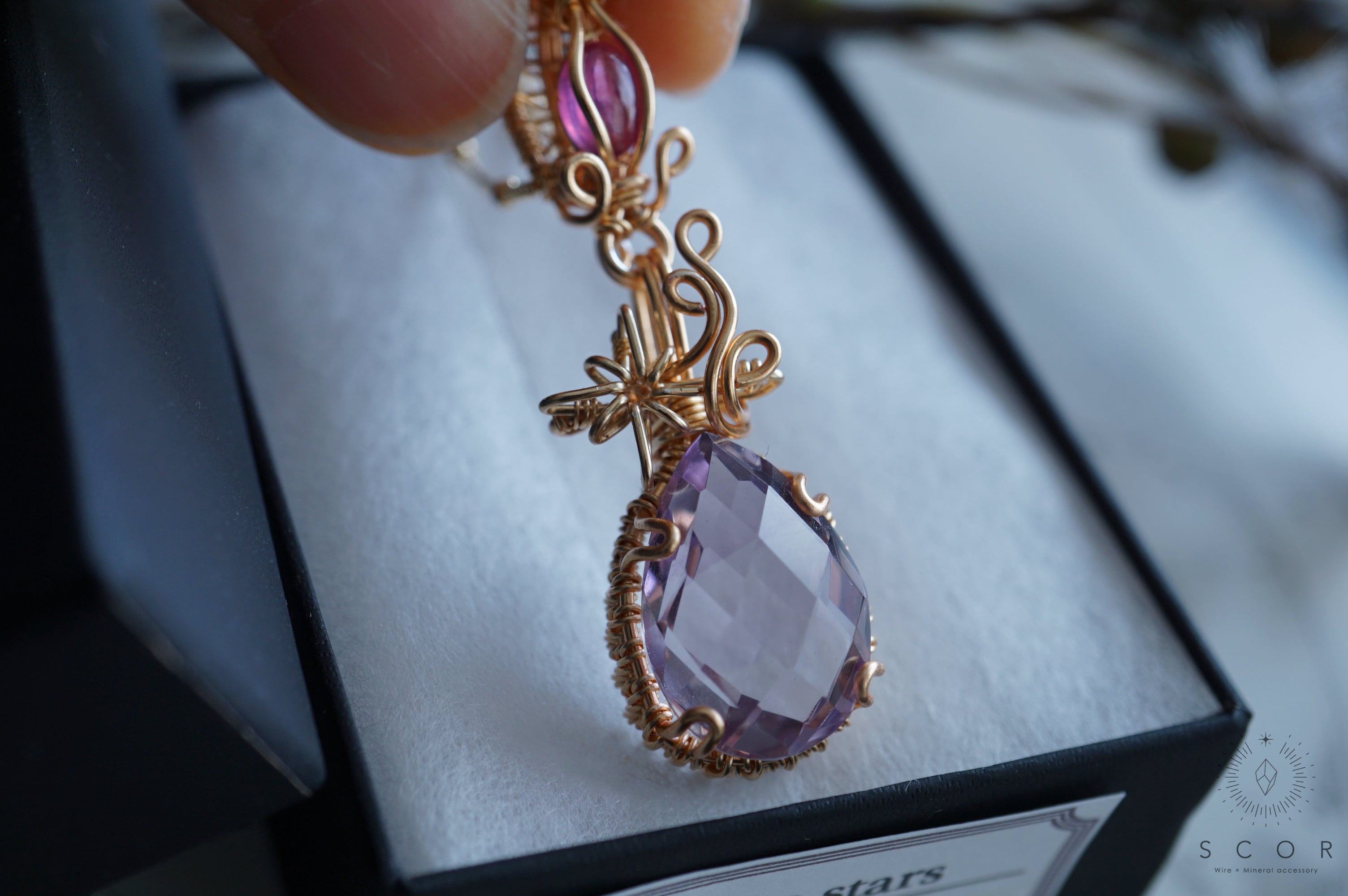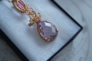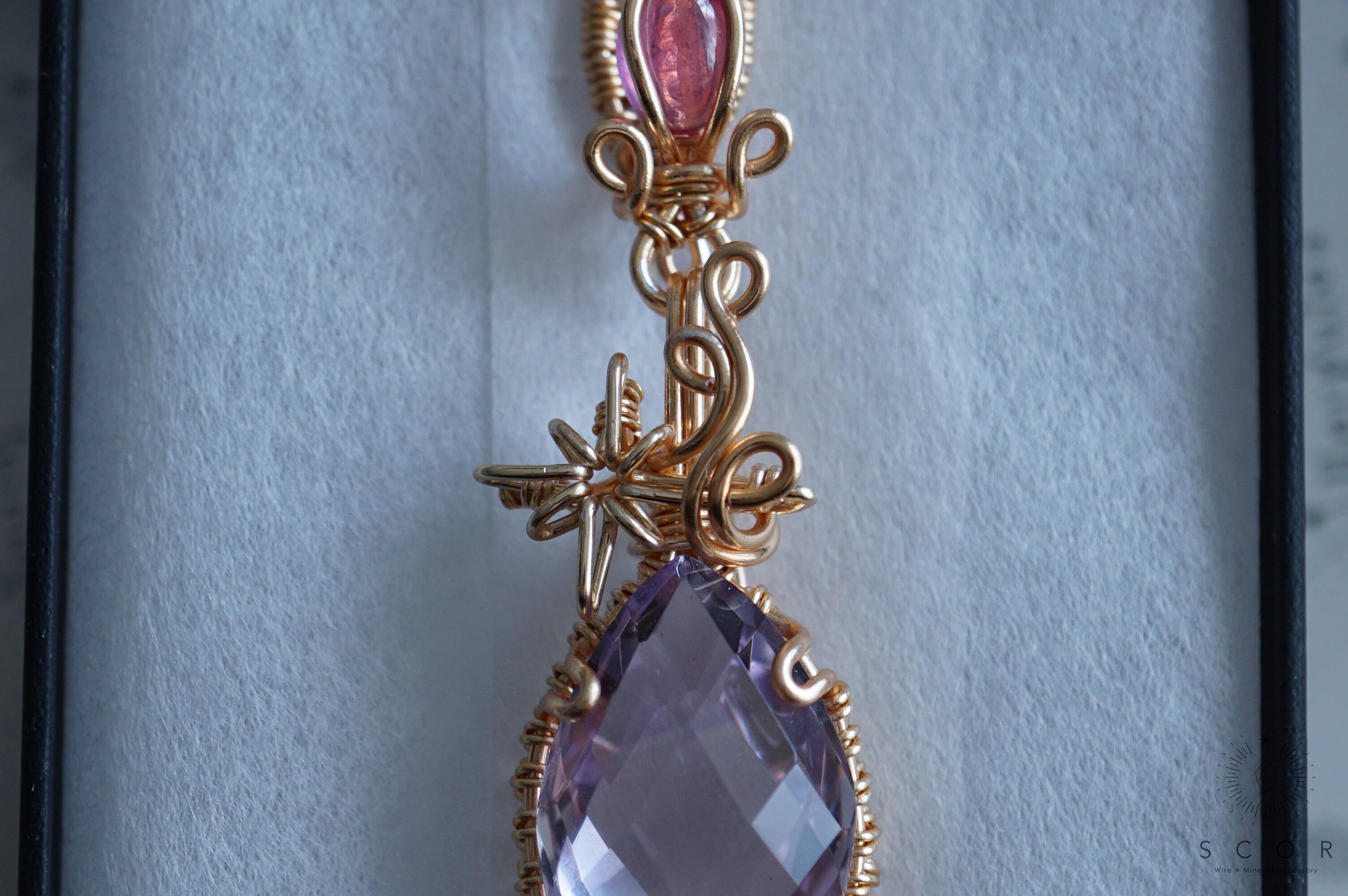 クオーツは、青みのあるピンクや淡い紫色に見える、透明度の高いピースを使用。