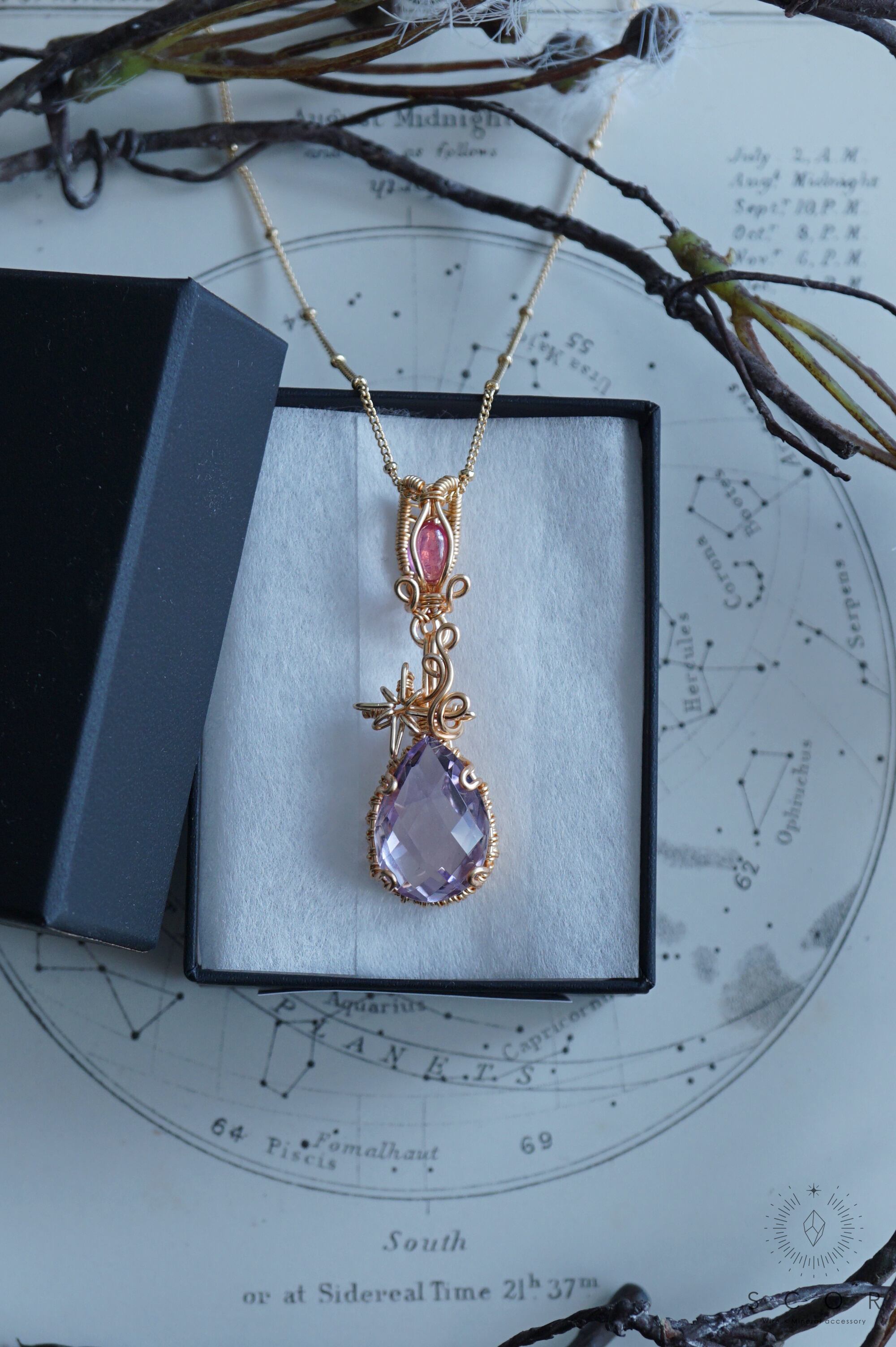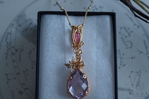 【動画あり】Two stars - 揺れる淡紫星と紅色衛星 (pt427-qr-g)(クオーツ・ルビー ペンダントトップ)