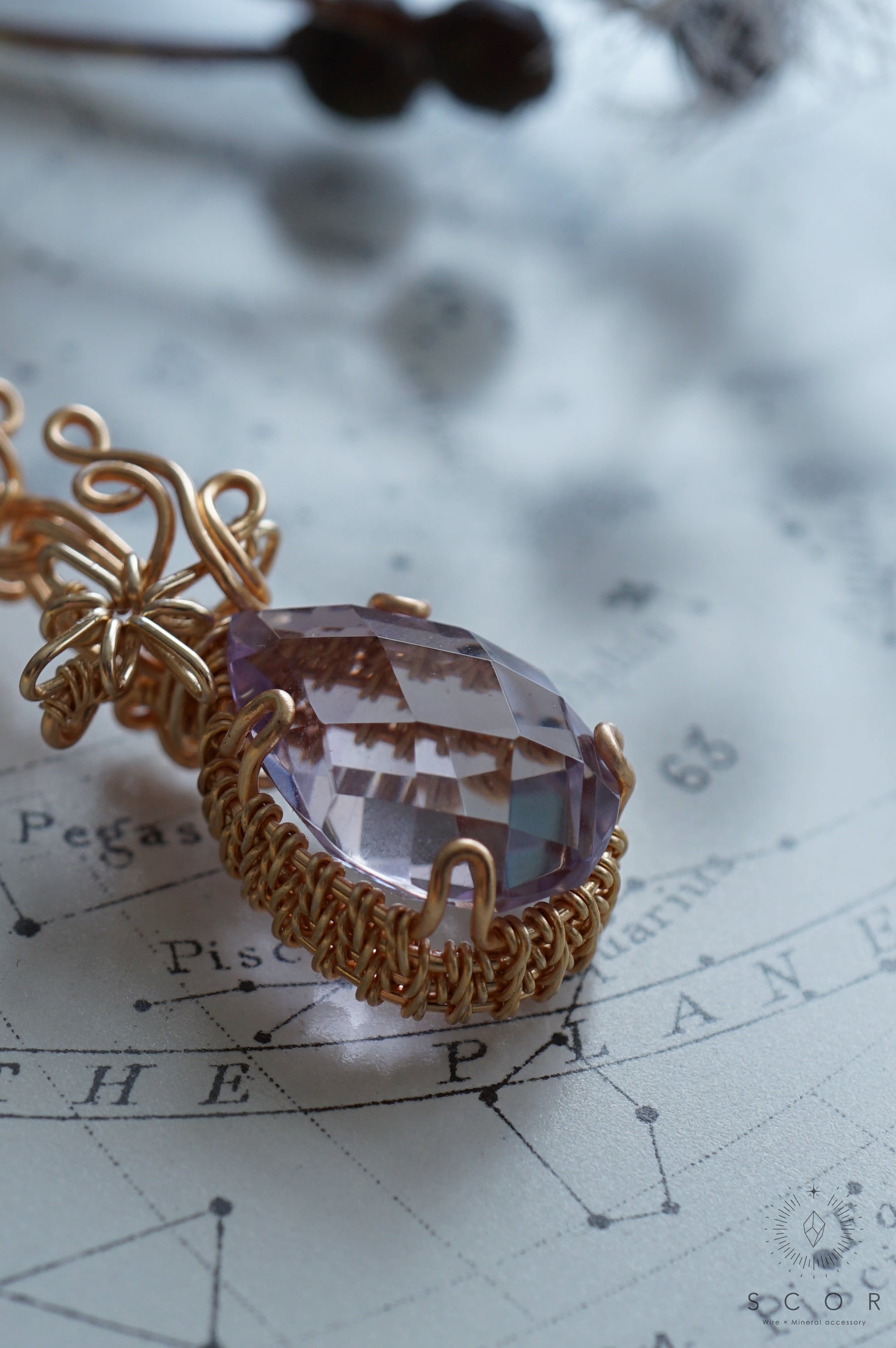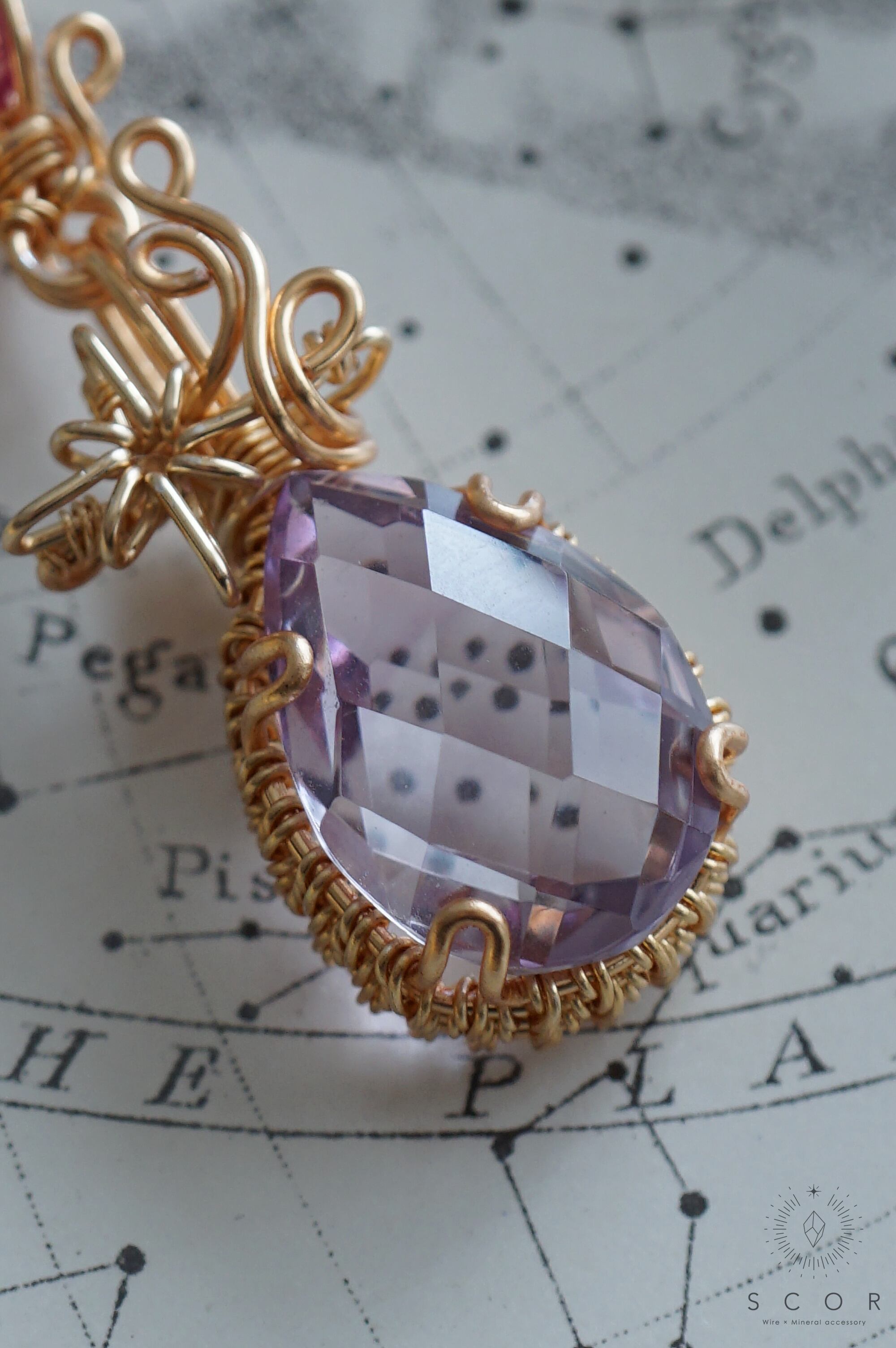 クオーツの上部には、流星をイメージした光芒型のワイヤーモチーフを配置。