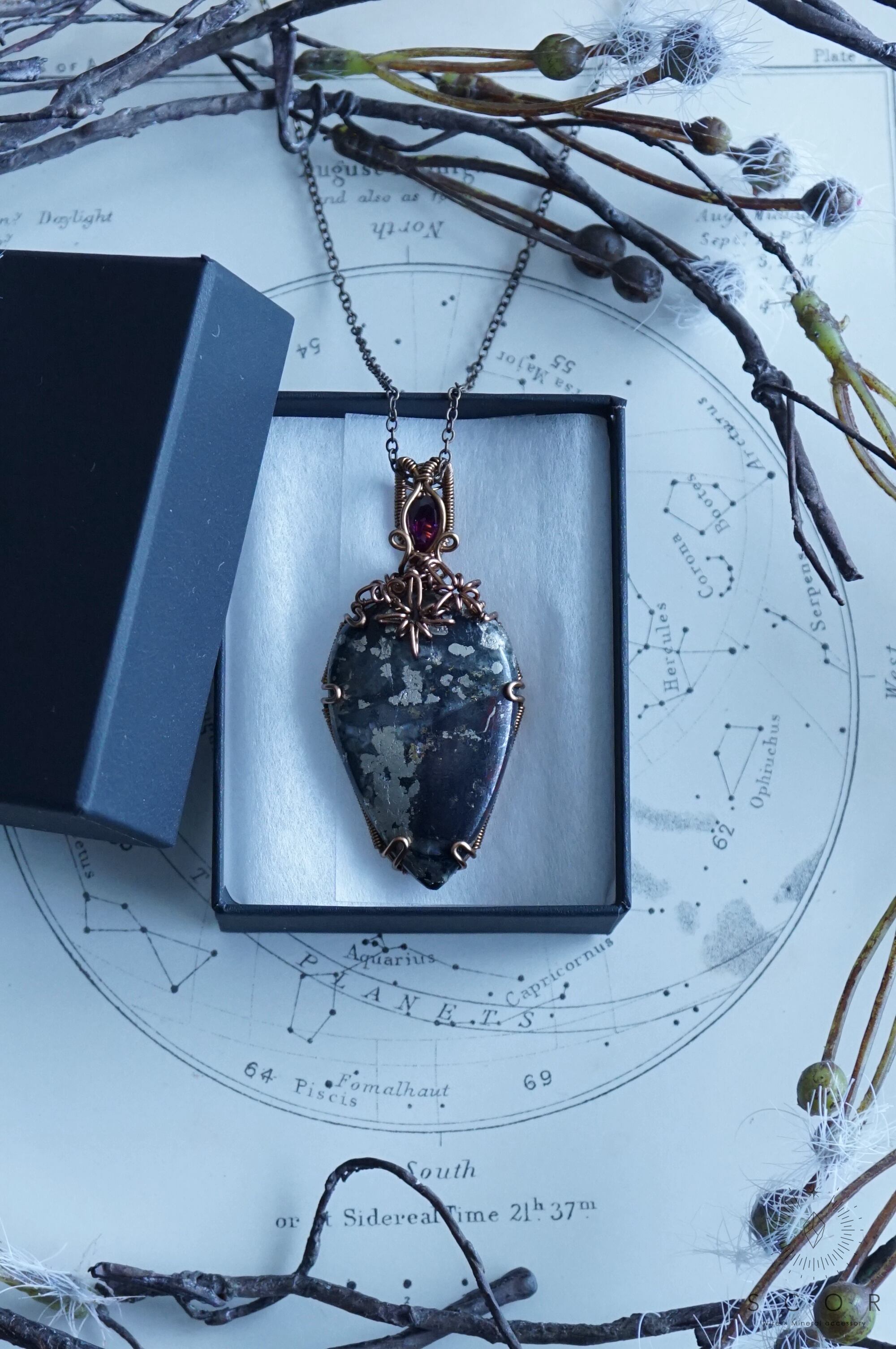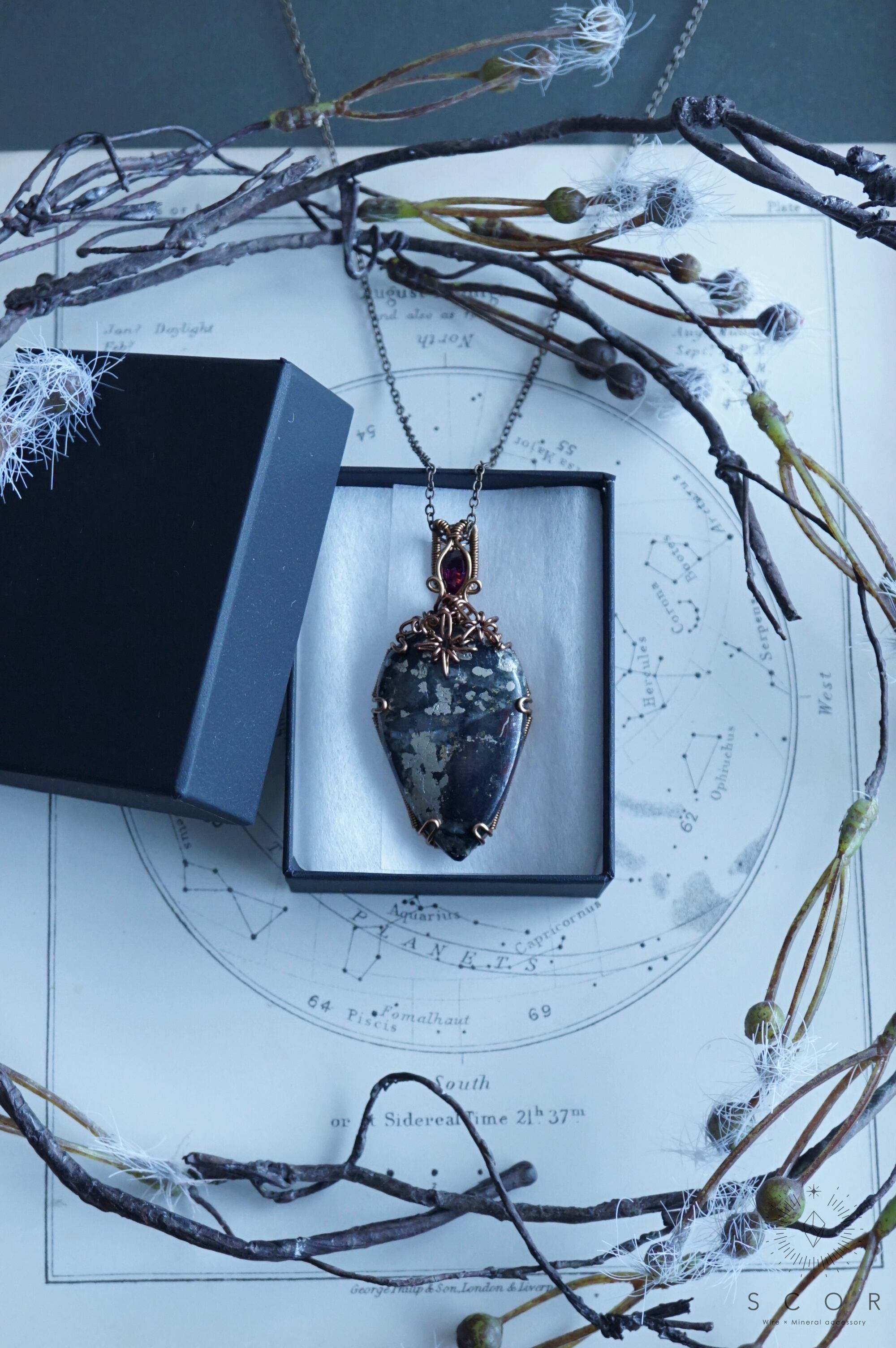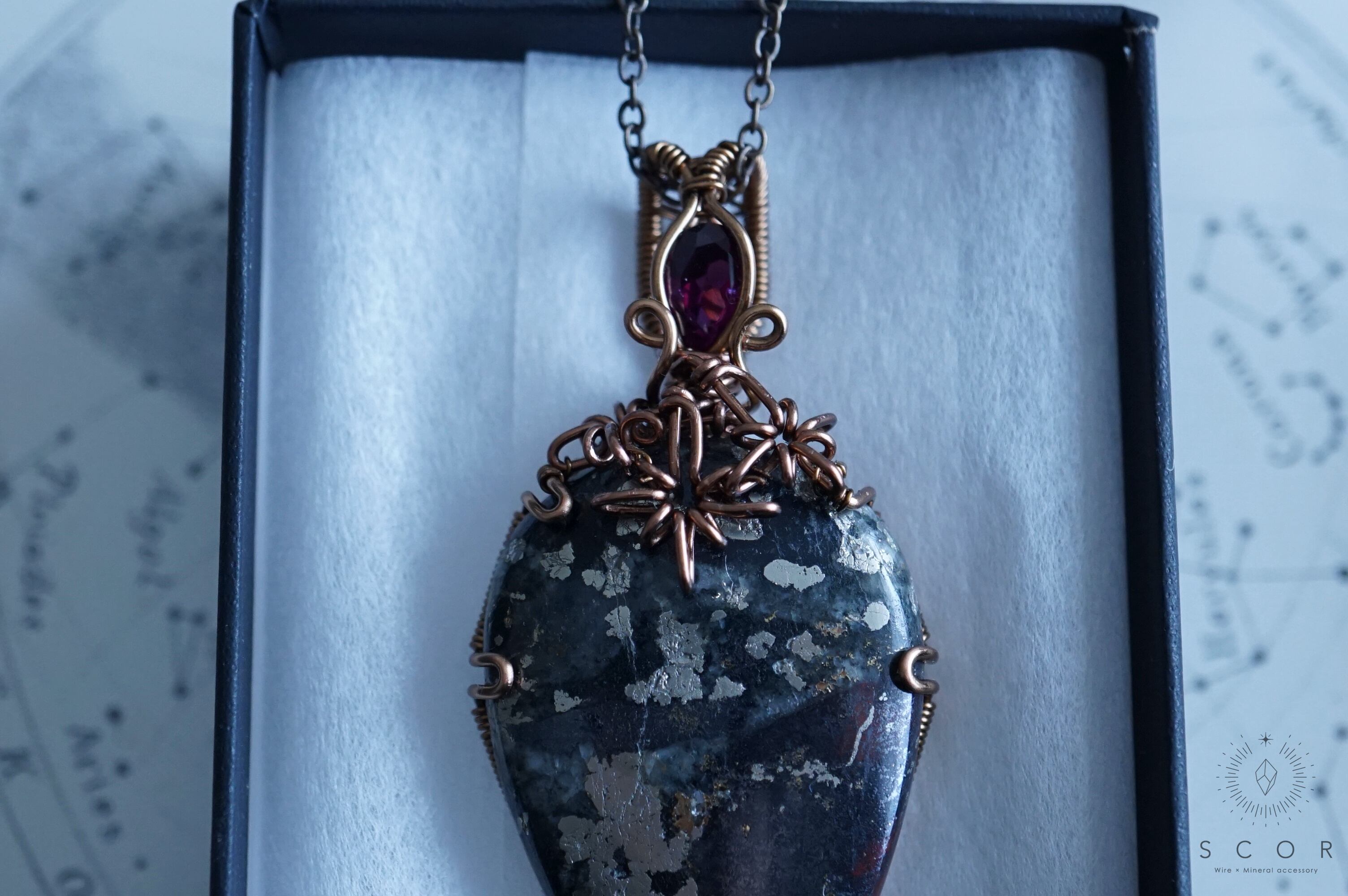 マトリックスパイライトとロードライトガーネットを使ったペンダントトップです。