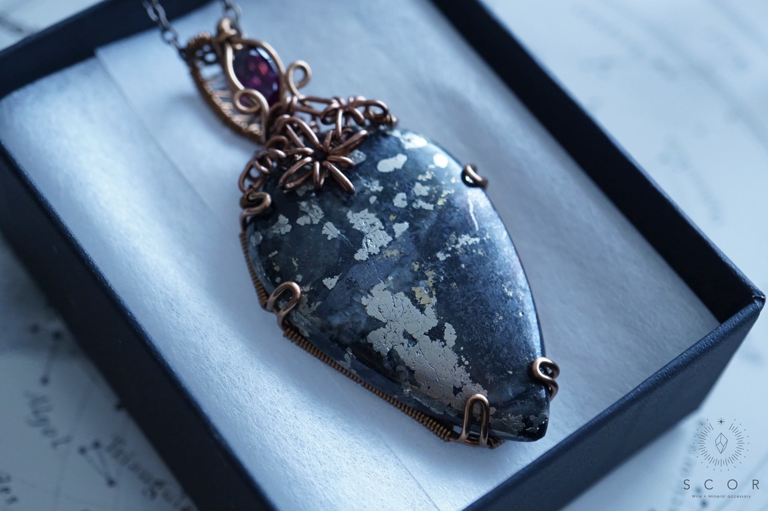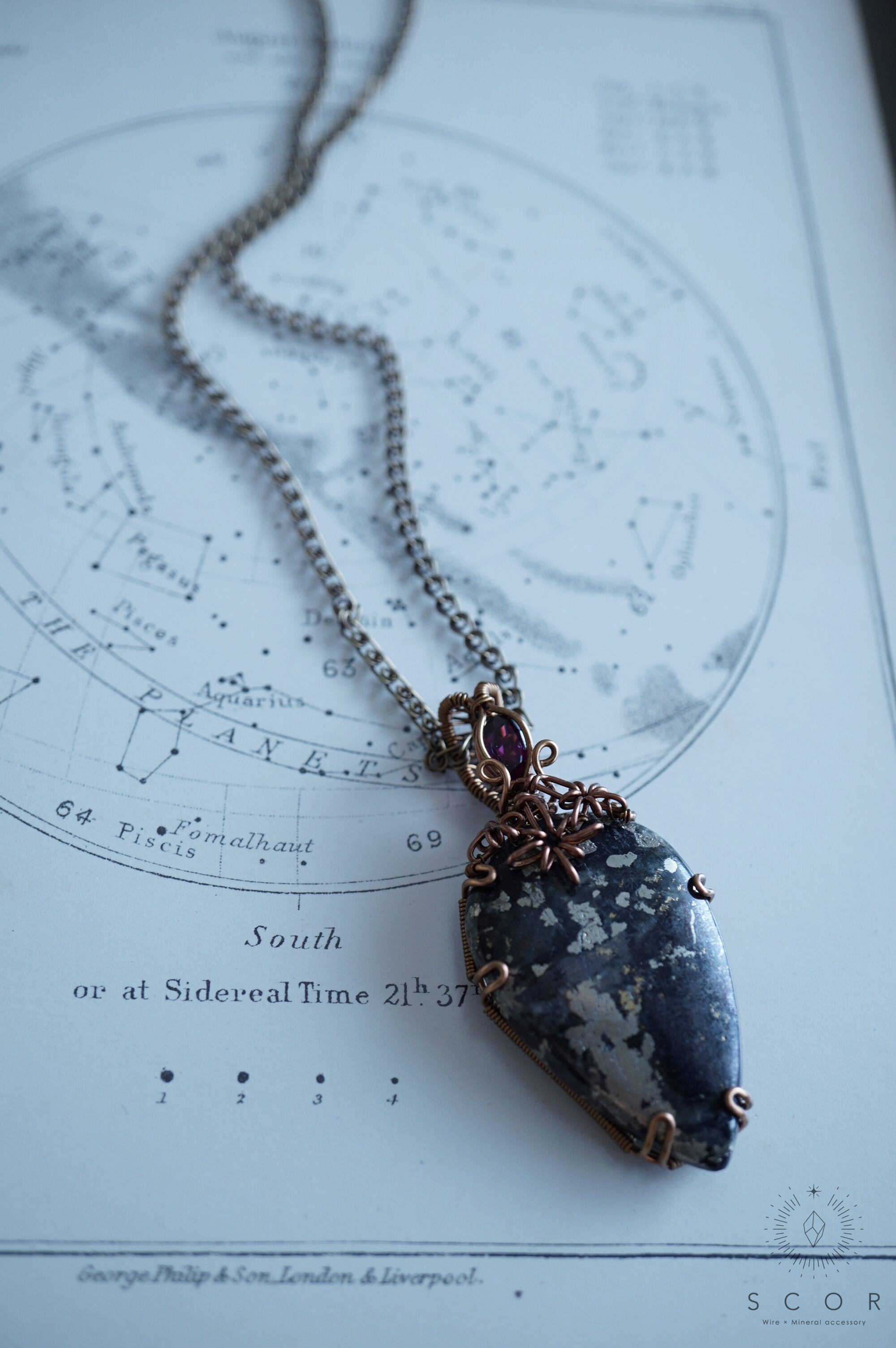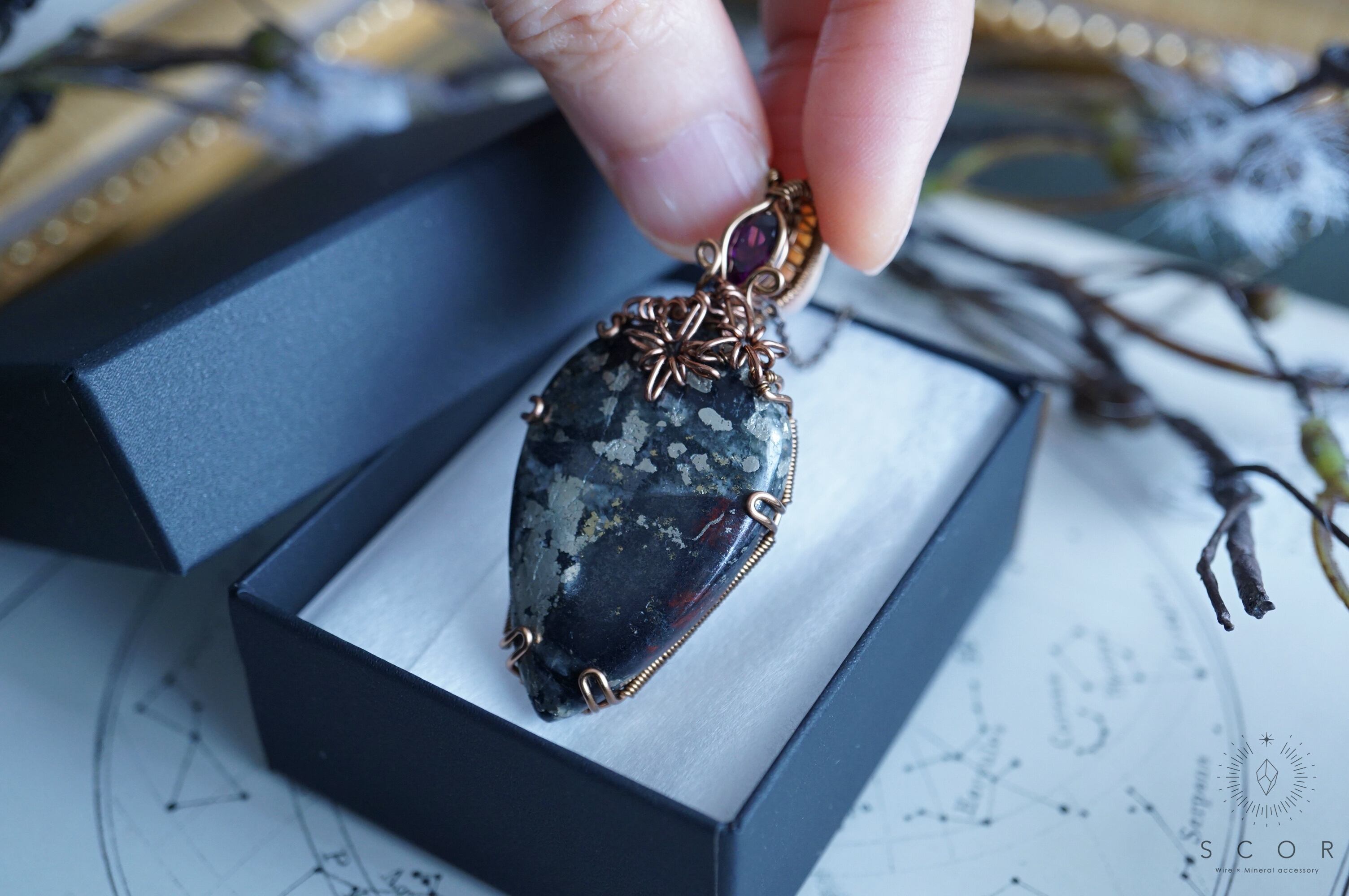 マトリックスパイライトとロードライトガーネットを使ったペンダントトップです。