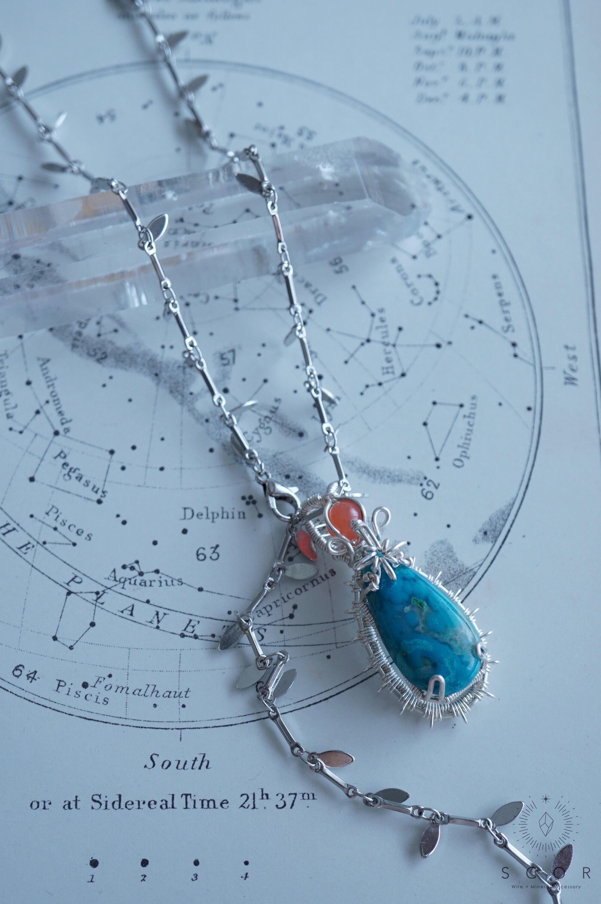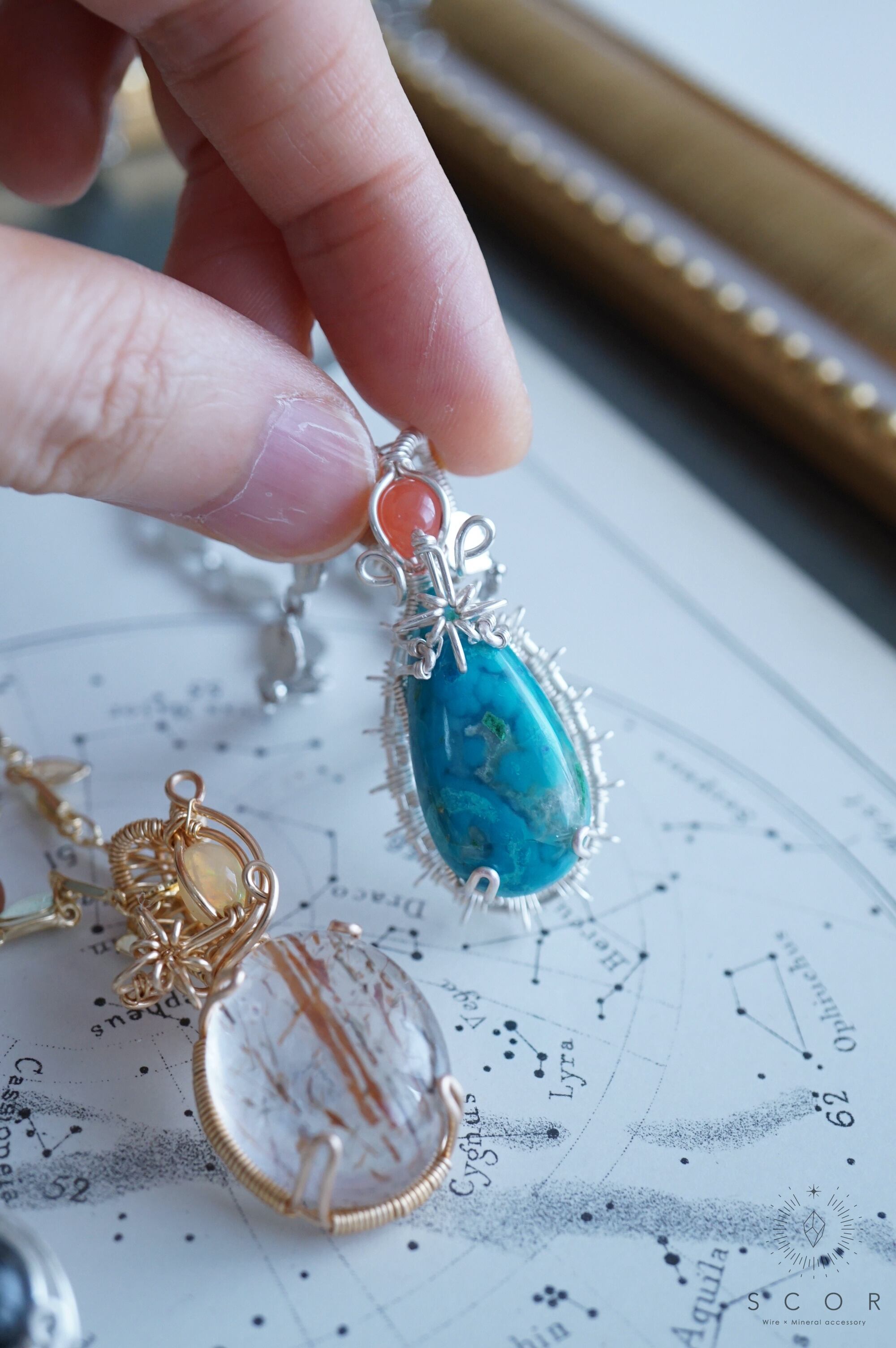 シャッタカイトinクオーツの周りには、星の放射光をイメージしたワイヤー装飾を添え、力強く光を放つ恒星を表現しています。