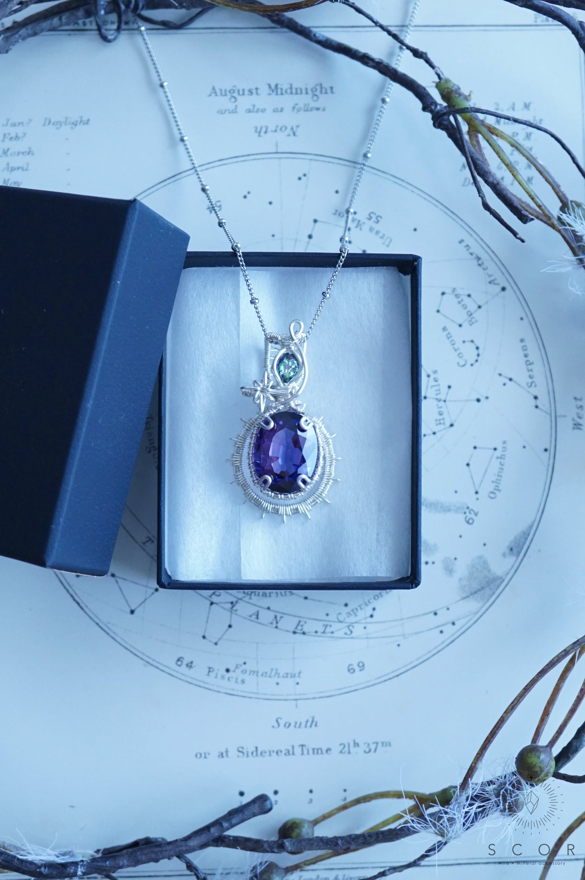 合成コランダム(合成パープルサファイア)とミスティッククオーツを使ったペンダントトップです。