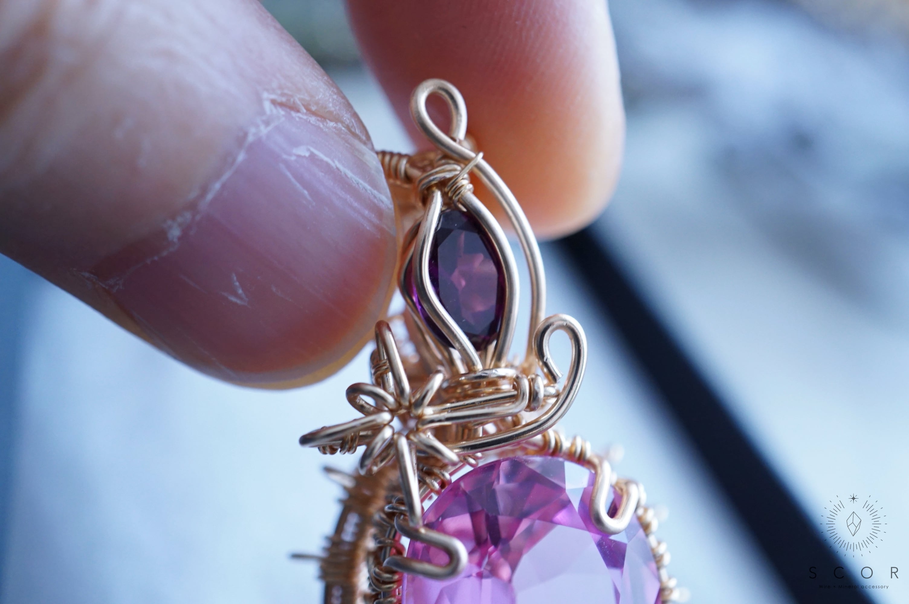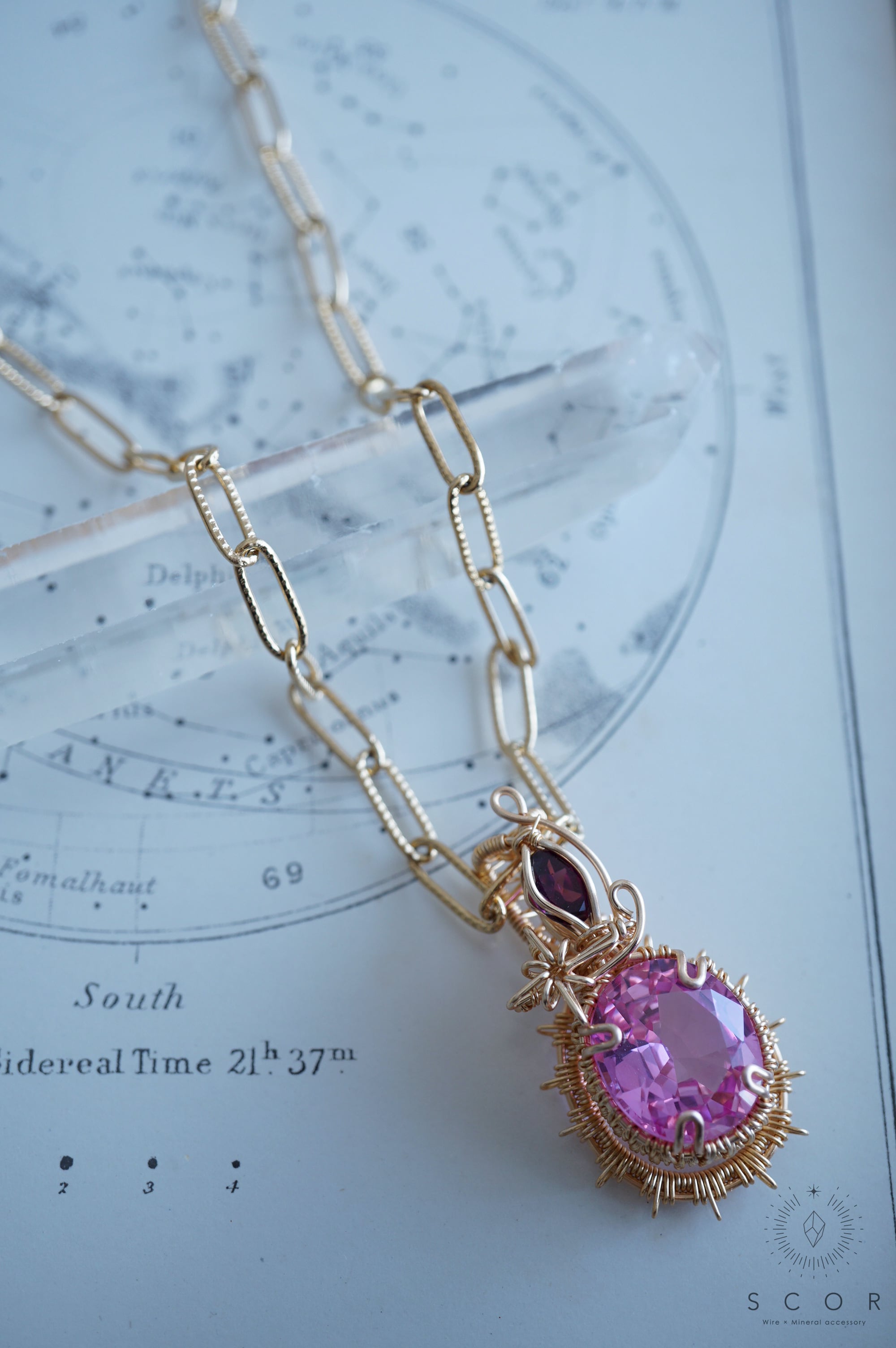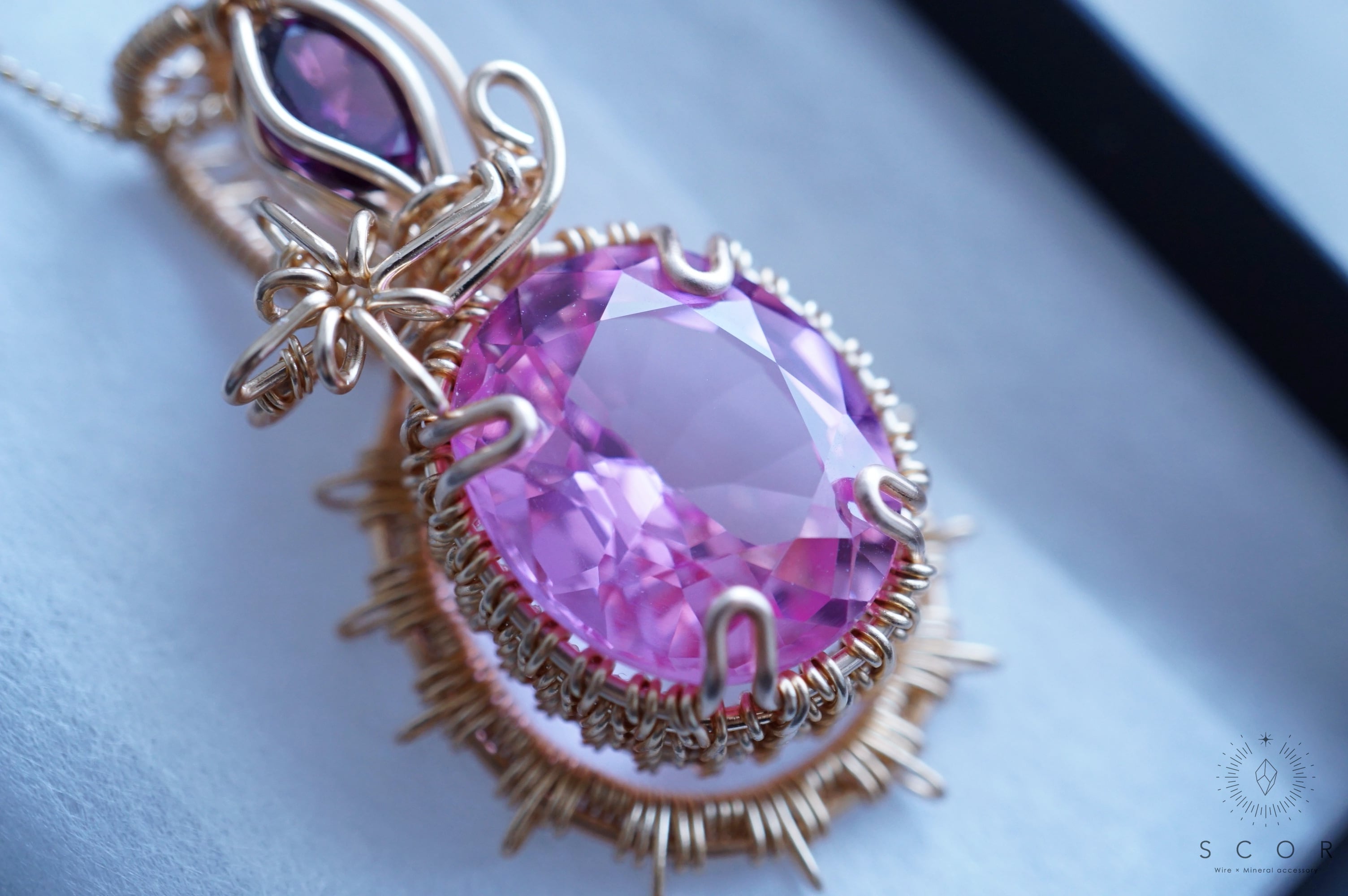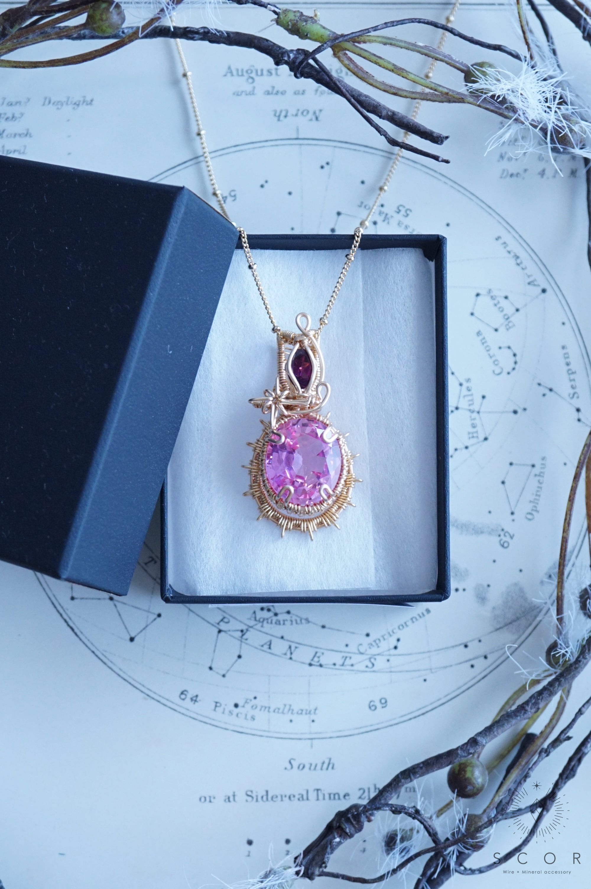 合成コランダム(合成ピンクサファイア)とロードライトガーネットを使ったペンダントトップです。