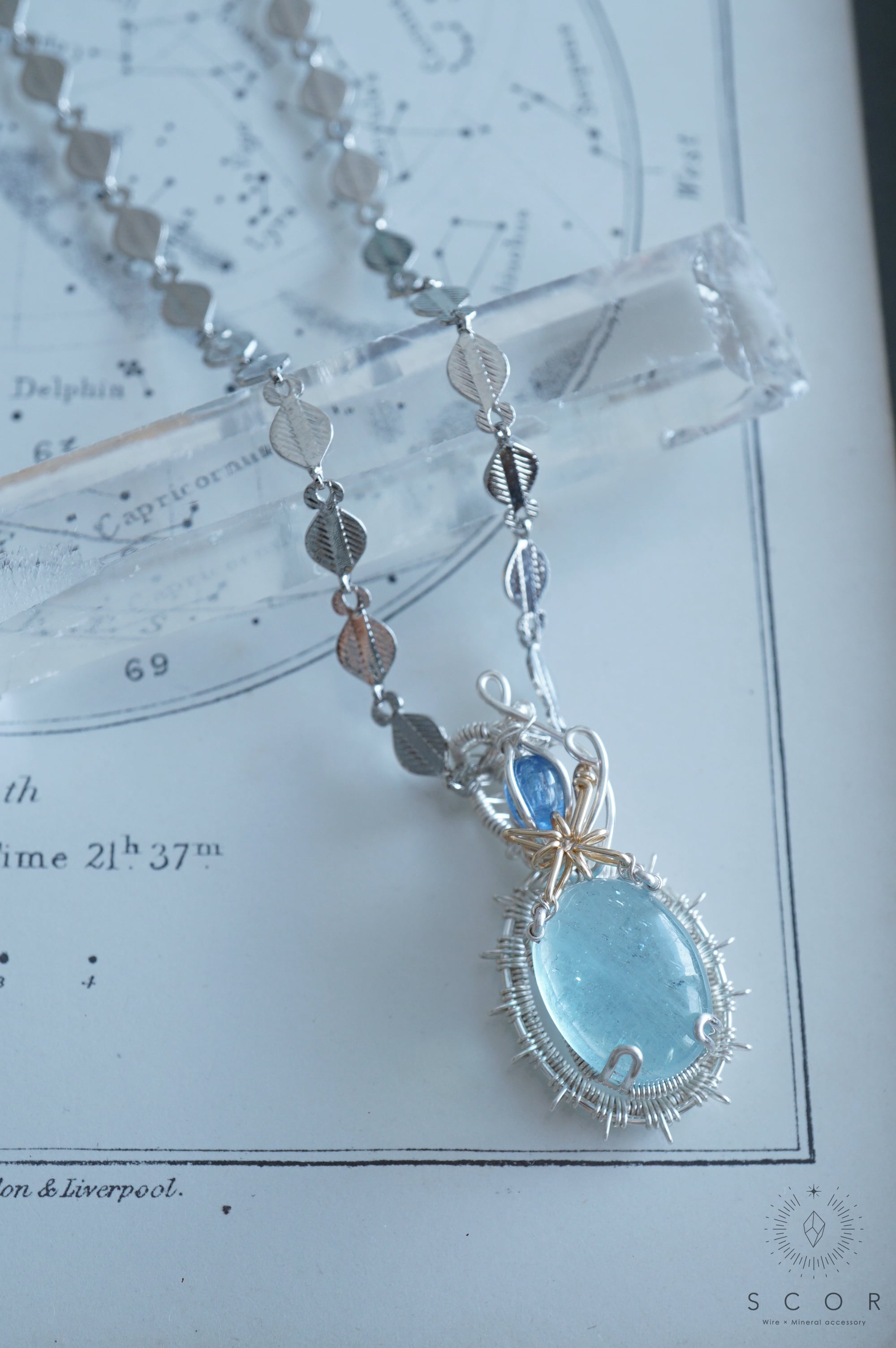 【動画あり】halo - 青を写す星 (pt489-ak-sg)(アクアマリン・カイヤナイト ペンダントトップ)