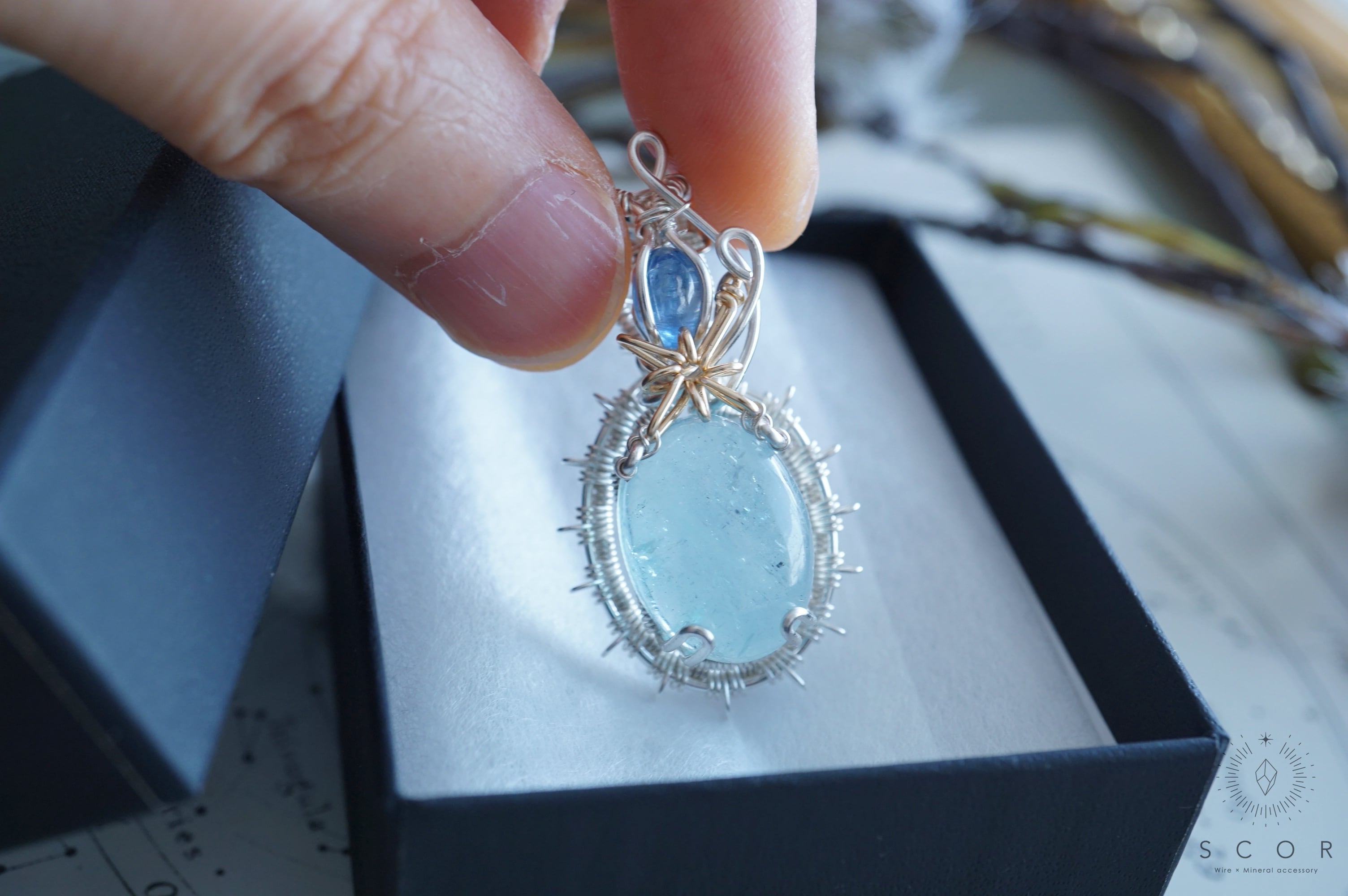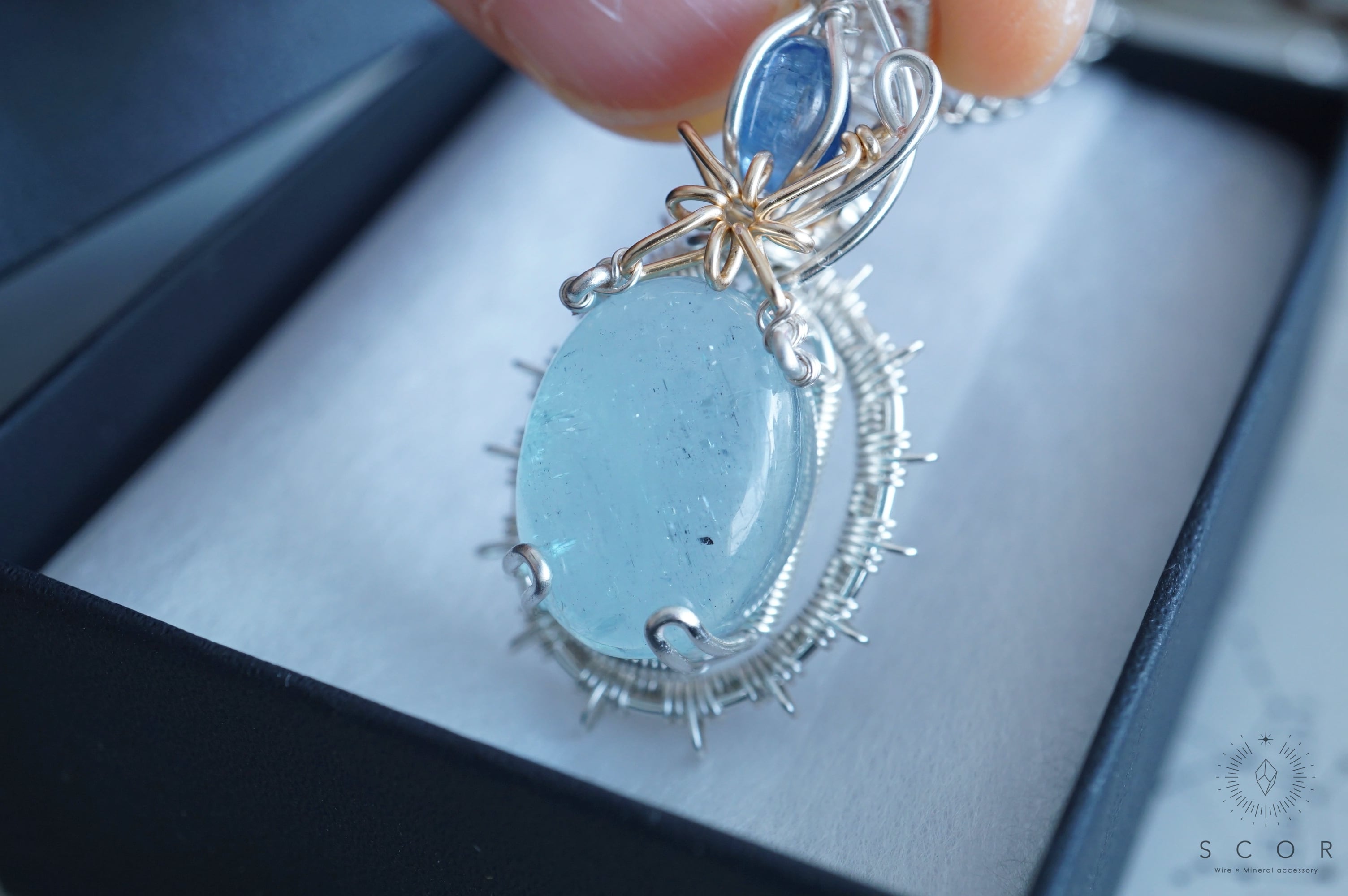 アクアマリンとカイヤナイトを使ったペンダントトップです。