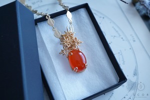 カーネリアンは、グミの実のような楕円形のカボションを使用。