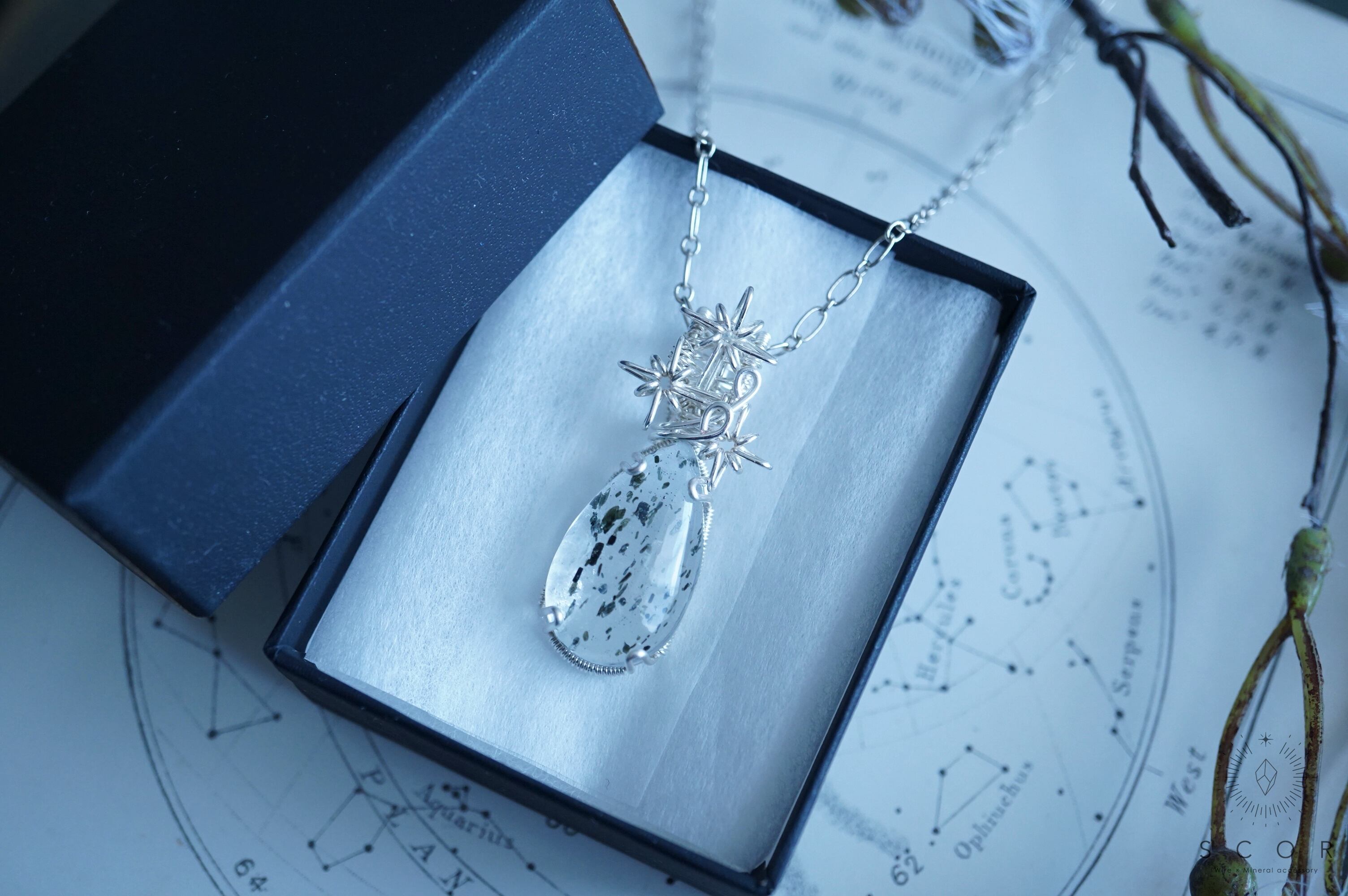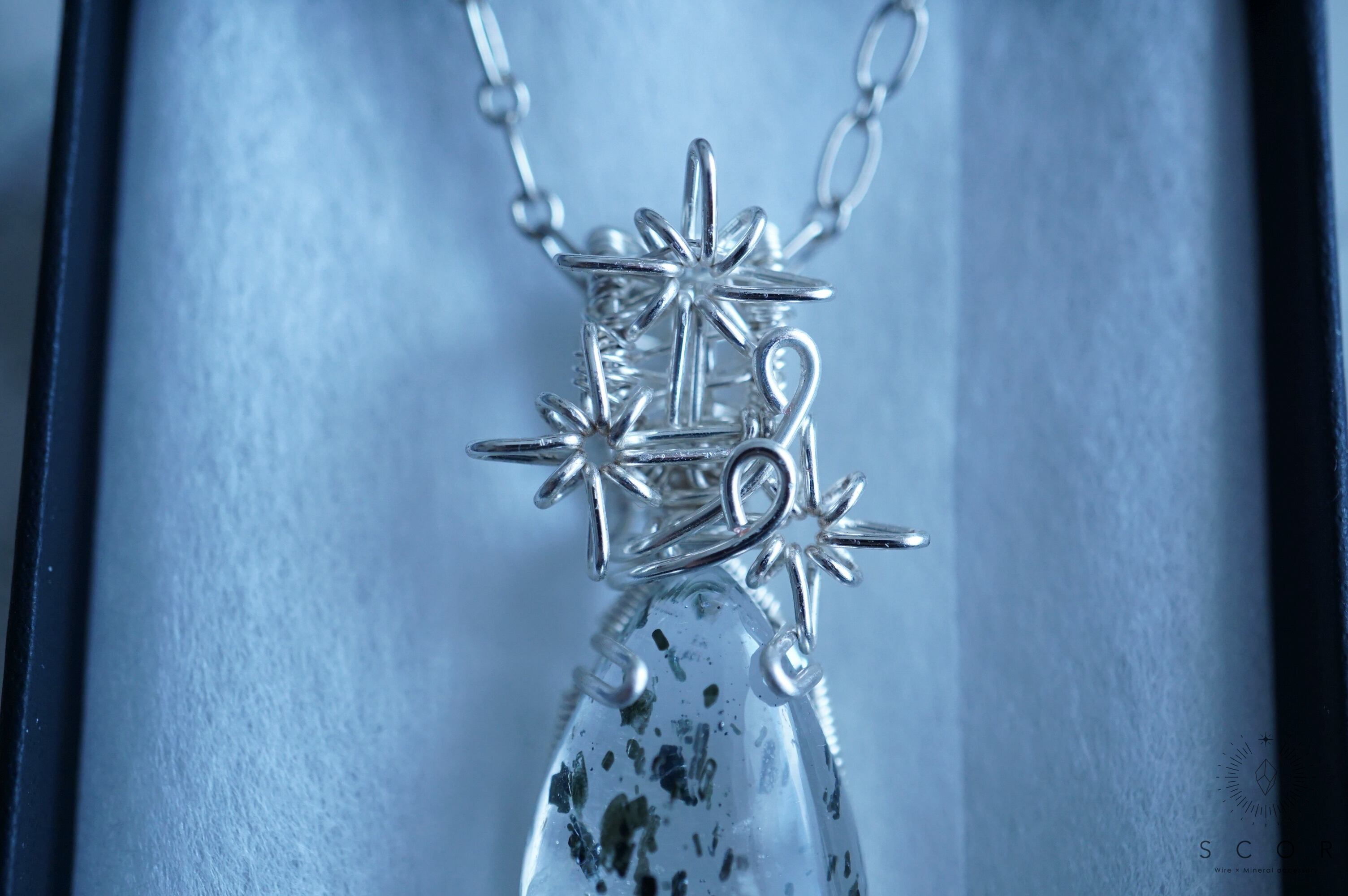 【動画あり】Ray of light - 氷と黒炭の星 (pt512-m-s)(マイカinクオーツ ペンダントトップ)