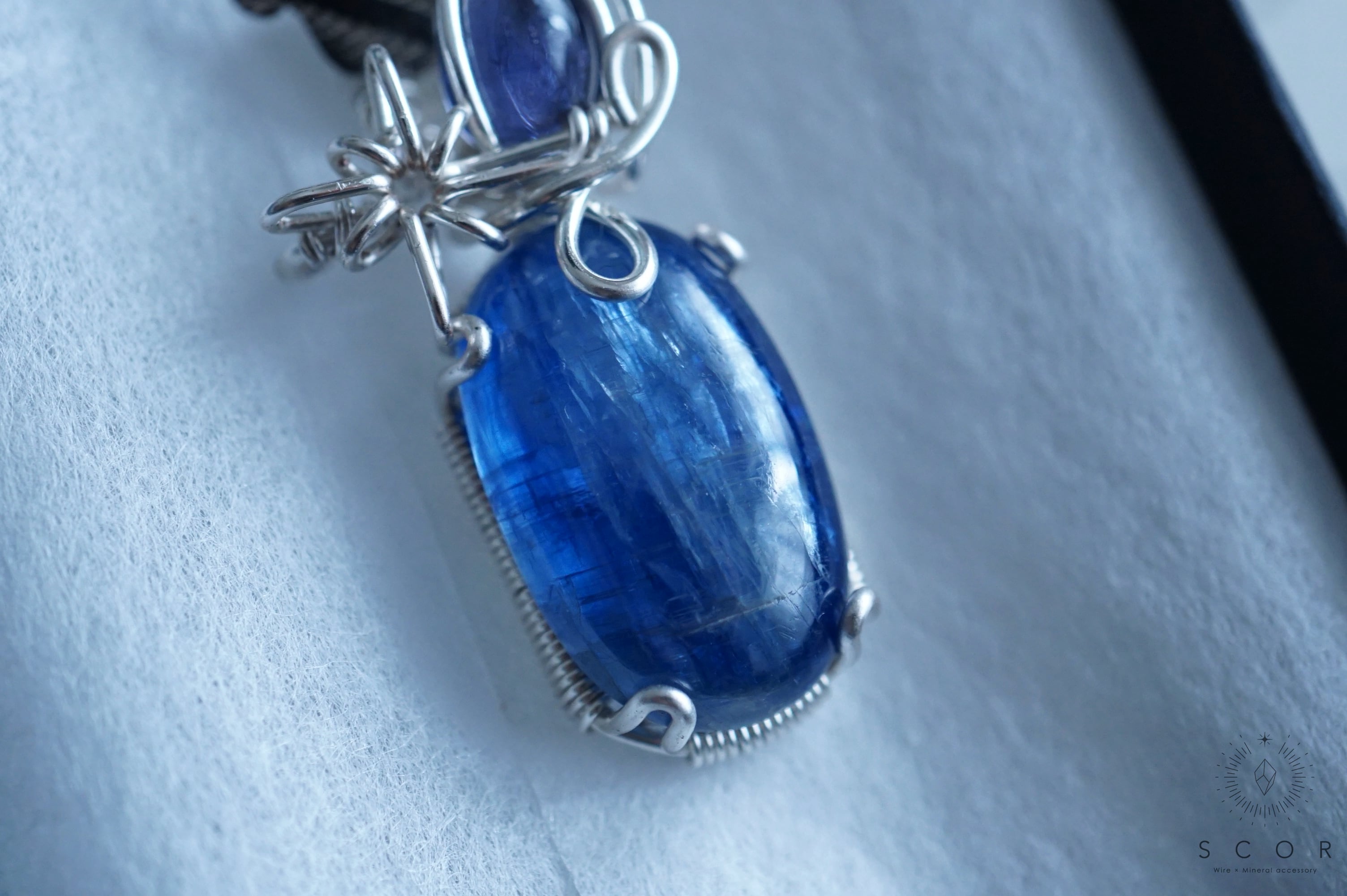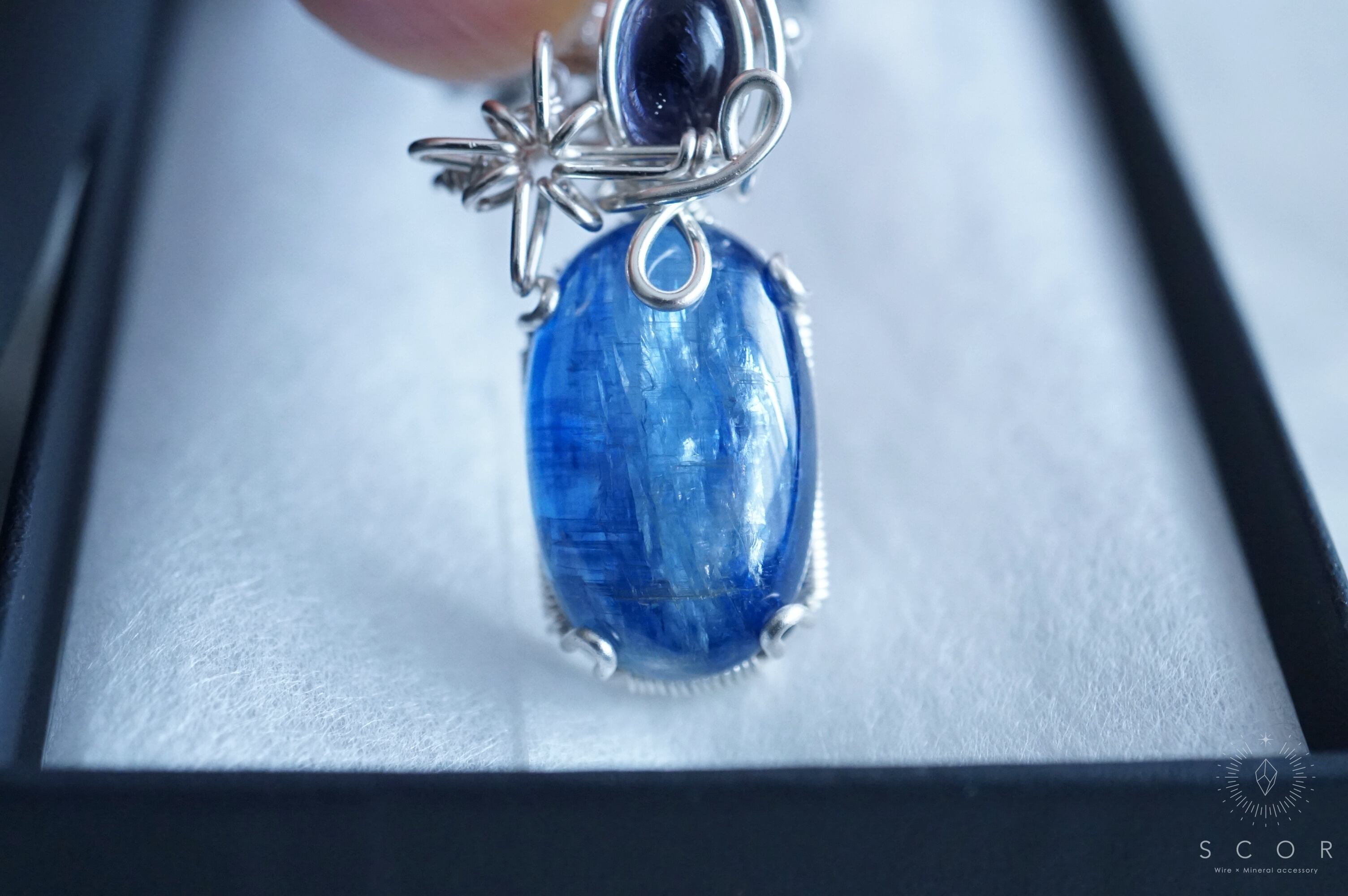 光に透かすと、カイヤナイトの群青色とはまた違った青の色彩が楽しめるピースです。
